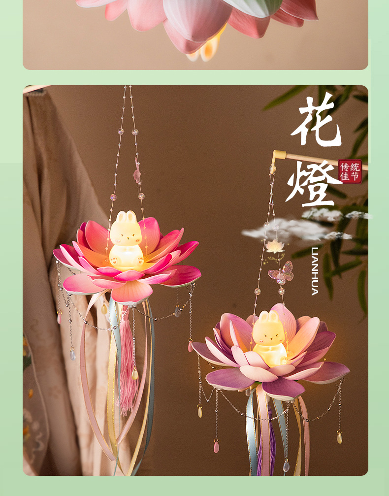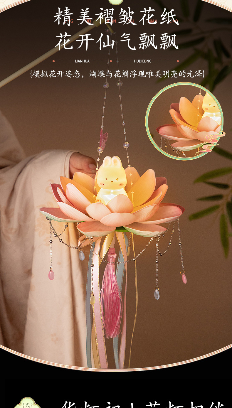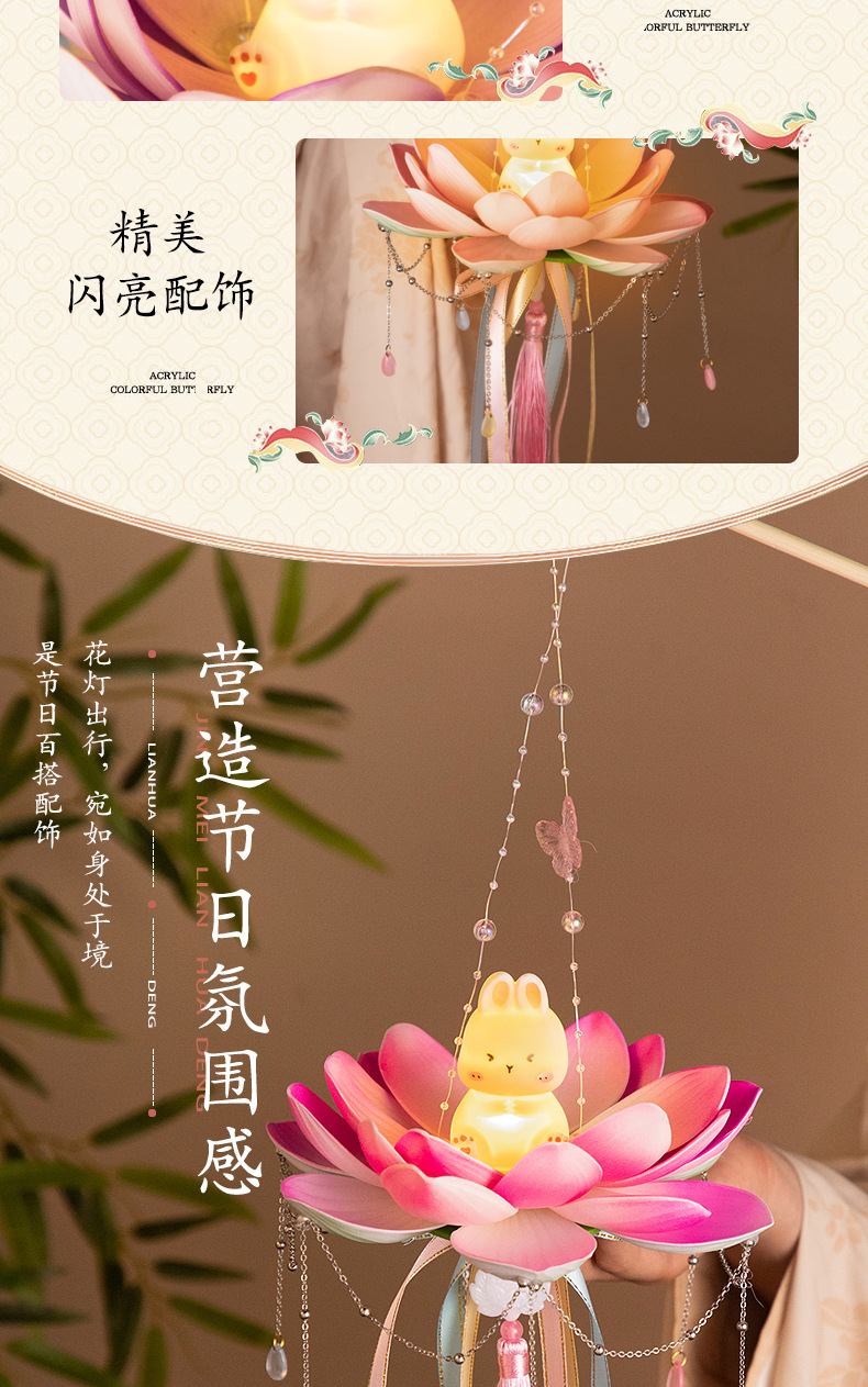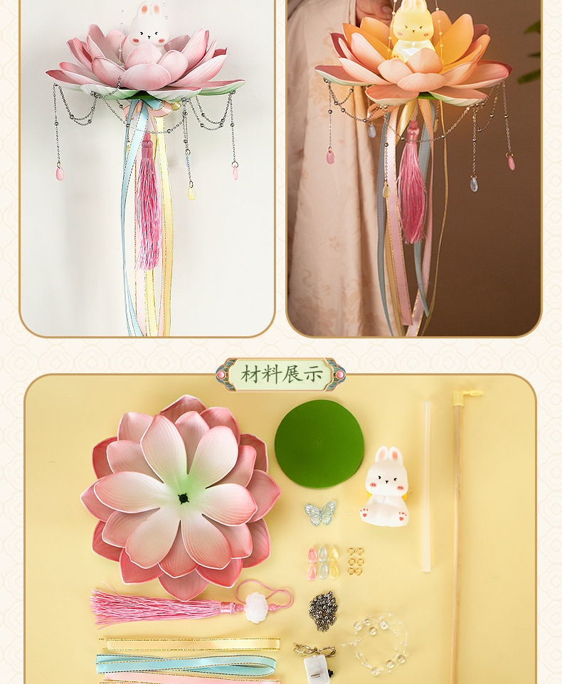中秋节荷花灯材料包diy手提发光古风兔子莲花灯笼儿童手工花灯