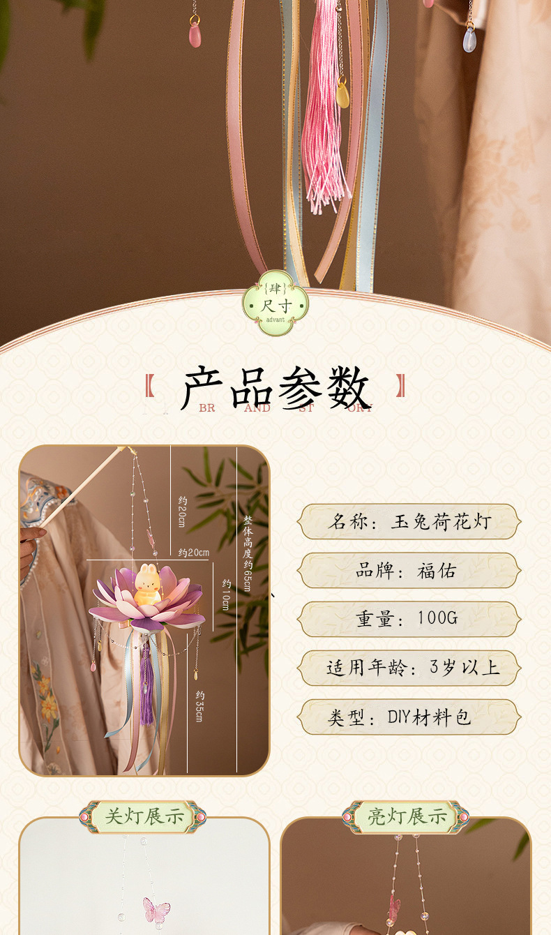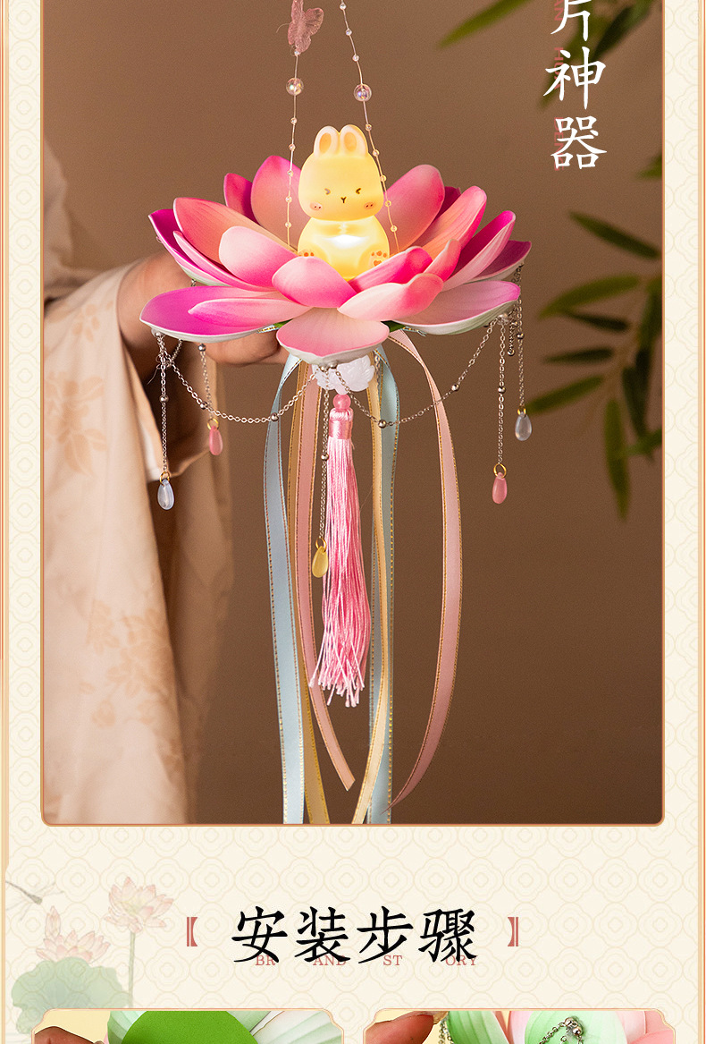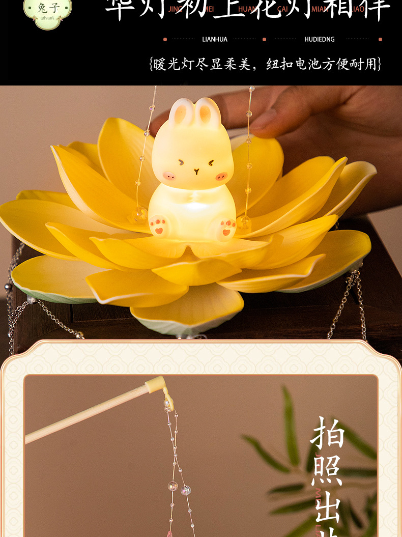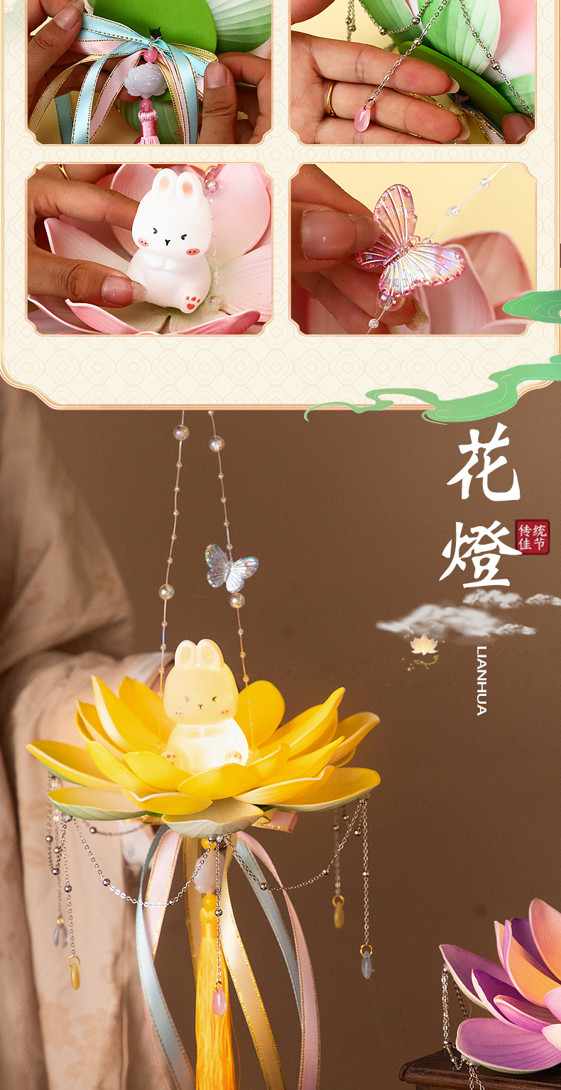 中秋节荷花灯材料包diy手提发光古风兔子莲花灯笼儿童手工花灯