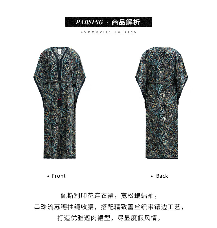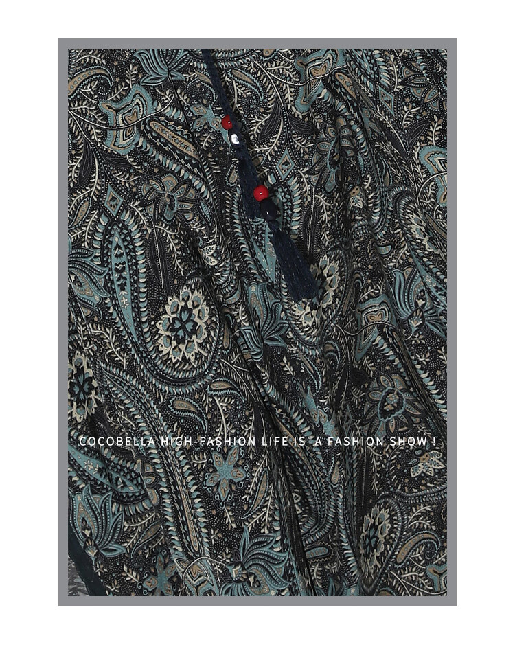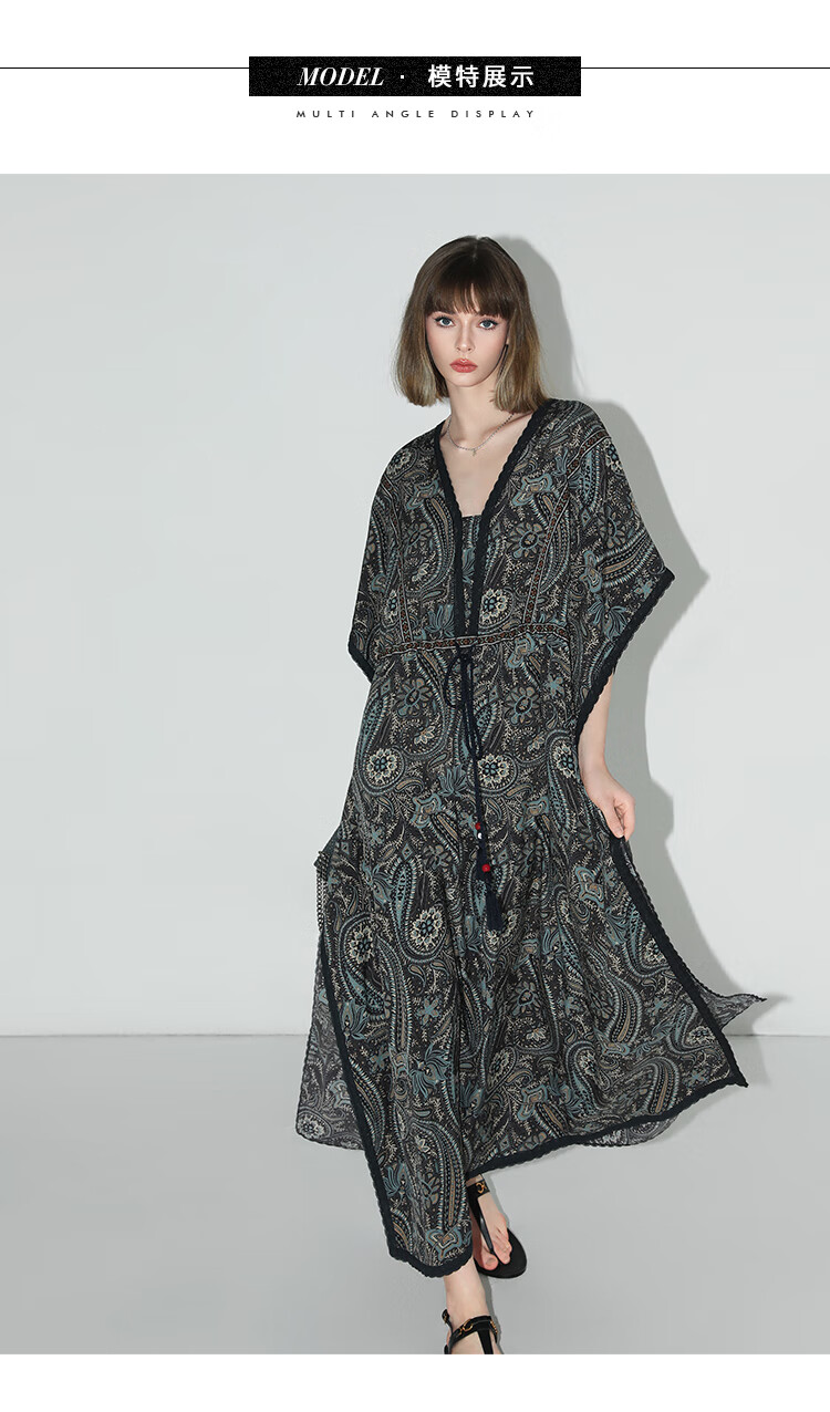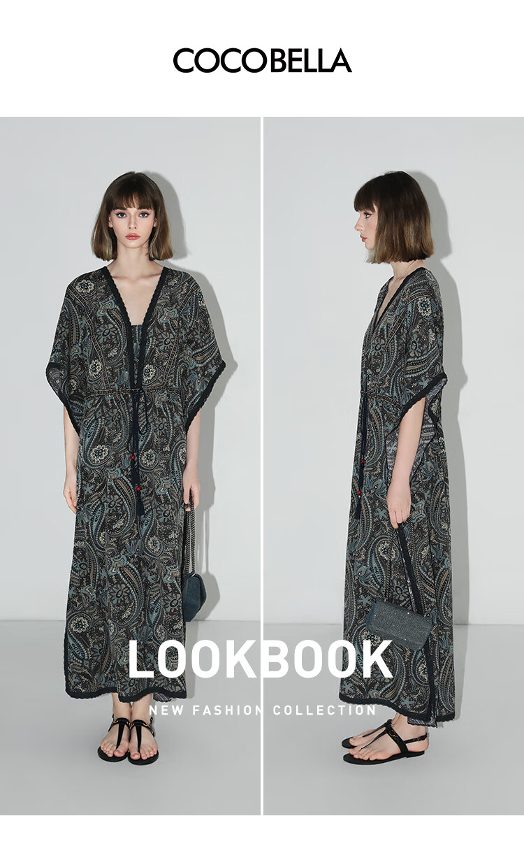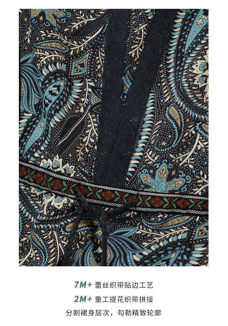 COCOBELLA波普印花7米+蕾丝镶边连衣裙度假大码长裙FR7040