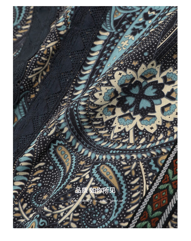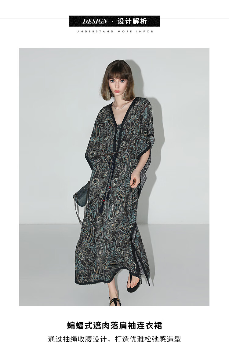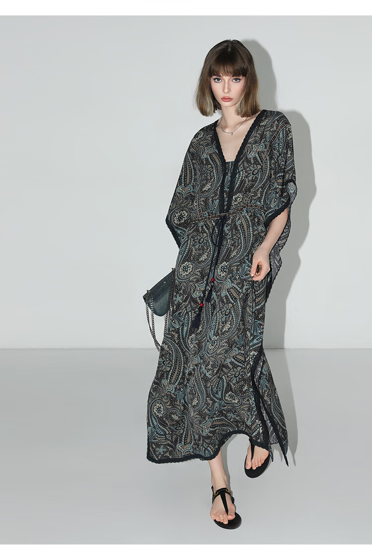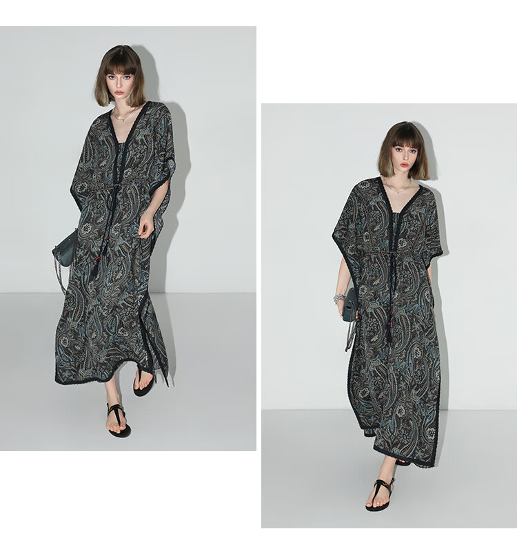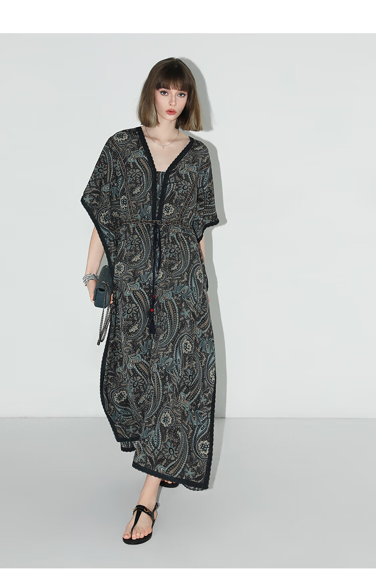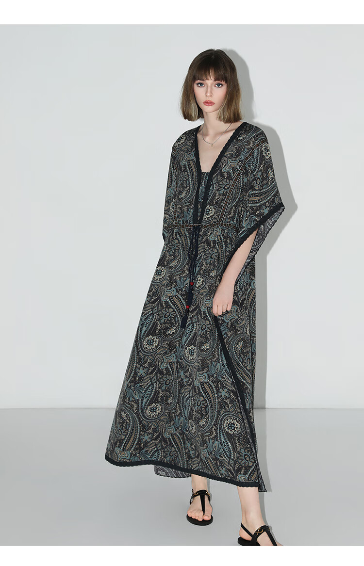 COCOBELLA波普印花7米+蕾丝镶边连衣裙度假大码长裙FR7040