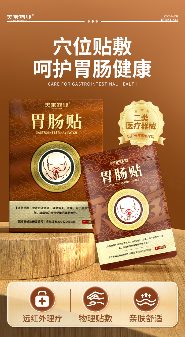 【金币兑换】天宝药业胃肠贴用于肠胀气腹胀腹痛和习惯性便秘辅助治疗官方正品