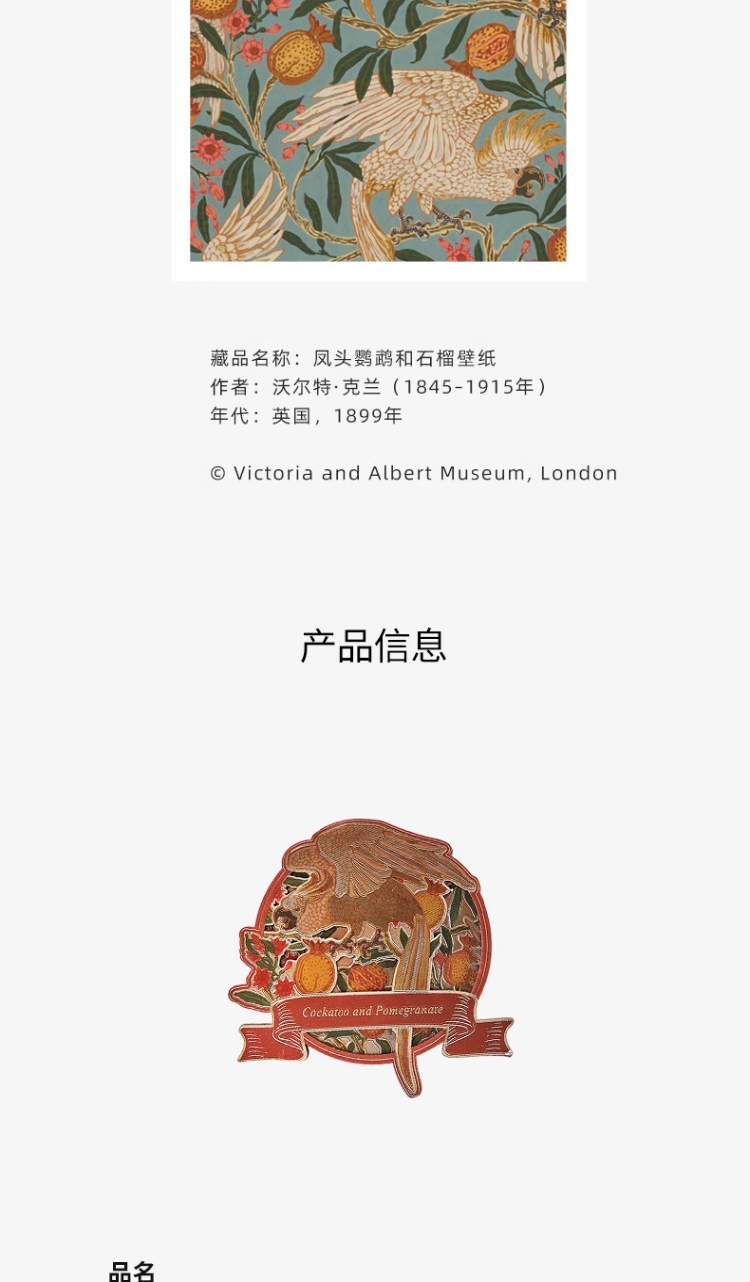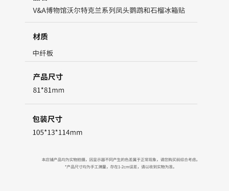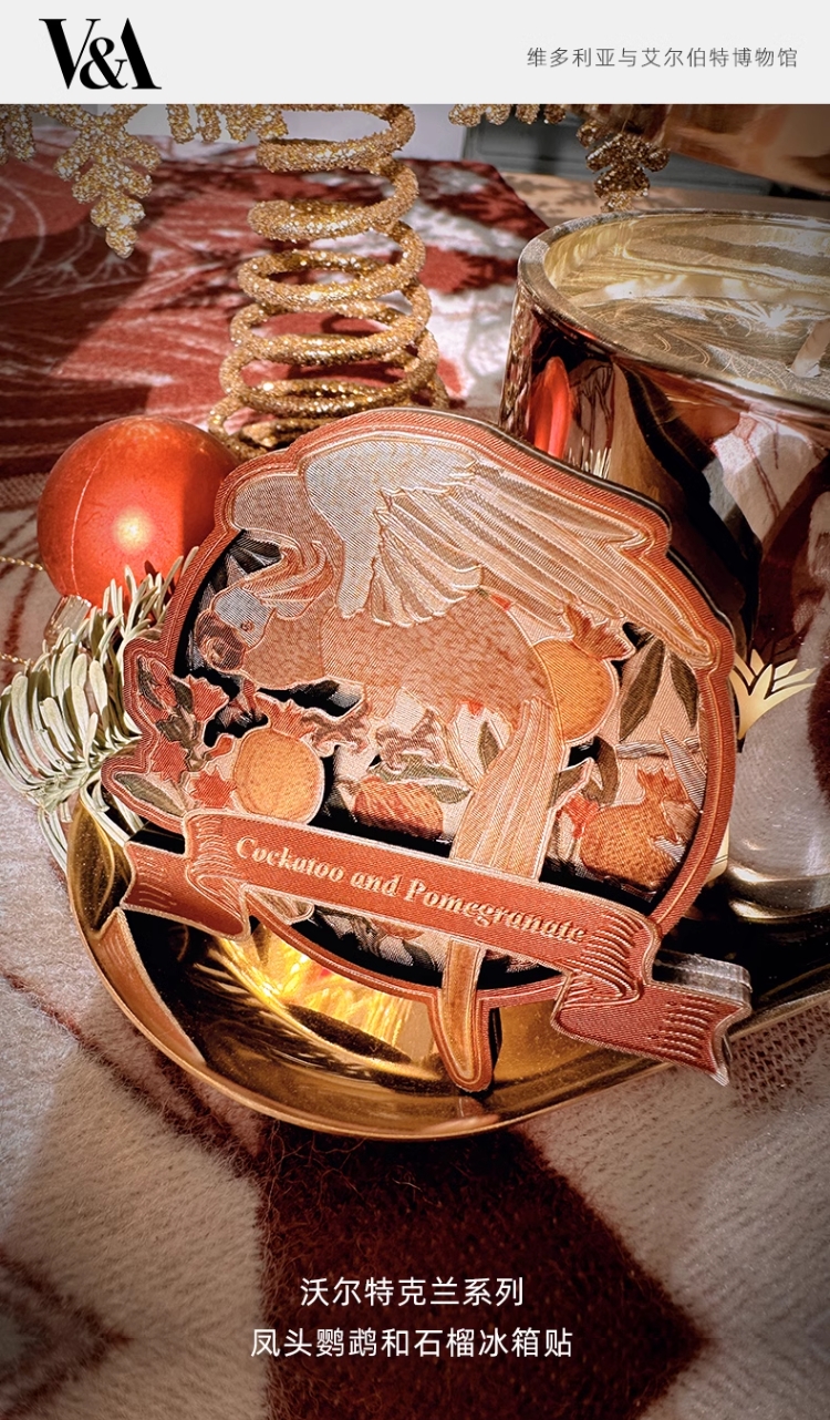 V&A博物馆沃尔特克兰系列 凤头鹦鹉和石榴木质磁吸式冰箱贴