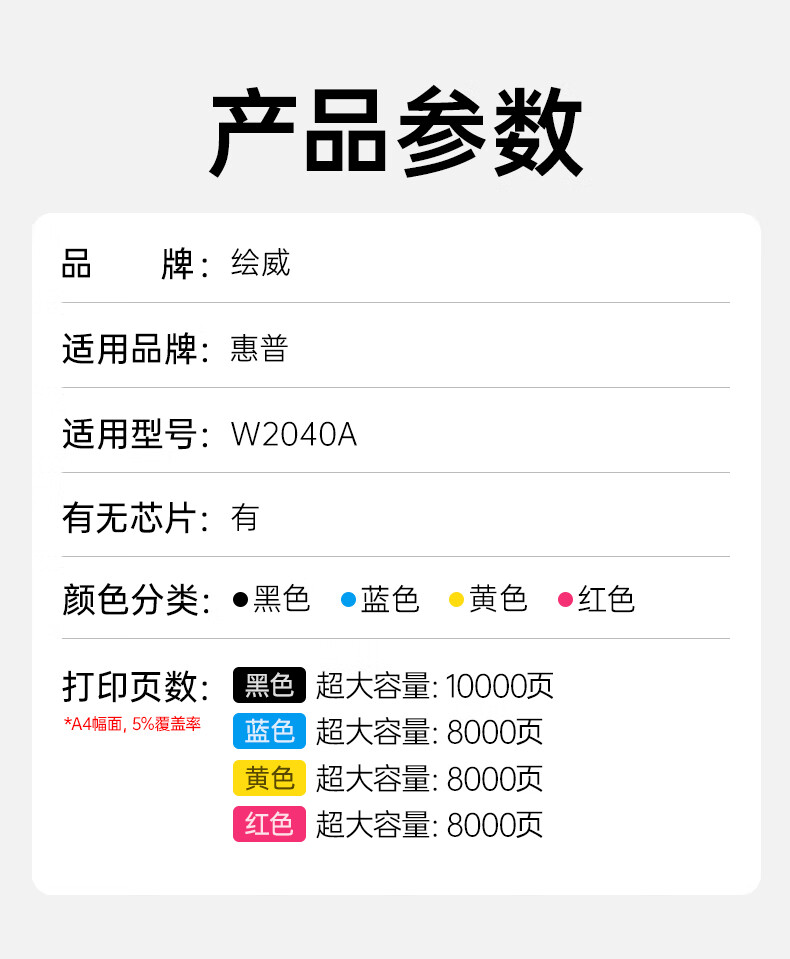 绘威416a硒鼓 四色超大容量34000页/四色 适用惠普m479dw硒鼓 m479fdw打印机墨盒 m454dw m480f m454nw m455dn粉盒 W2040a
