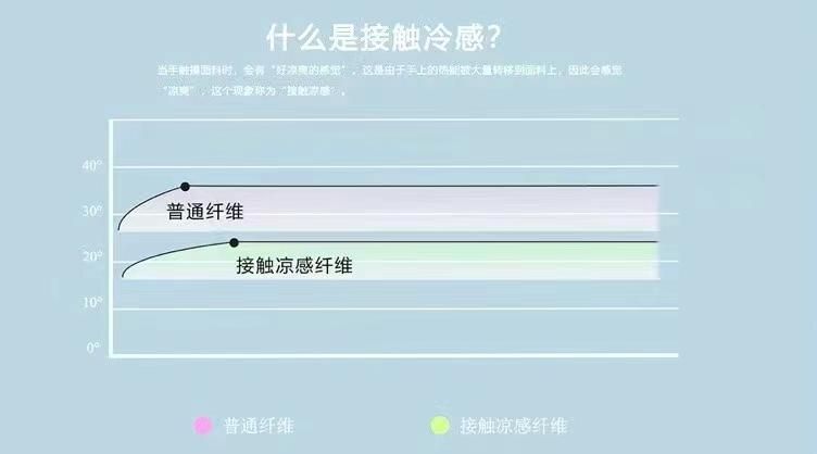 这是因为我们皮肤的热量瞬间、大量转移到了面料上,面料又通过“呼吸”把热量散发掉,因此会有凉爽的感觉,这就是“接触凉感”~