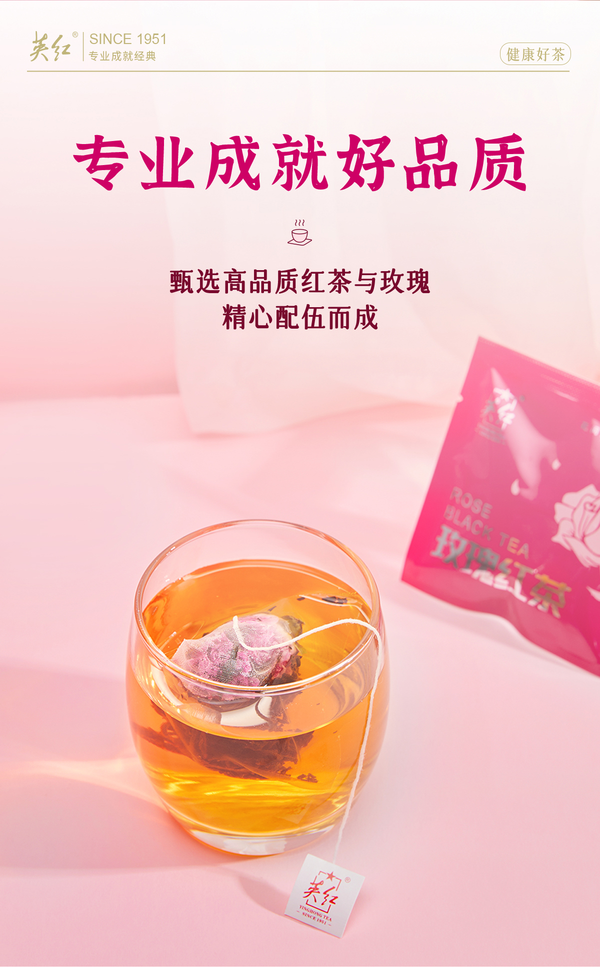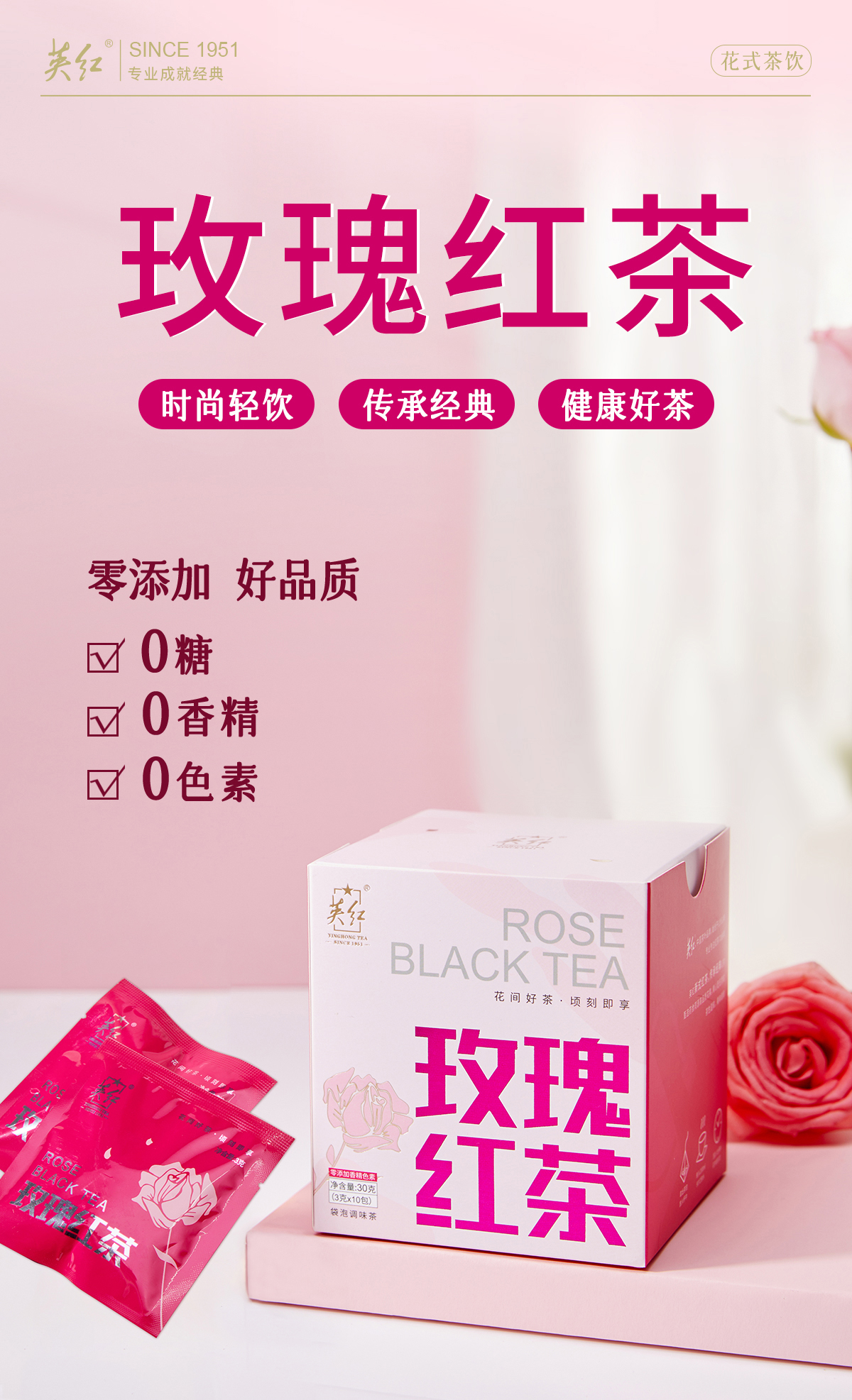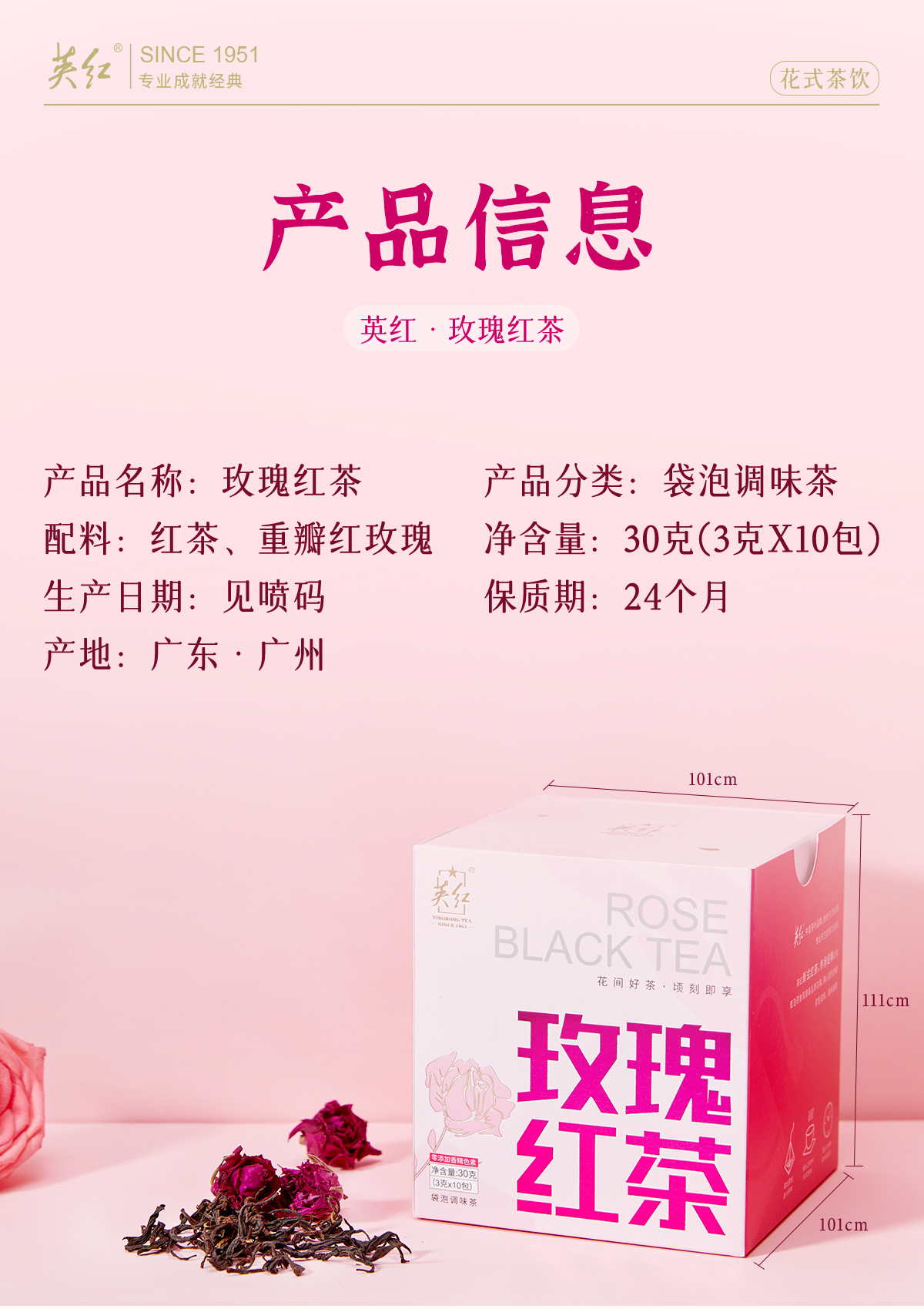 【做一个优雅女神】英红牌 英德红茶 玫瑰红茶 平阴玫瑰花茶大朵一级 袋泡茶 10小包/盒 30g/盒(京东同款)