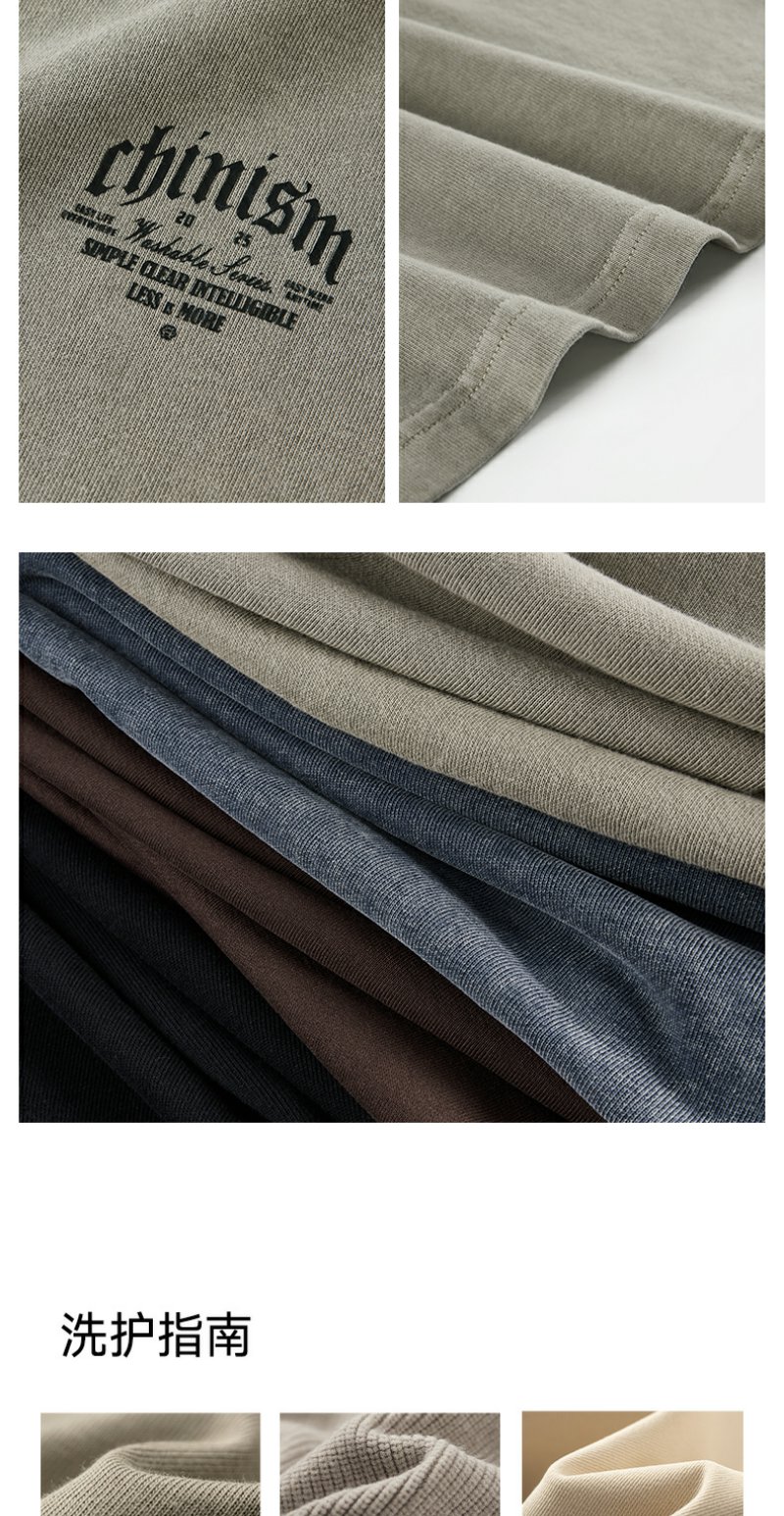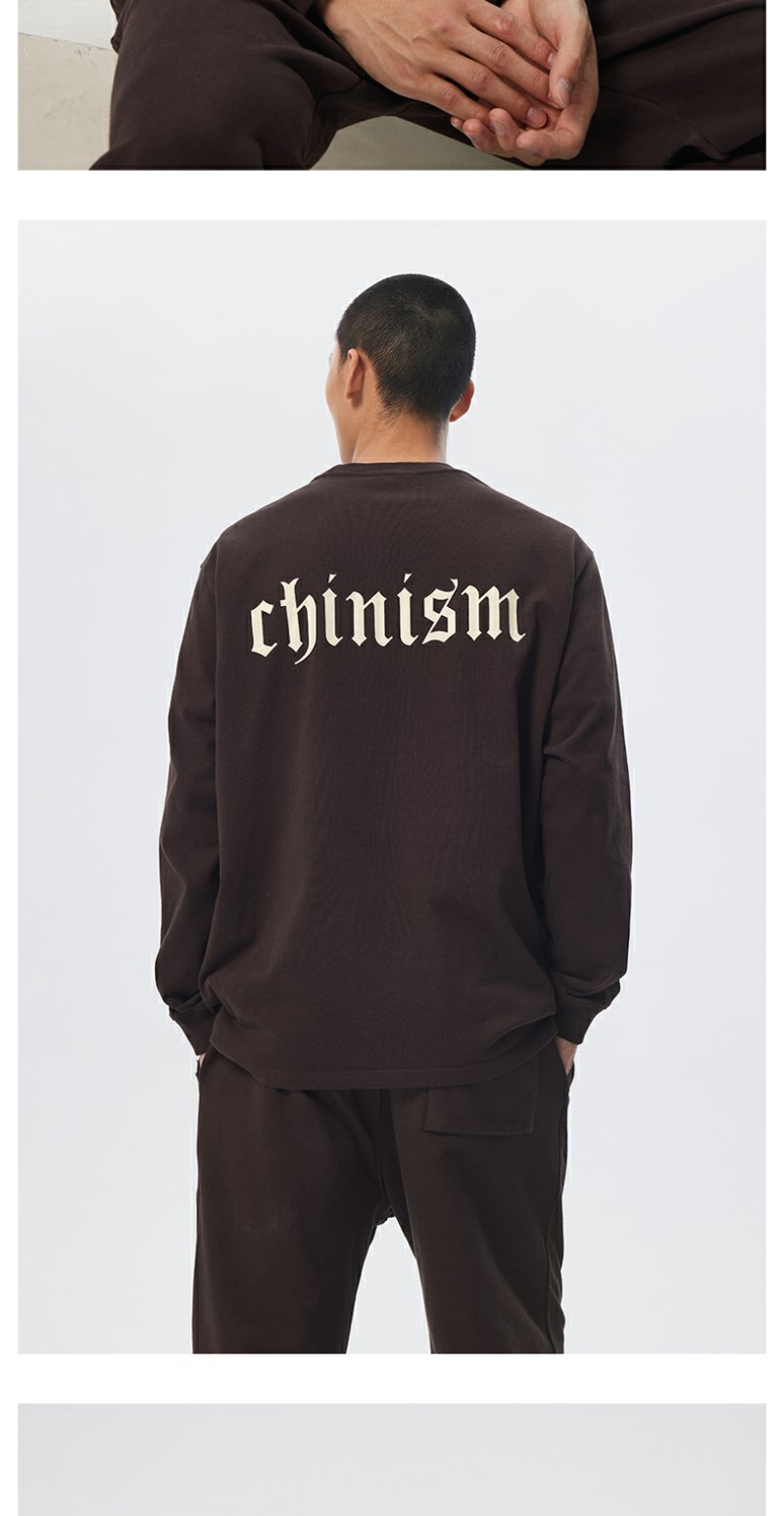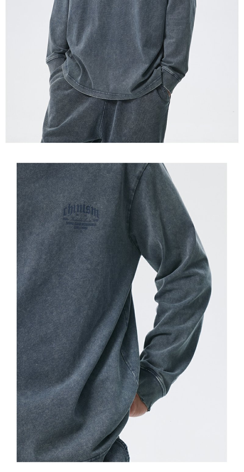 【水洗系列】CHINISM赤尘 做旧长袖T恤男美式品牌logo印花上衣