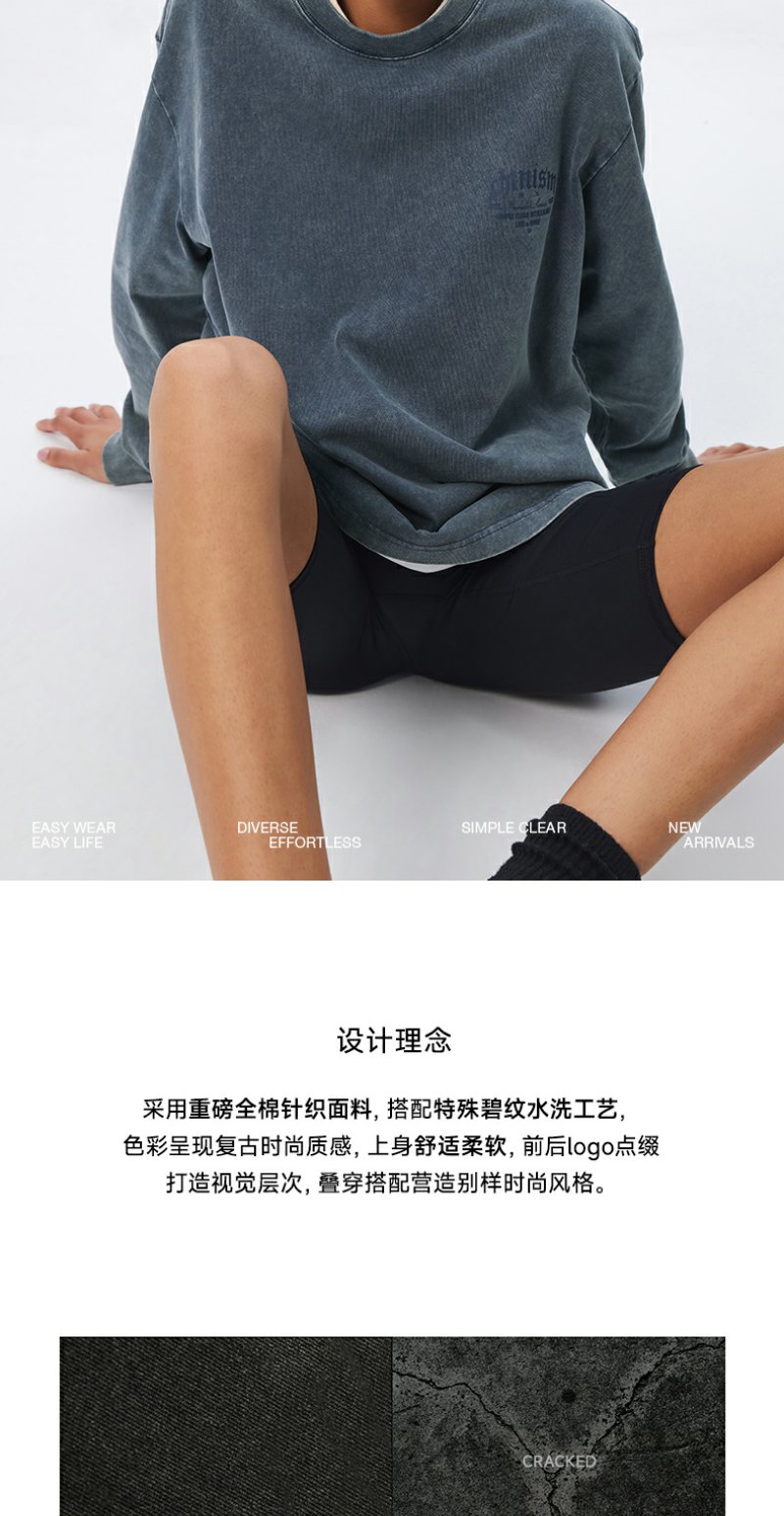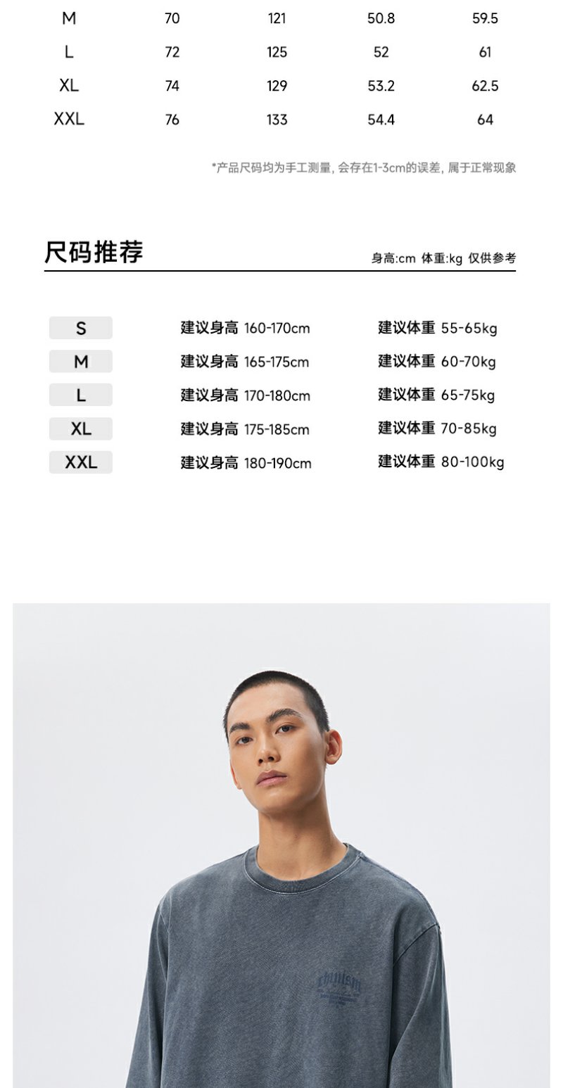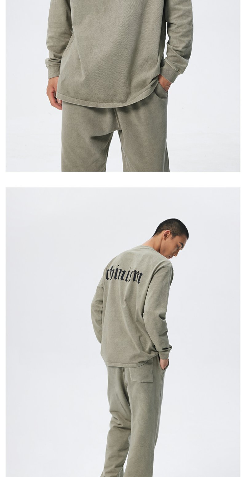 【水洗系列】CHINISM赤尘 做旧长袖T恤男美式品牌logo印花上衣