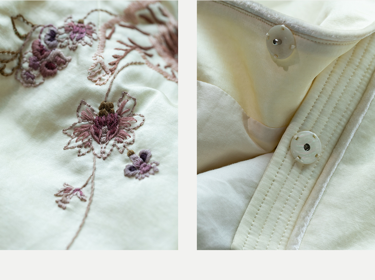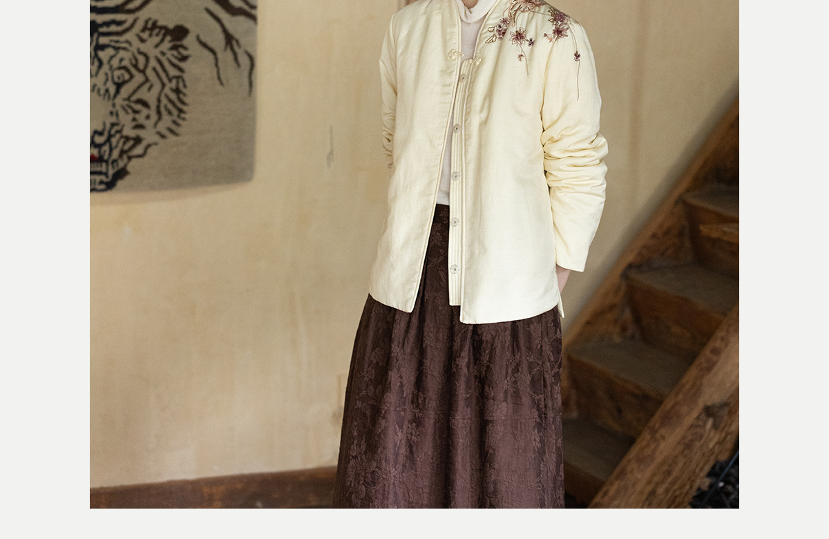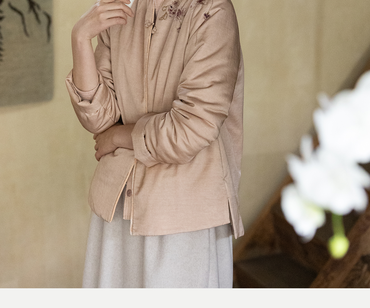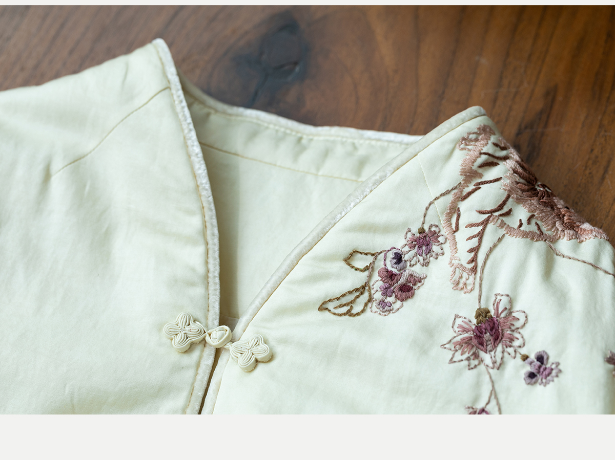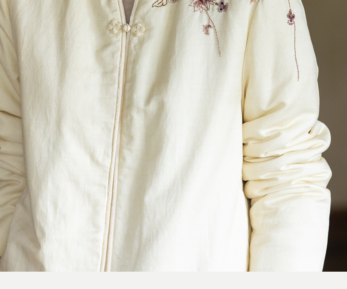 牧衣游原创 丝棉手工刺绣棉衣女新款蓬松保暖炒色V领百搭棉服 卷