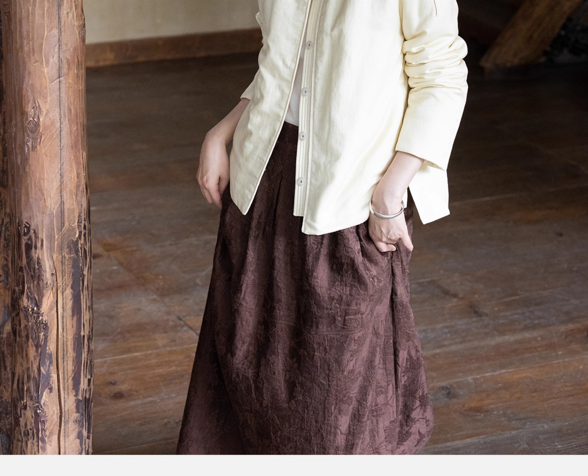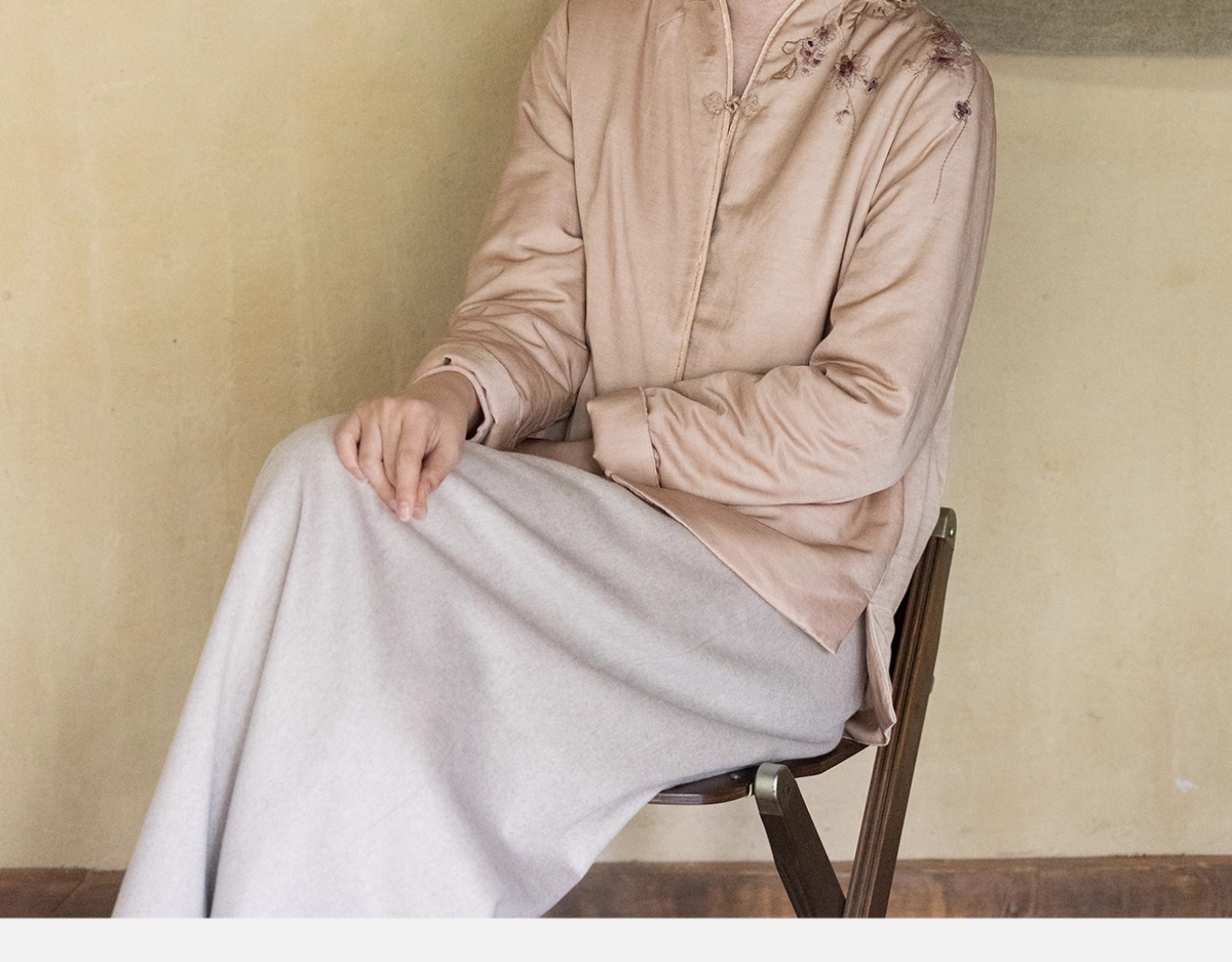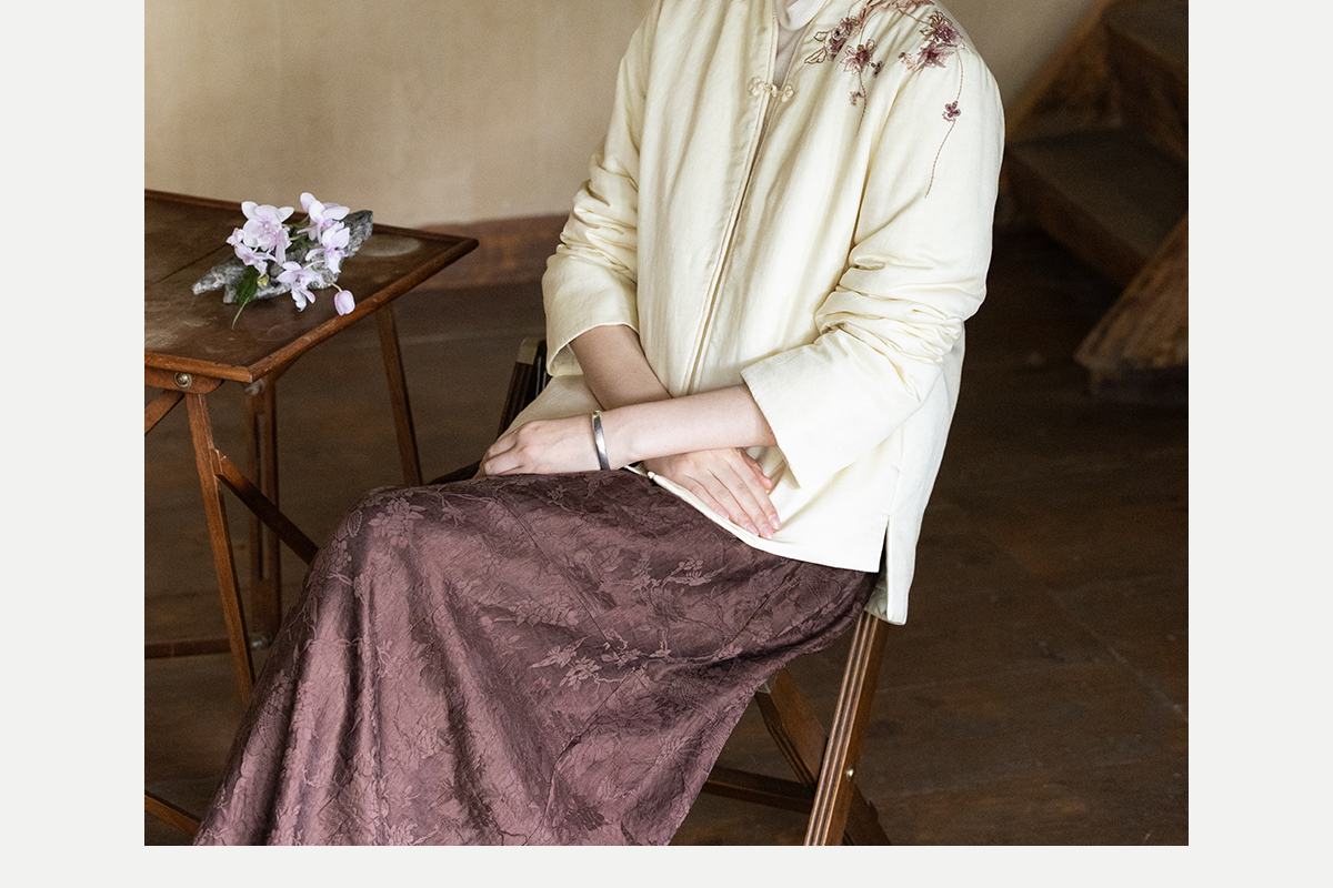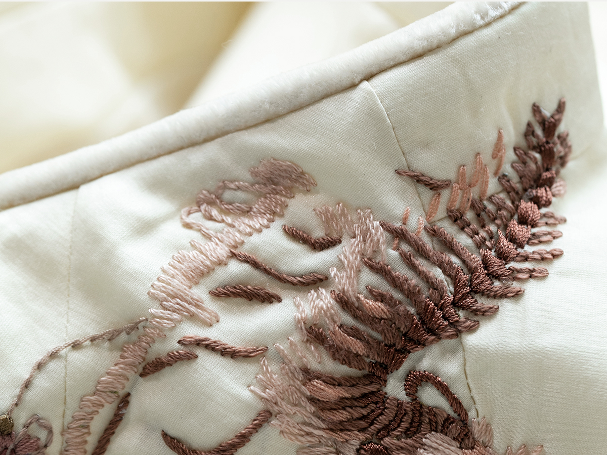 牧衣游原创 丝棉手工刺绣棉衣女新款蓬松保暖炒色V领百搭棉服 卷