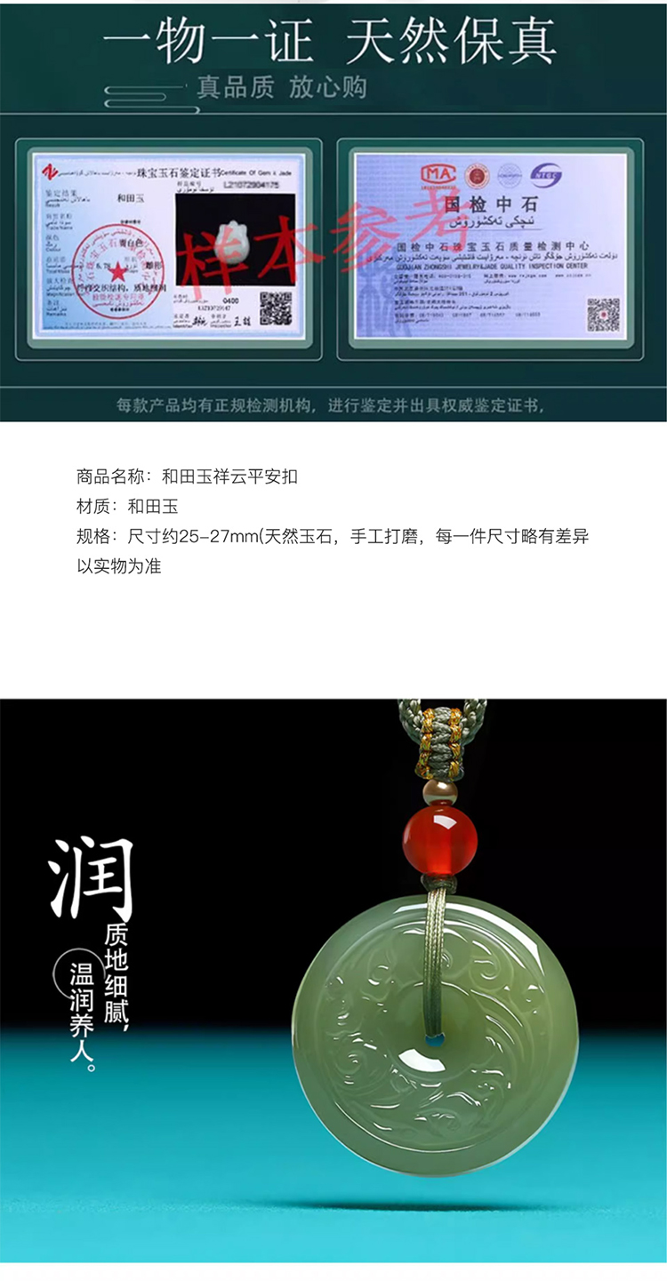 【经典】祥云平安扣和田玉吊坠