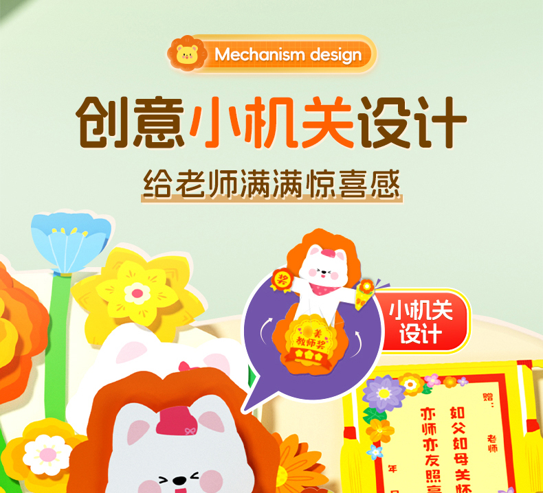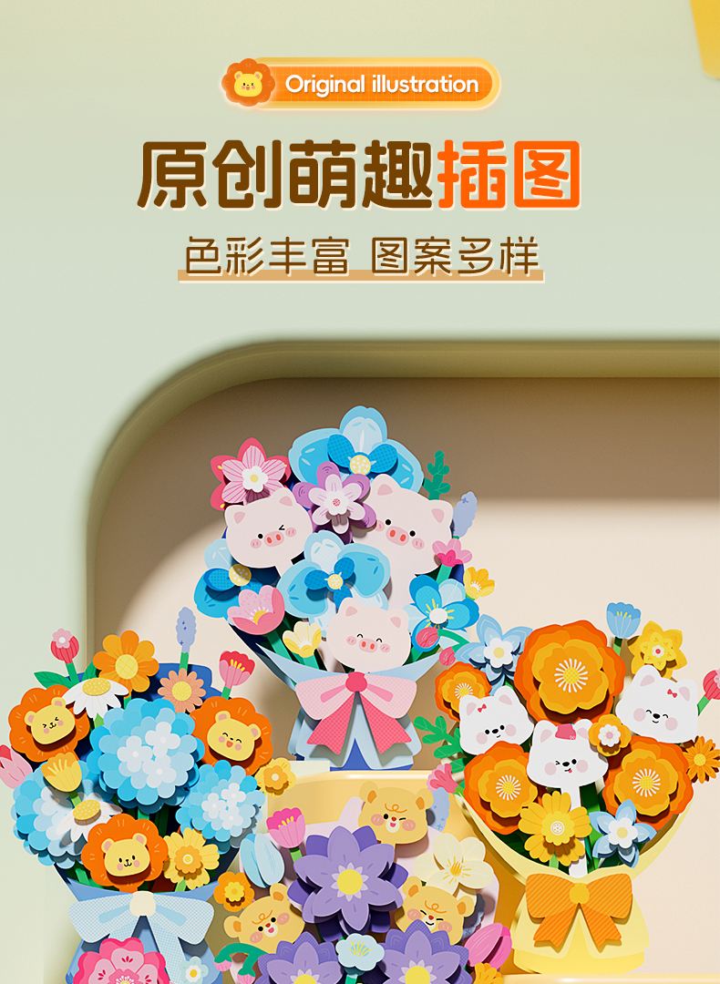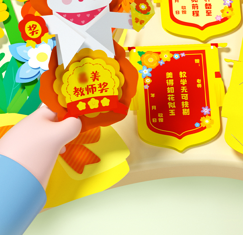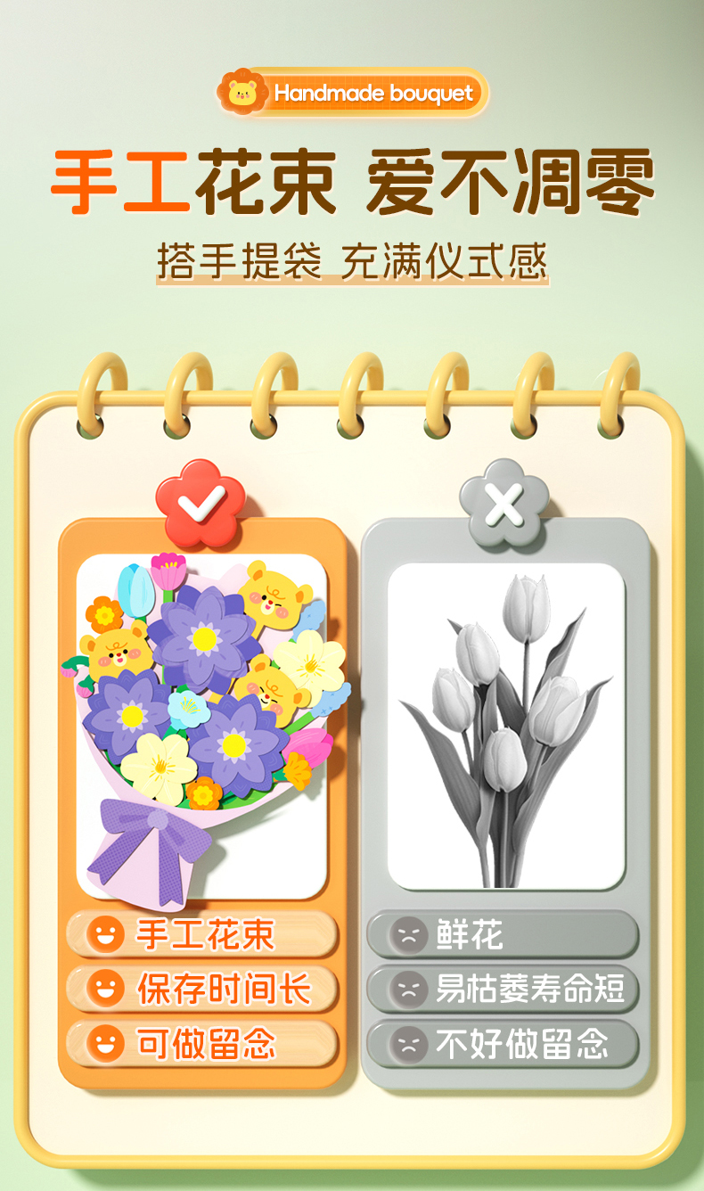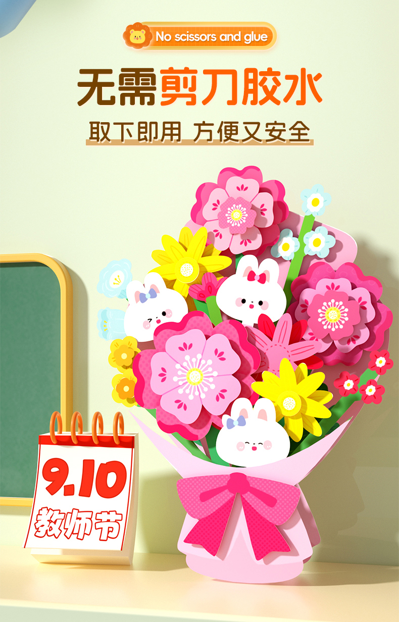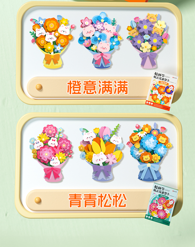 教师节花束儿童3D立体创意手工diy手工材料包 花朵贺卡高级感祝福生日 橙意满满花束教师节礼物