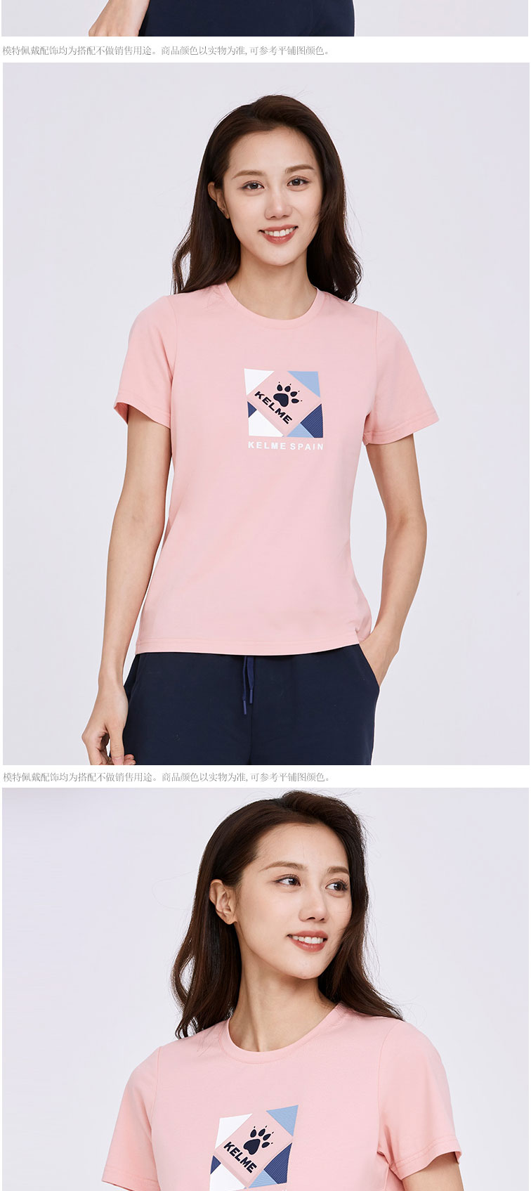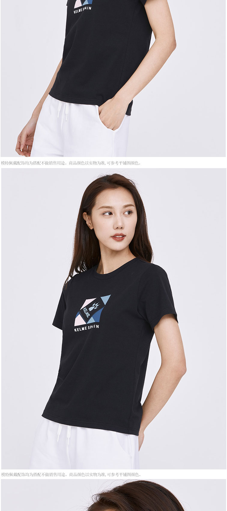 KELME卡尔美T恤女2022夏季新款棉圆领透气宽松百搭运动短袖上衣6227TX2009