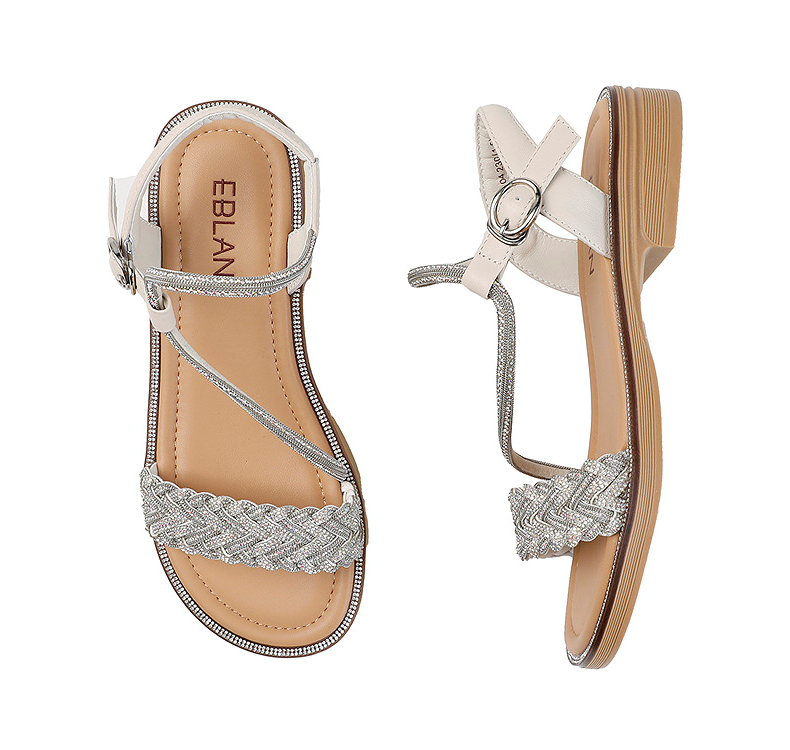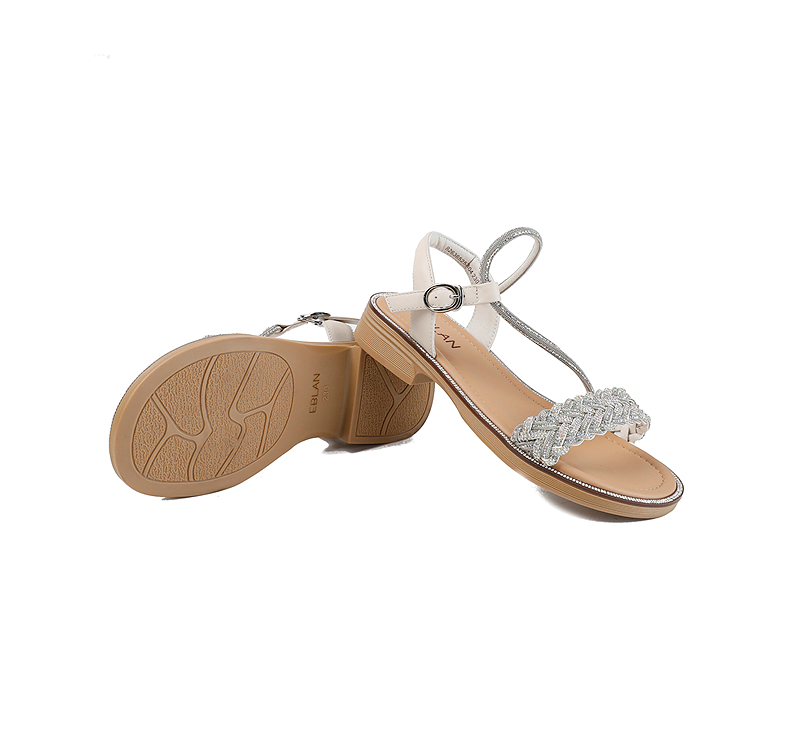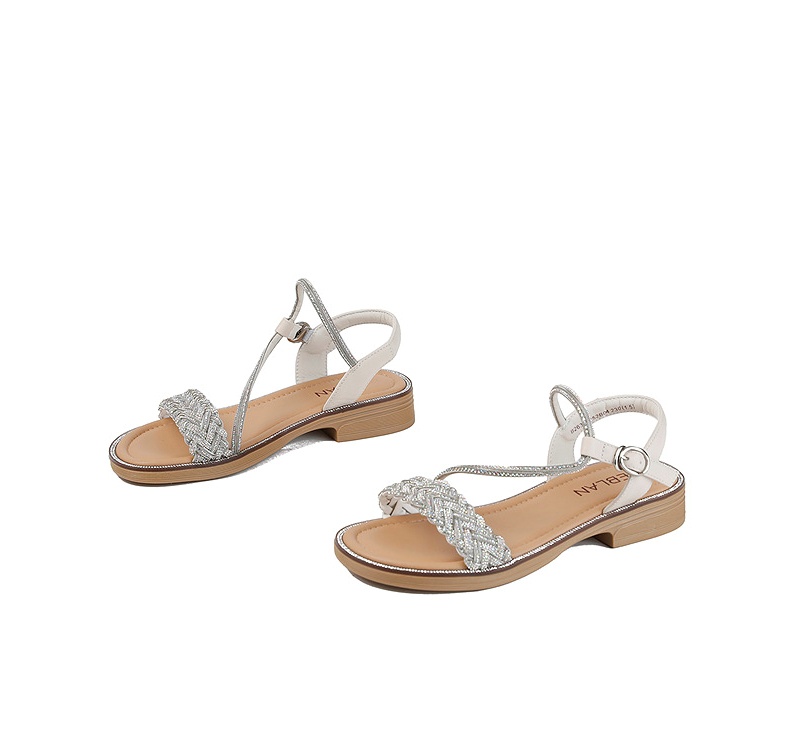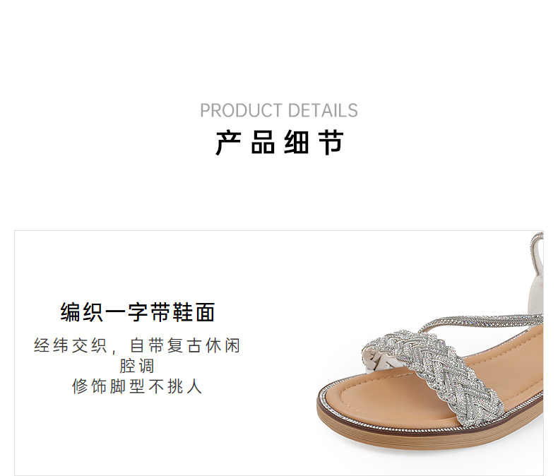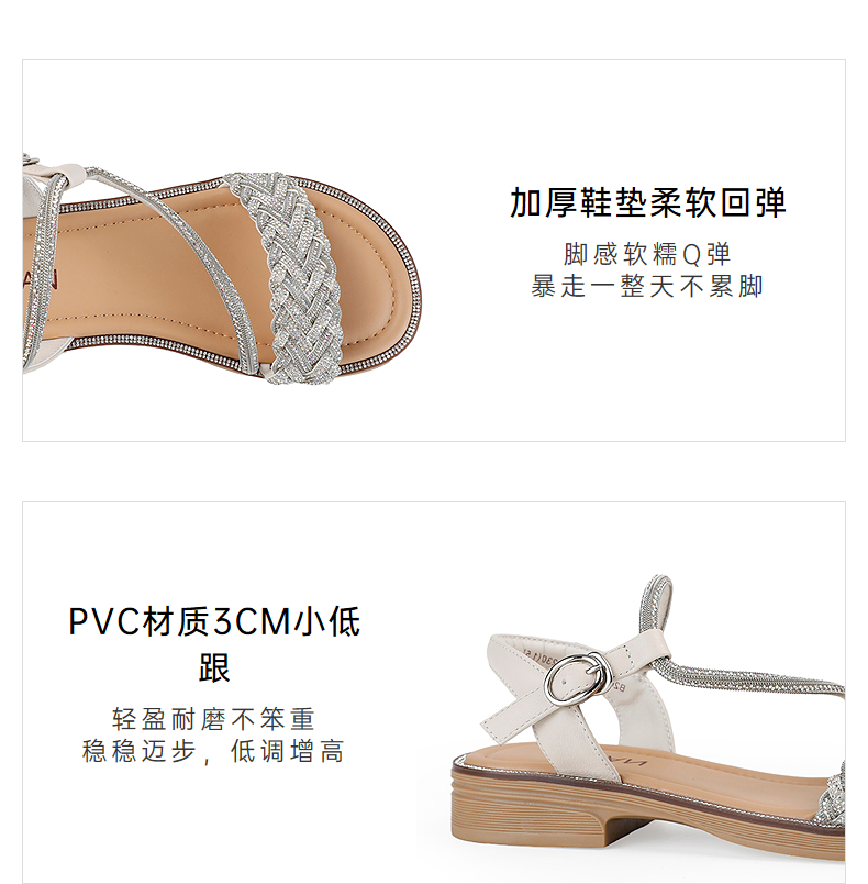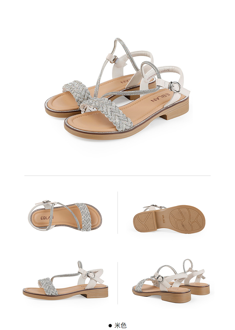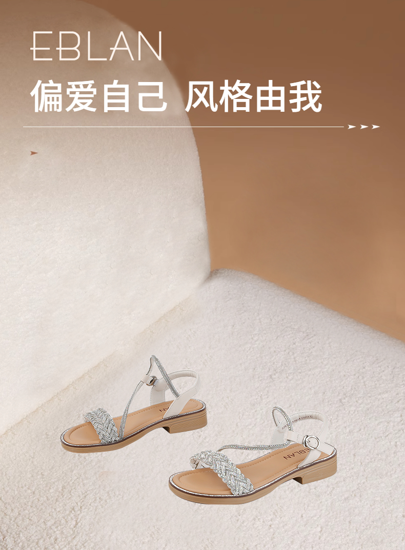 【上新】伊伴2026夏季编织一字带闪耀钻面休闲凉鞋B26365252