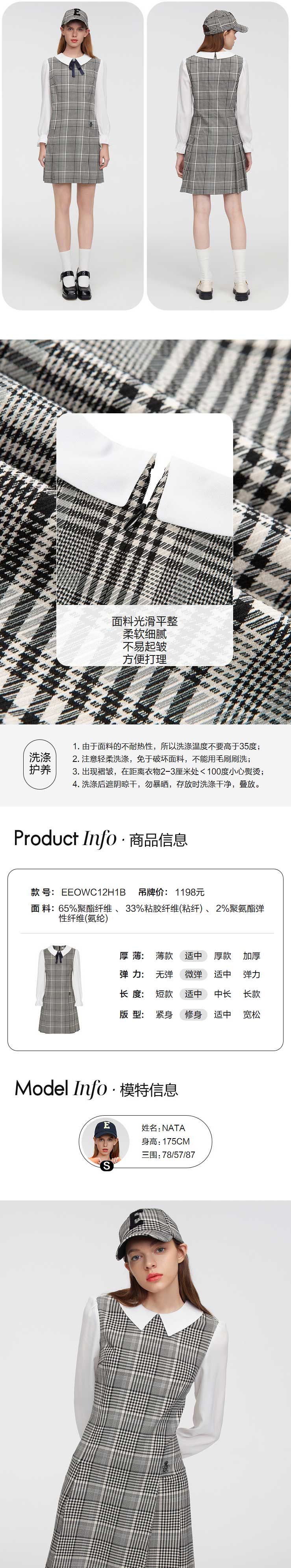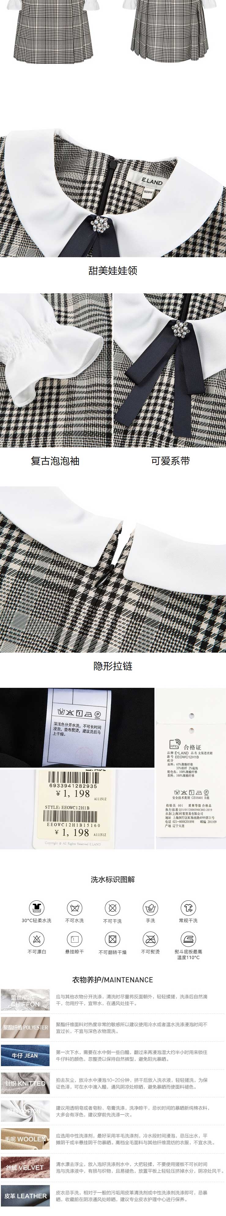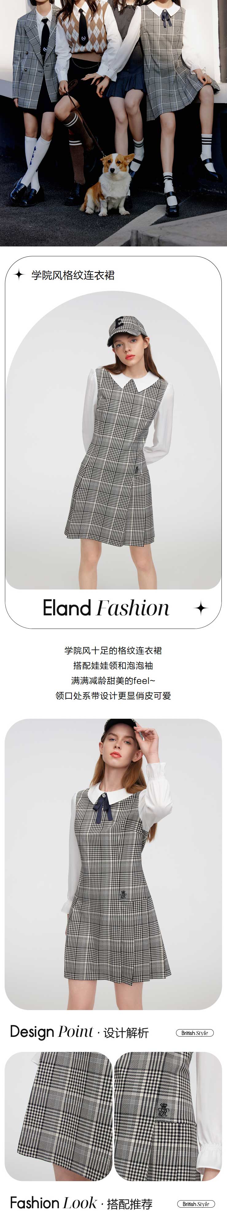 ELAND衣恋2022年春季新款洋气小香风知性文艺少女领结连衣裙女EEOWC12H1B