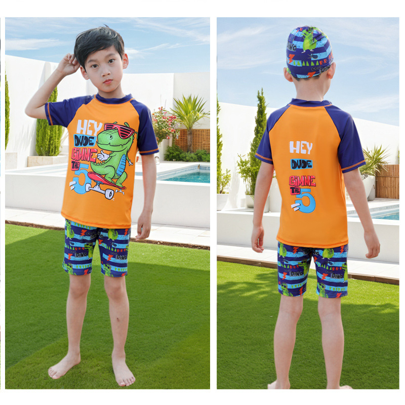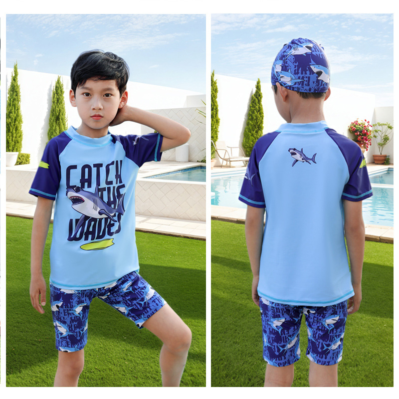 新款儿童泳衣男童分体小中大童游泳衣男孩高弹力速干宝宝泳衣套装