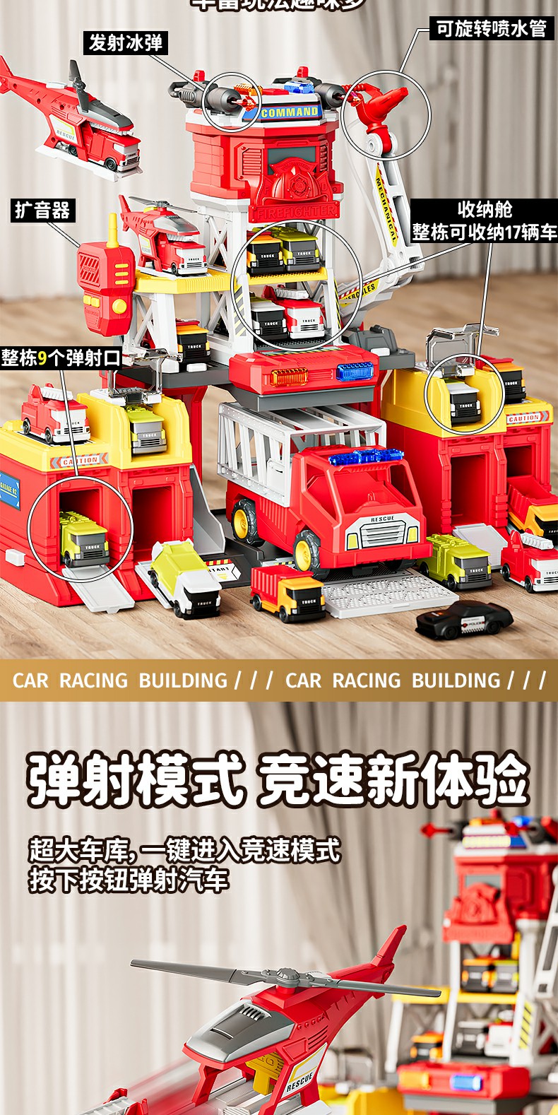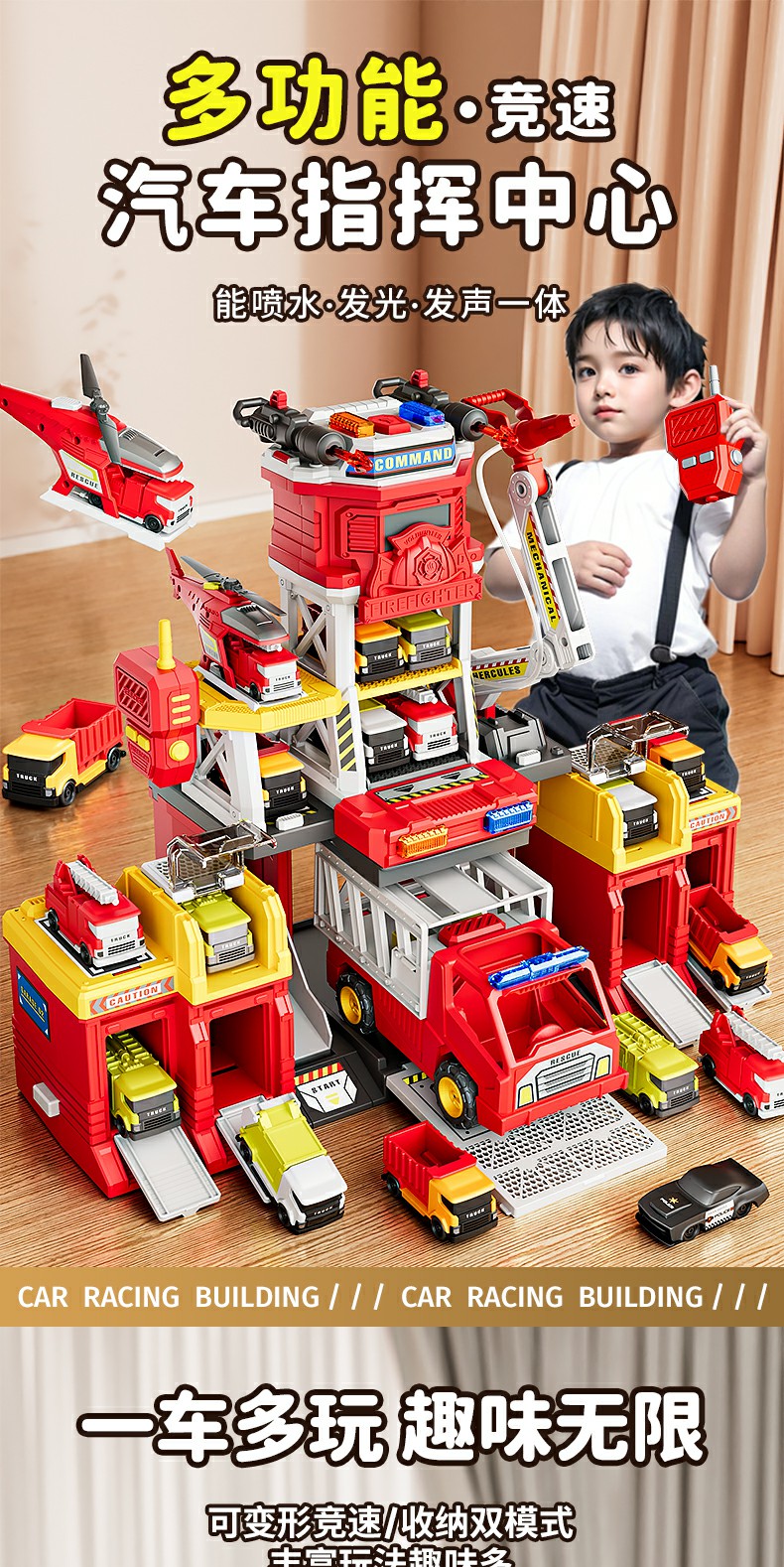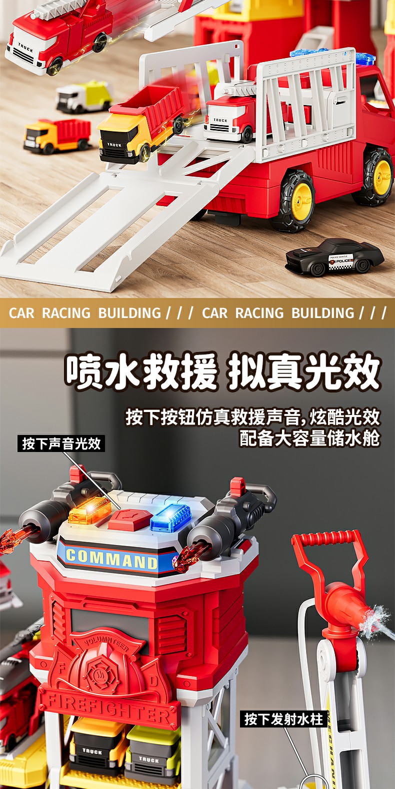 山姆多功能救援男孩消防车小演员大号玩具弹射惯性益智3到6岁生日礼物