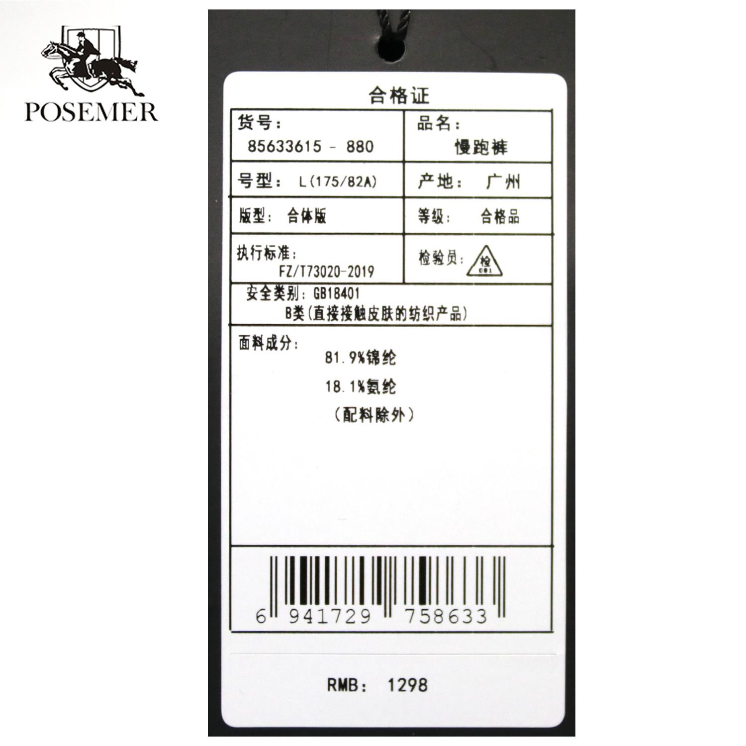 堡马慢跑裤85633615