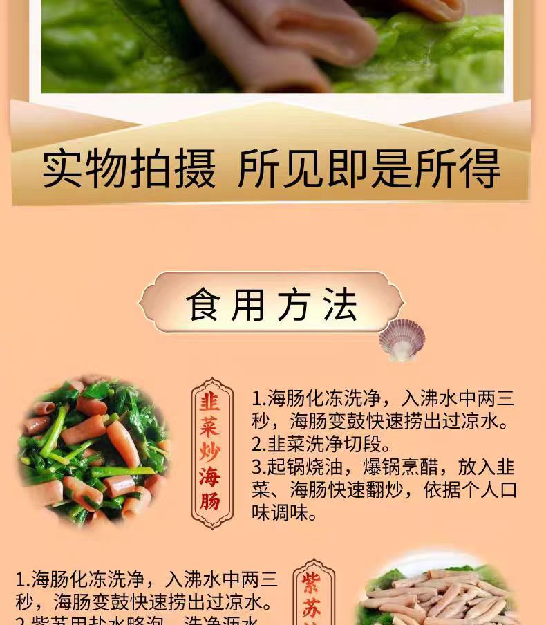 青岛特产厚皮去脏海肠皮新鲜海捕现杀冷冻包饺子捞饭