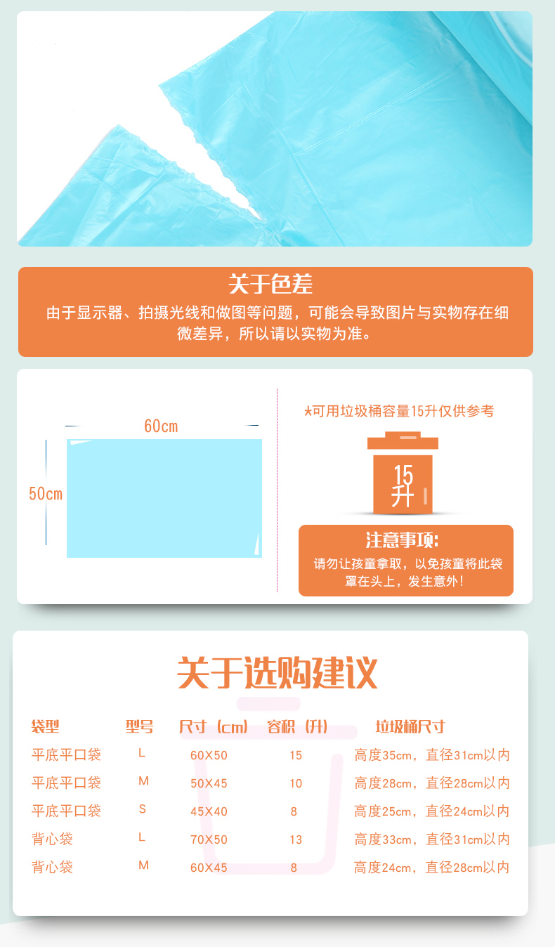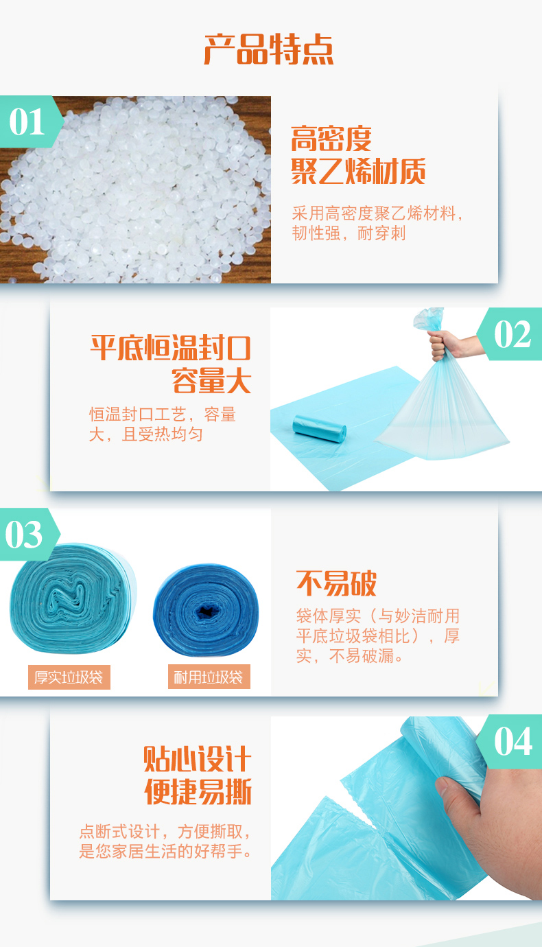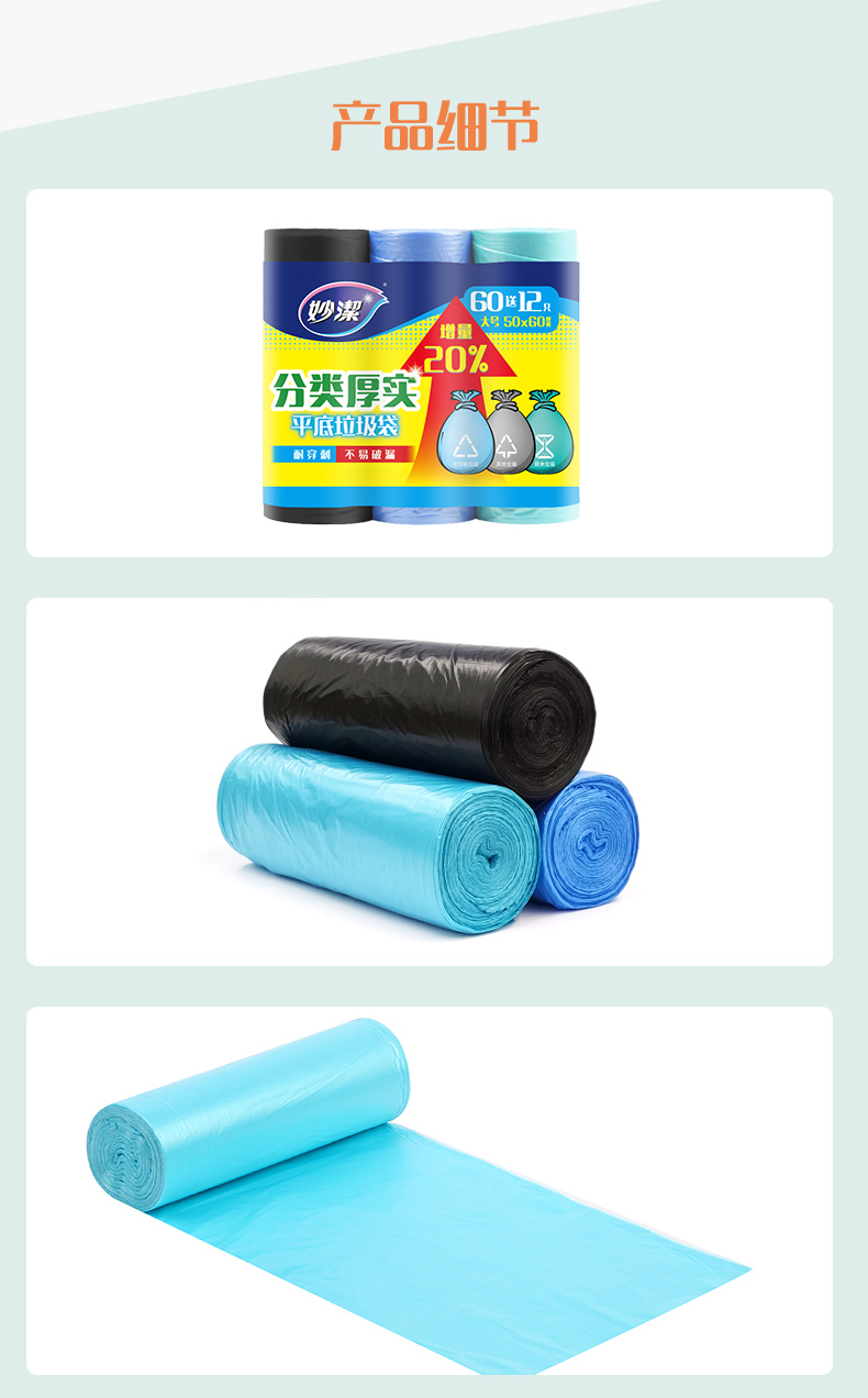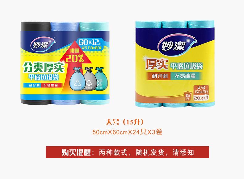 【妙洁】B型平底家用厚实垃圾袋塑料袋*3包