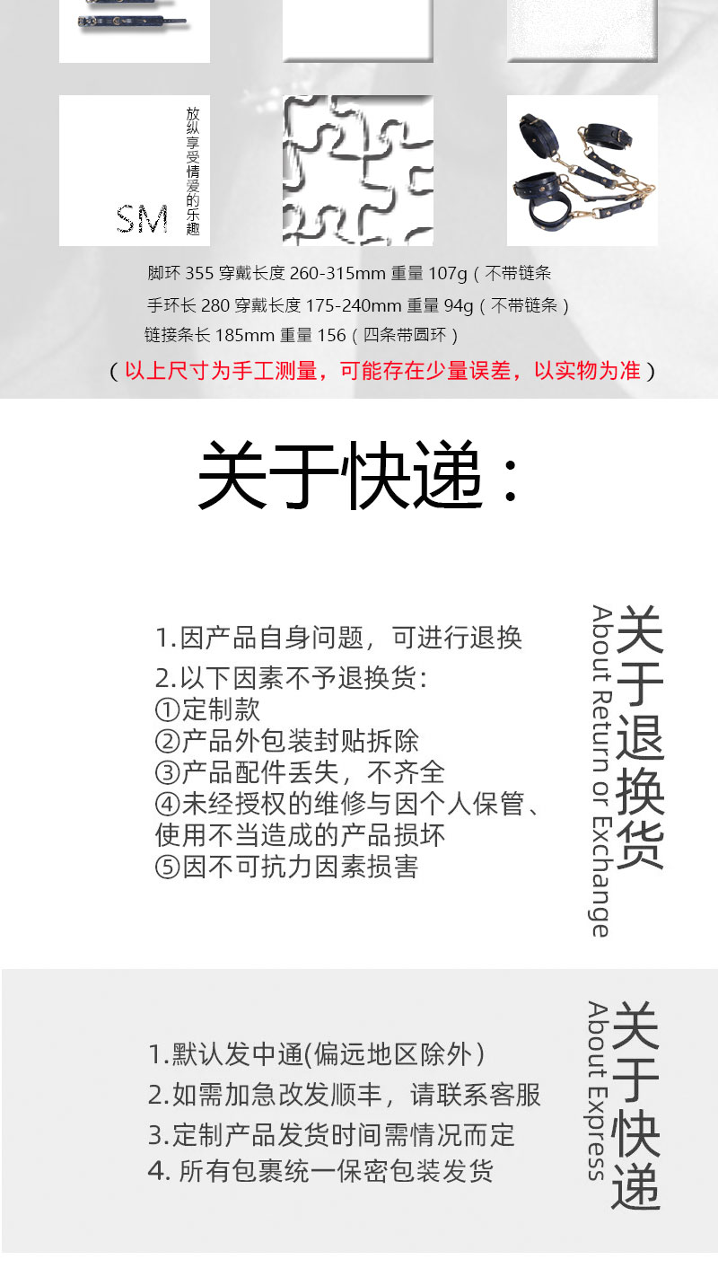 MISSFUN 丽娜SM情趣套装 可调节萝拉大小套装(收纳袋+散鞭+眼罩+手铐+脚铐+眼罩+口球+牵引绳)
