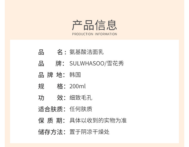 Sulwhasoo雪花秀 顺行柔和泡沫洗面奶 200ml 韩国