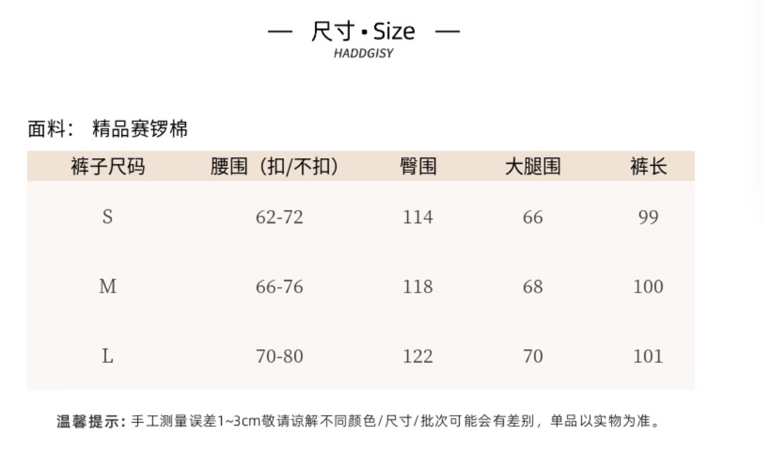 牛仔裤尺码