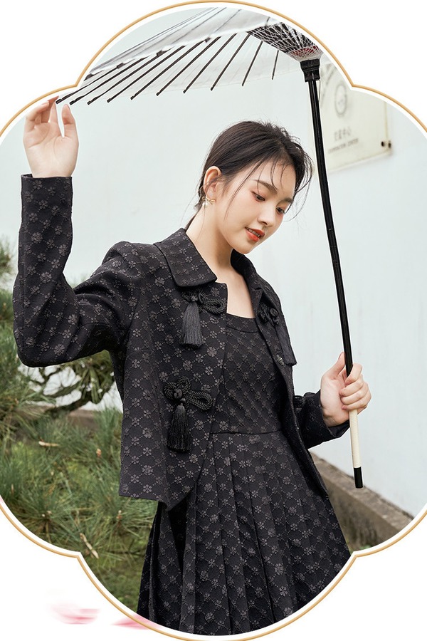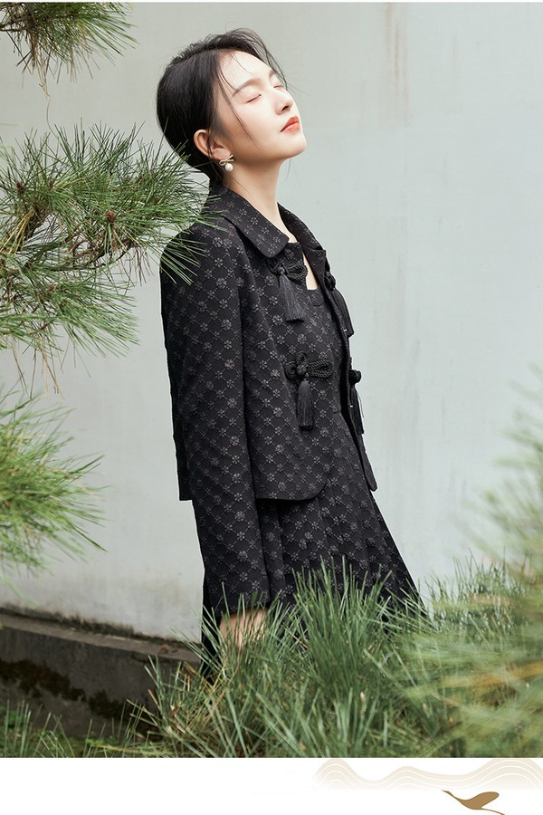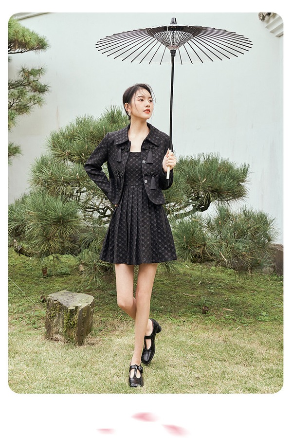 香影 设计感小众短款外套吊带连衣裙套装 17111