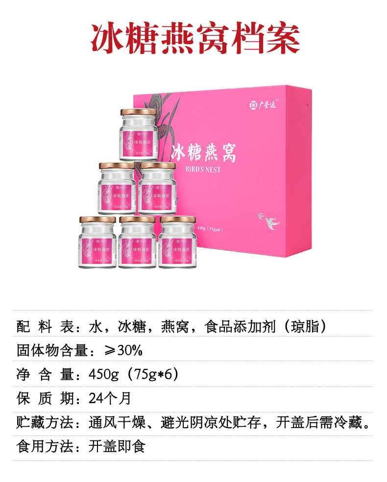 广誉远即食冰糖燕窝75g*6瓶/盒