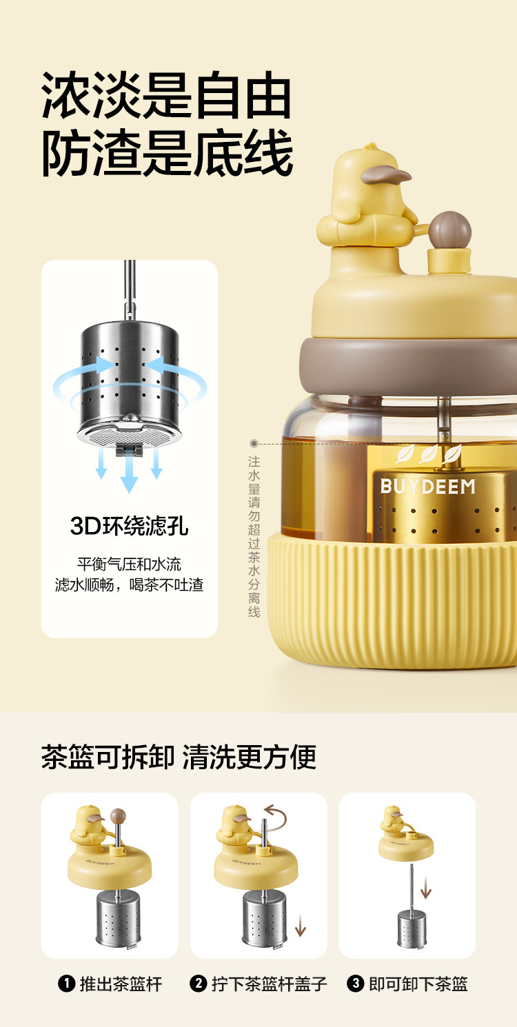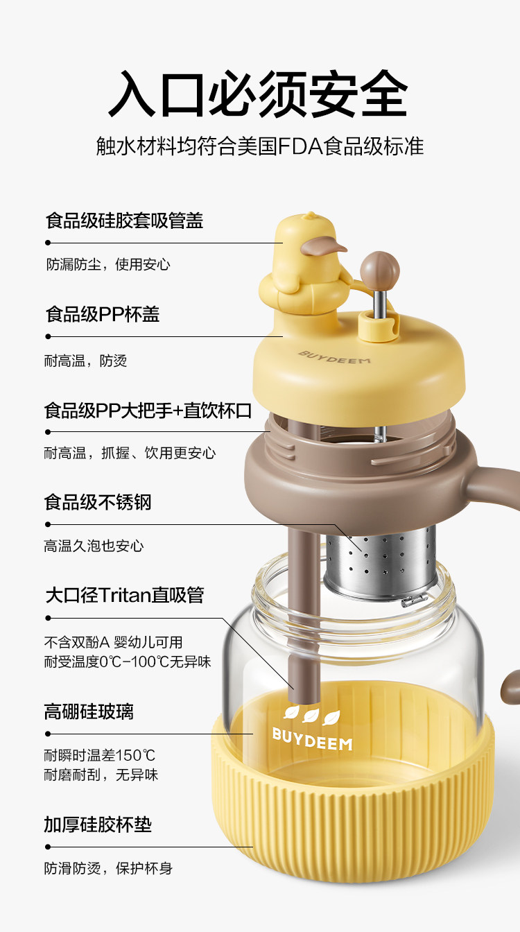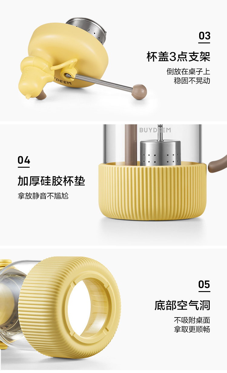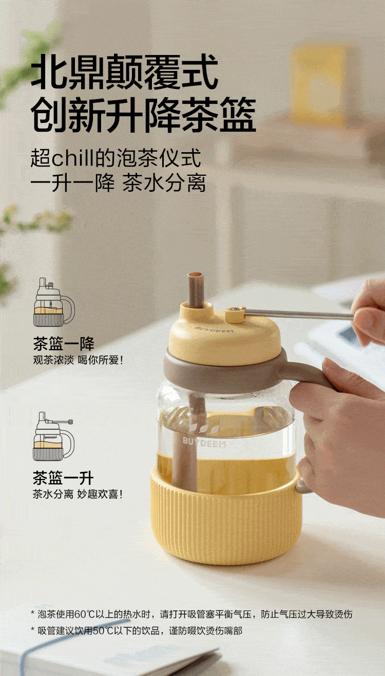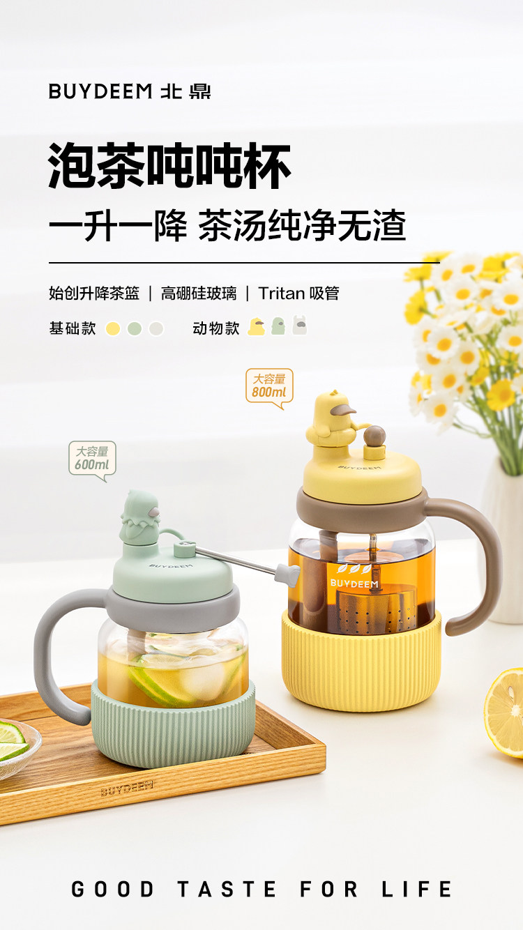 【专柜-北鼎】北鼎玻璃杯壶泡茶吨吨杯茶水分离杯水杯小鹅黄600ml