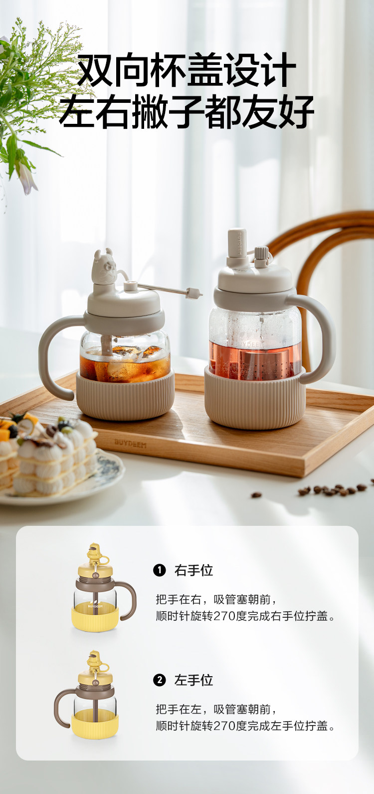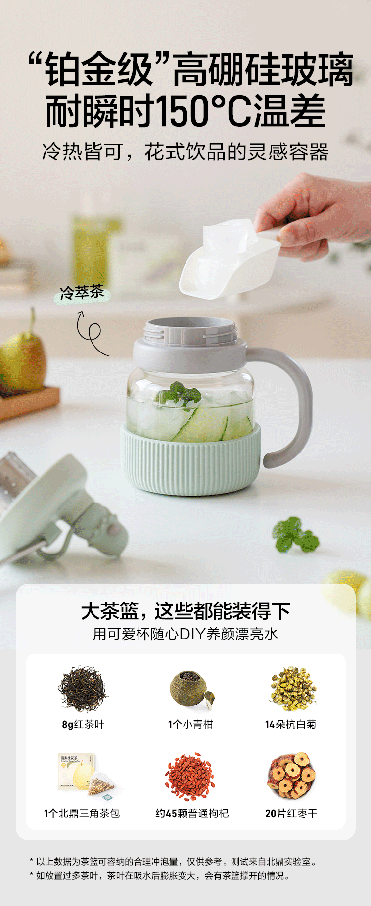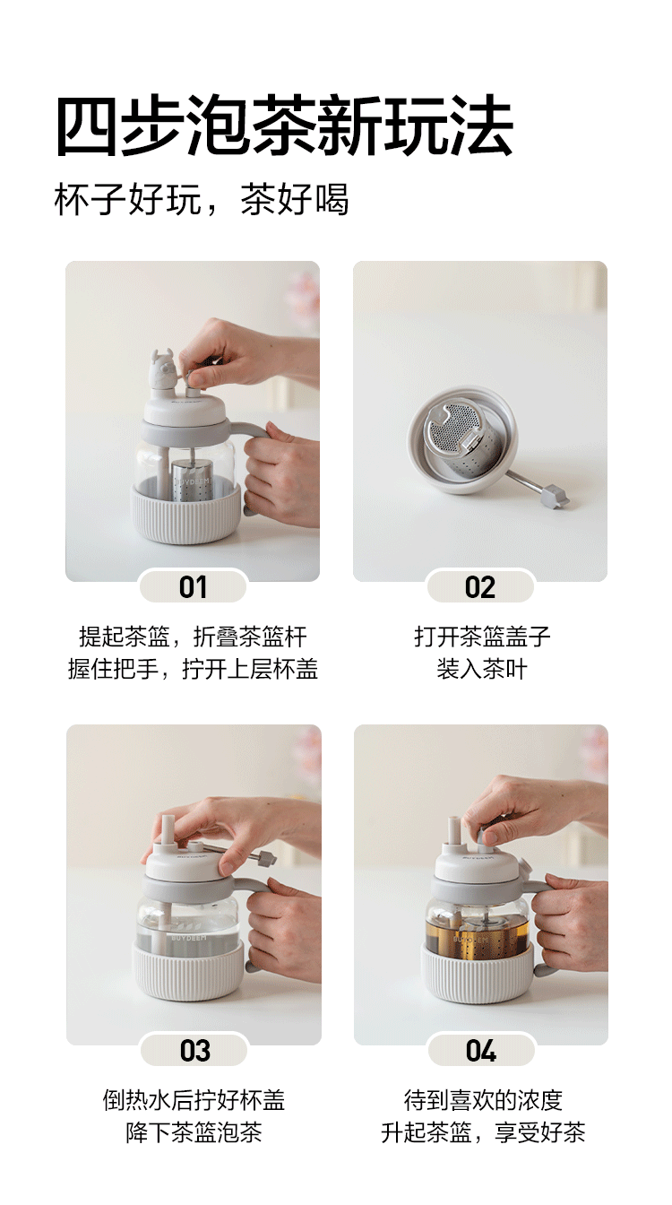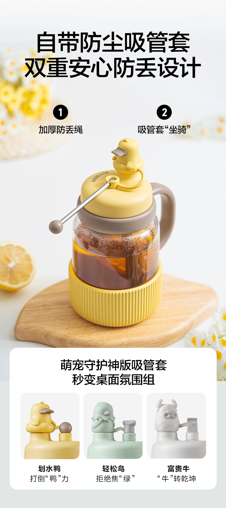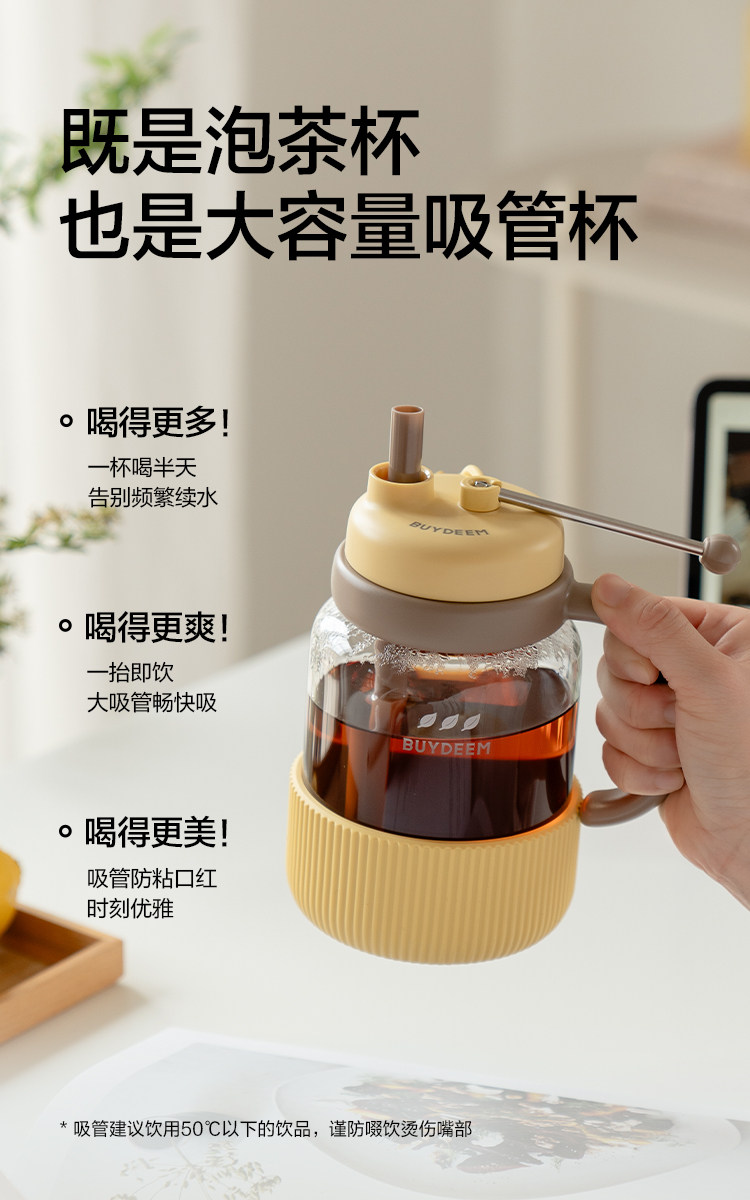 【专柜-北鼎】北鼎玻璃杯壶泡茶吨吨杯茶水分离杯水杯小鹅黄600ml