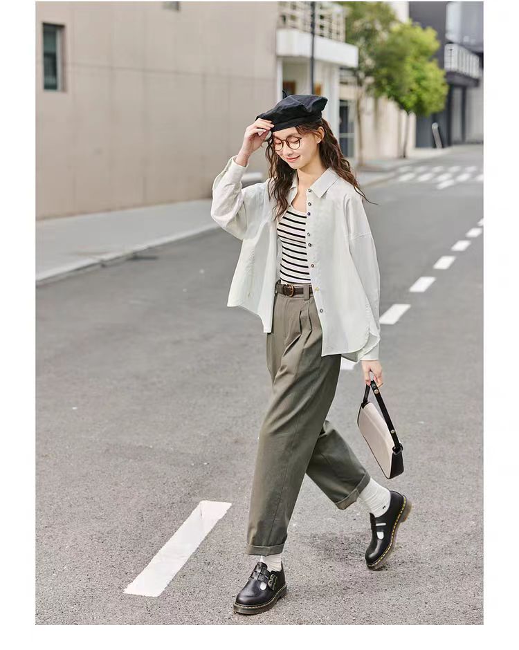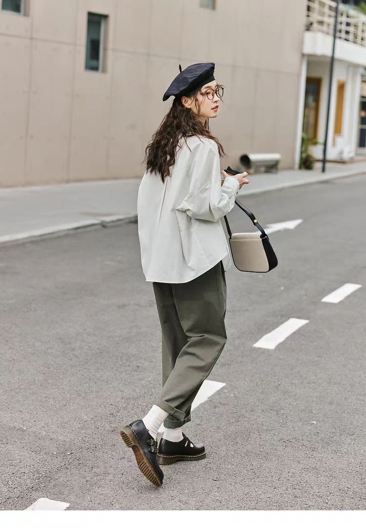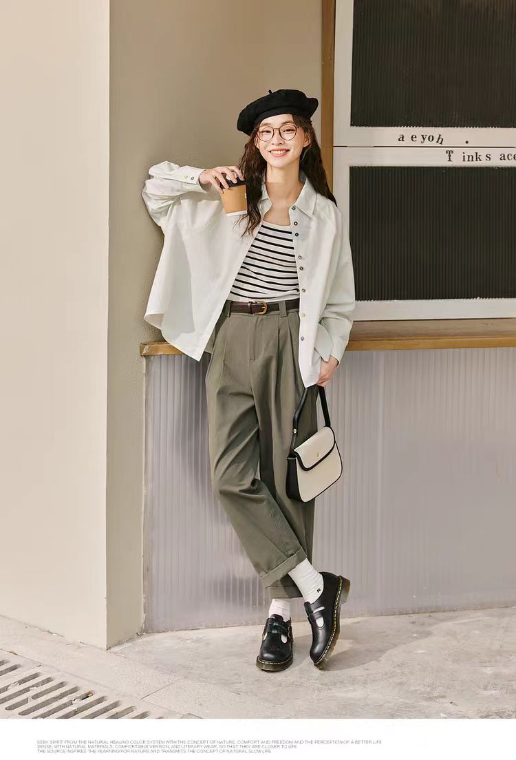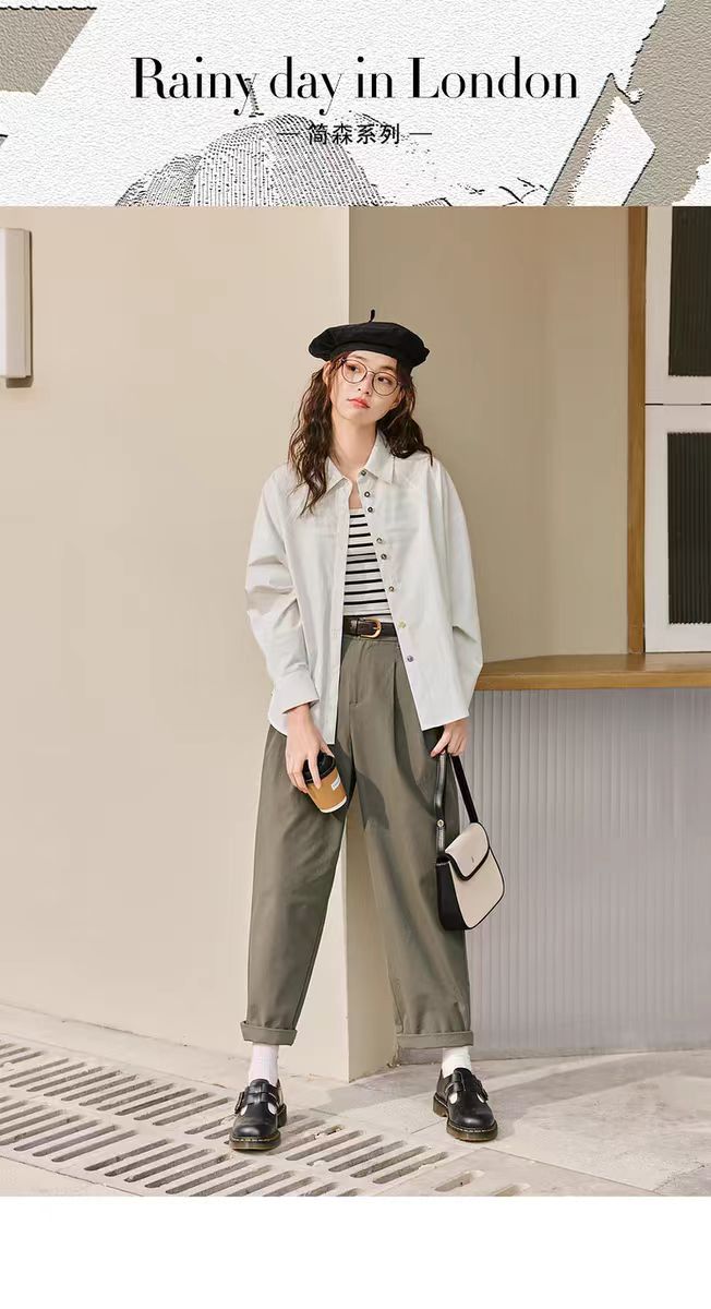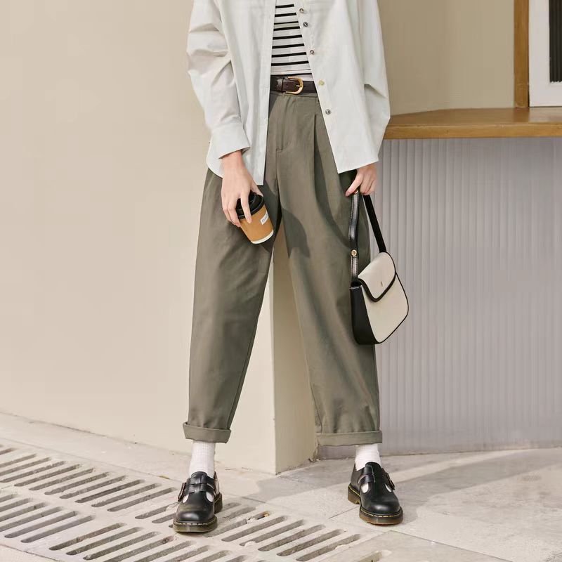 【内购会】紫涵高腰哈伦直筒裤女简约复古宽松显瘦纯色休闲长裤子