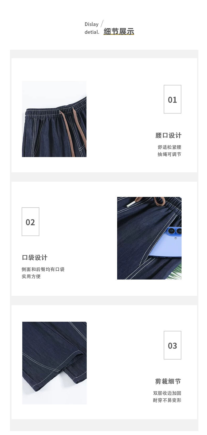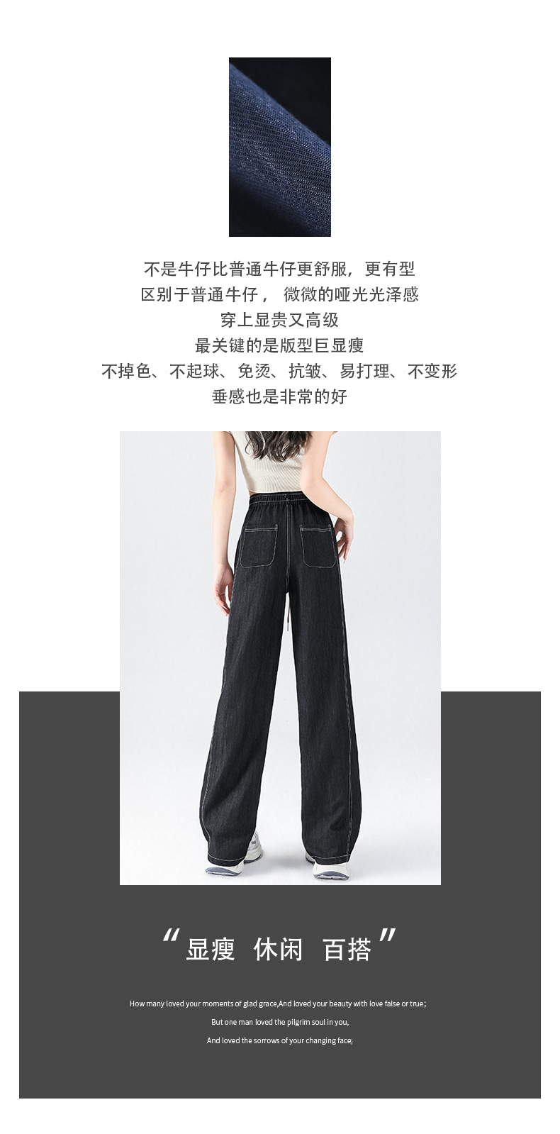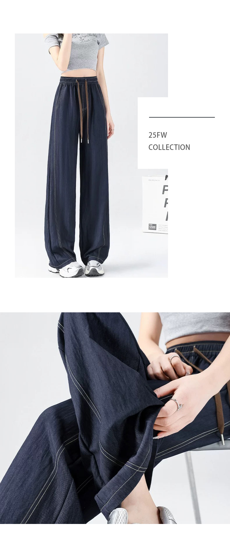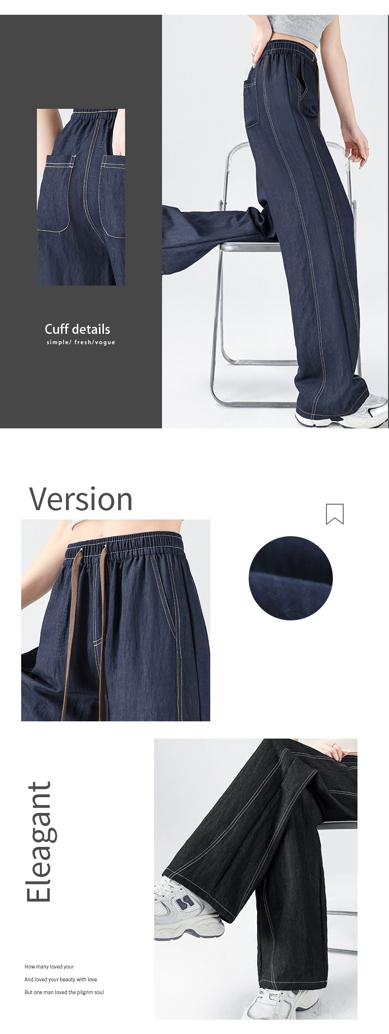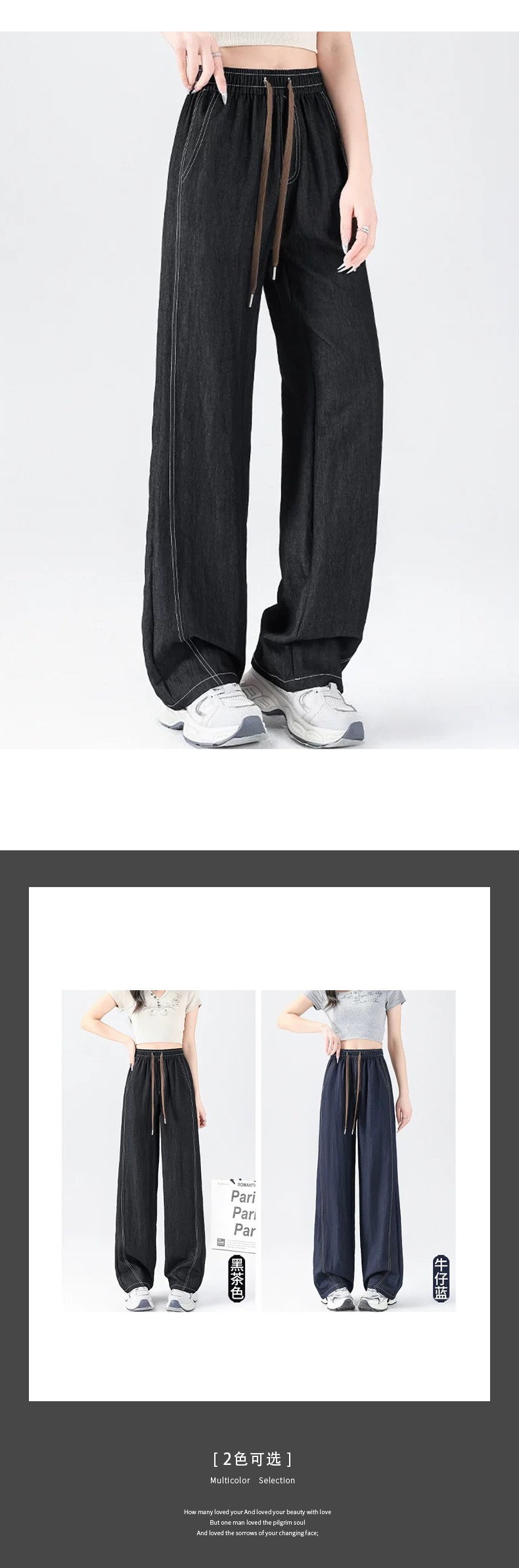 馥迦春夏仿牛仔假门襟阔腿裤