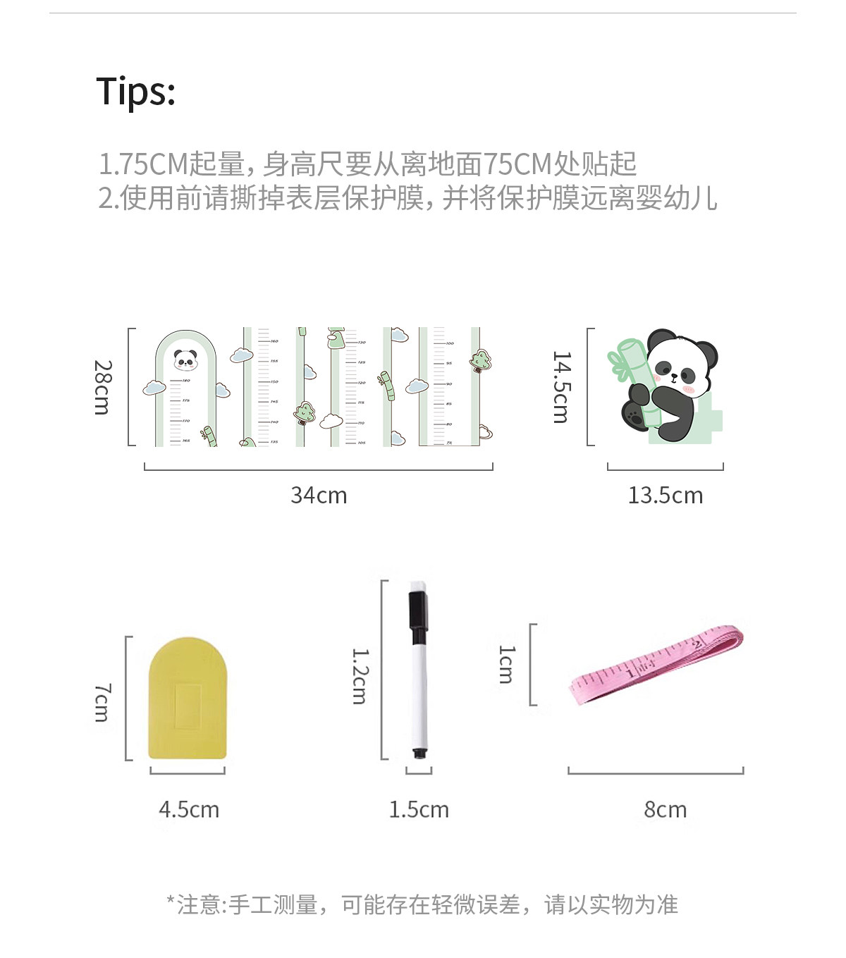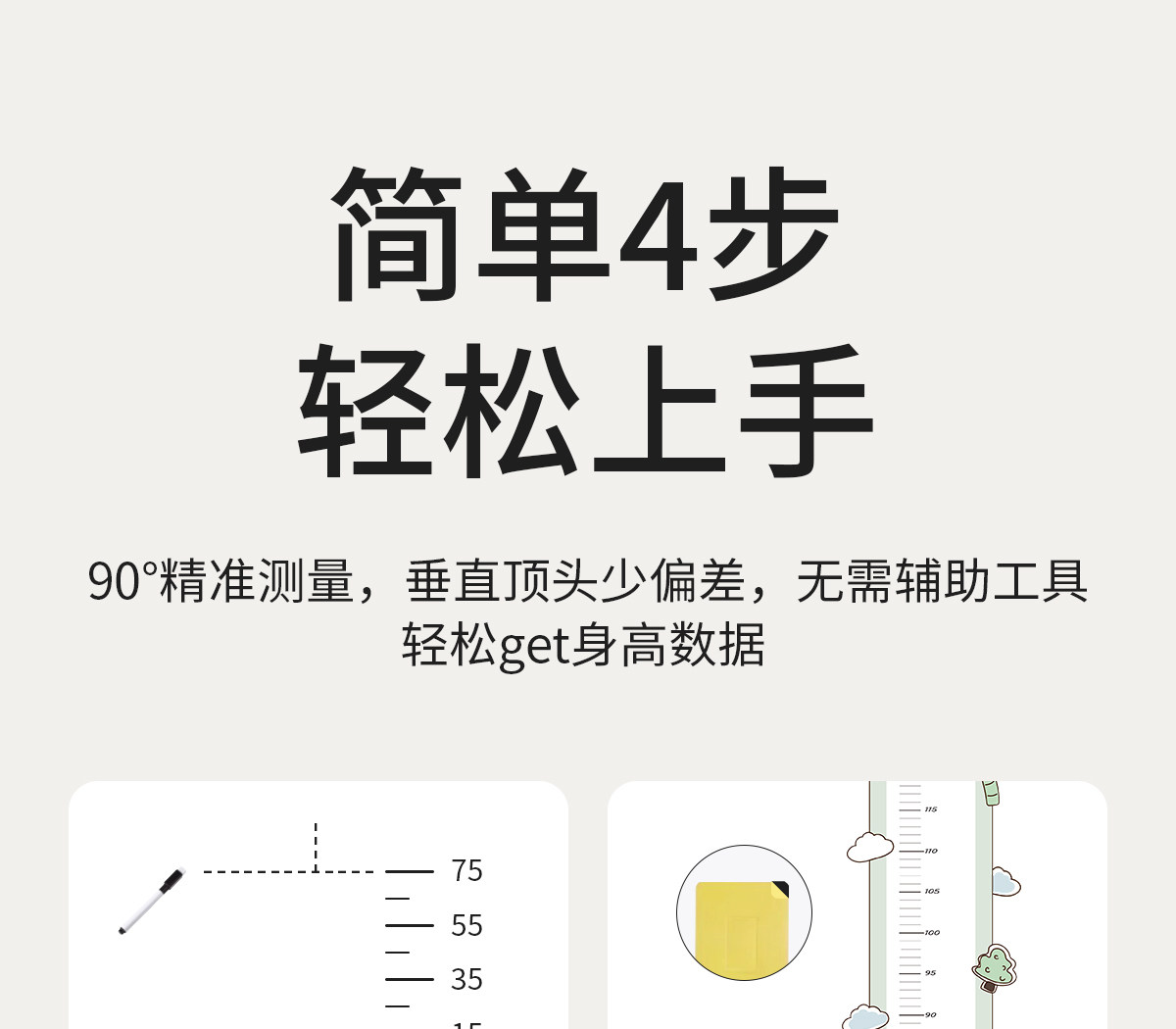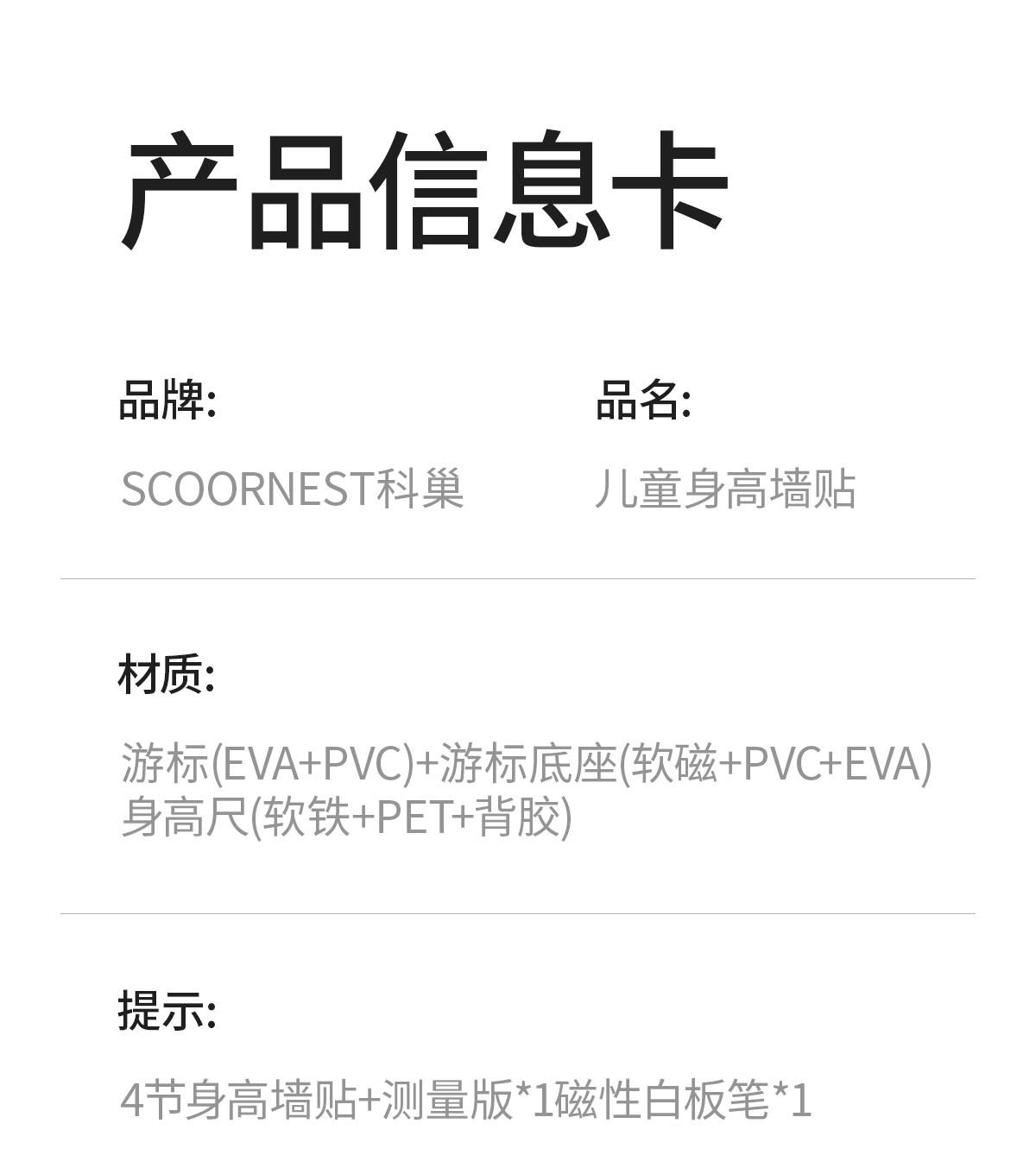 科巢儿童身高测量墙贴量身高贴可移除不伤墙身高尺测量仪精准家用