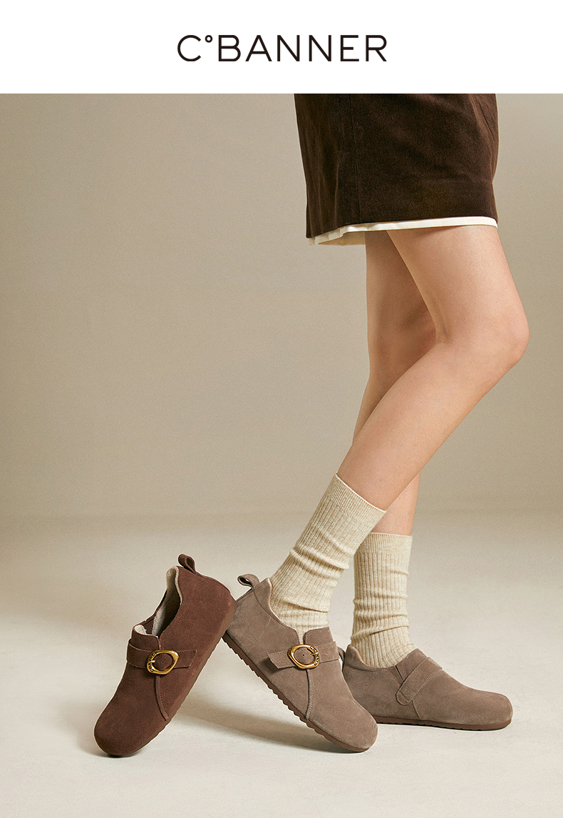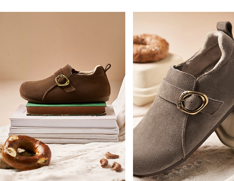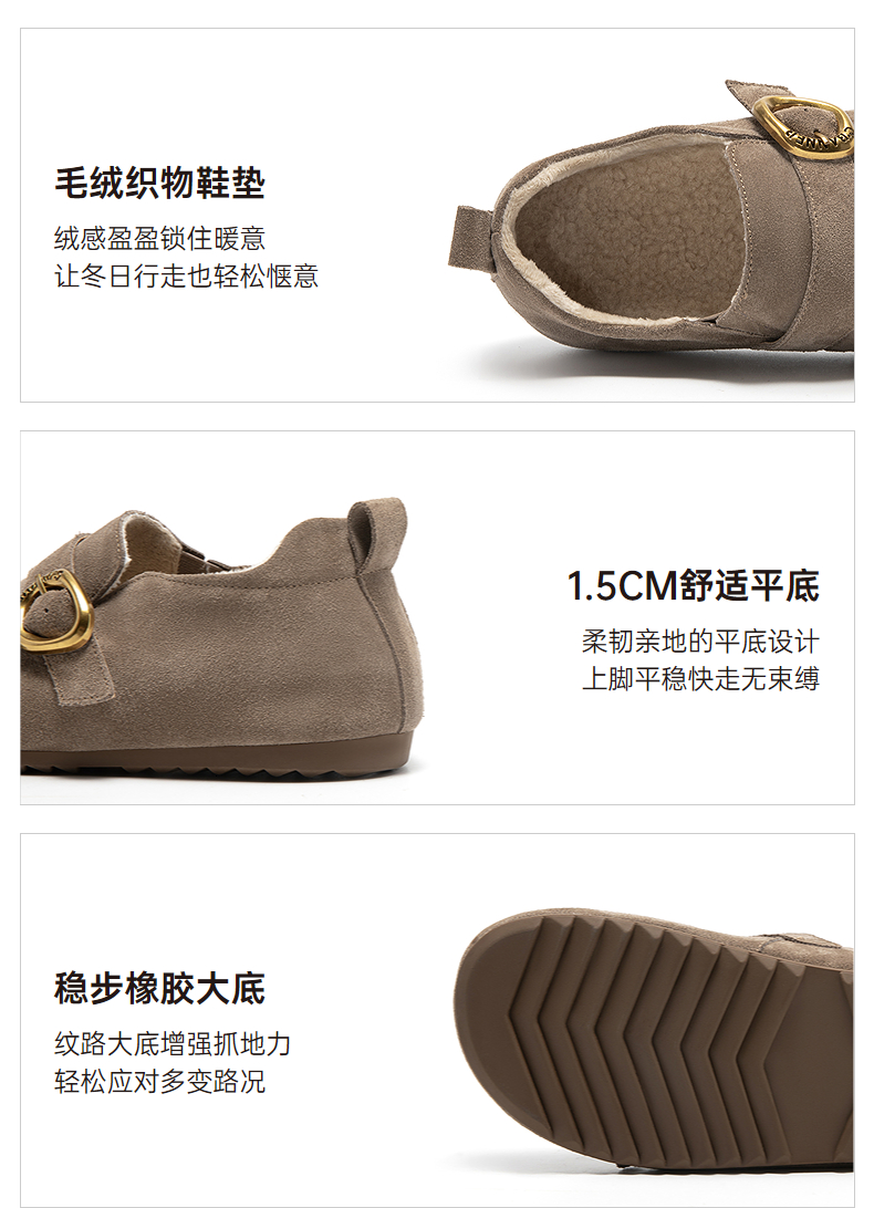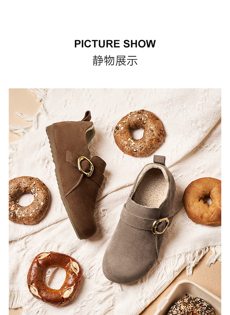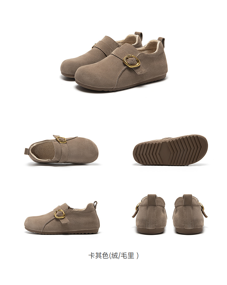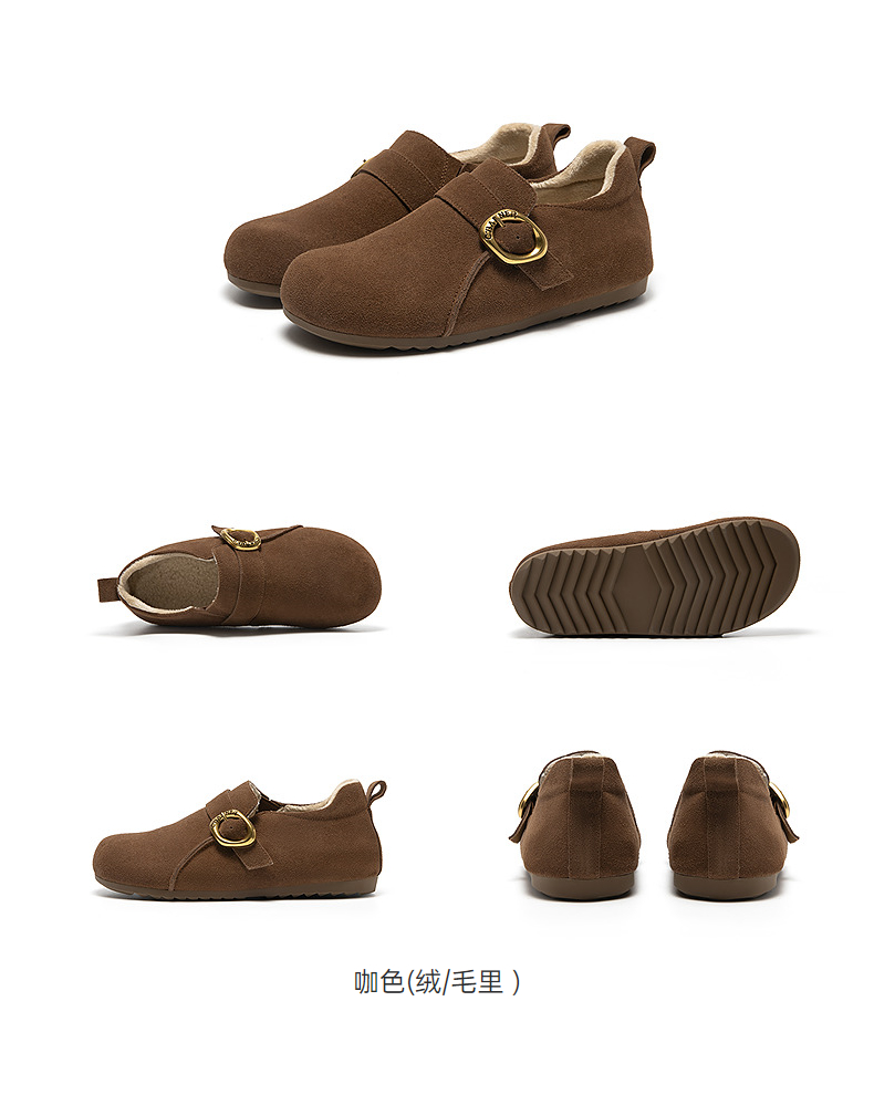 千百度薄底时尚雪地靴女秋冬新款加绒保暖全包勃肯鞋平底单鞋A25602006