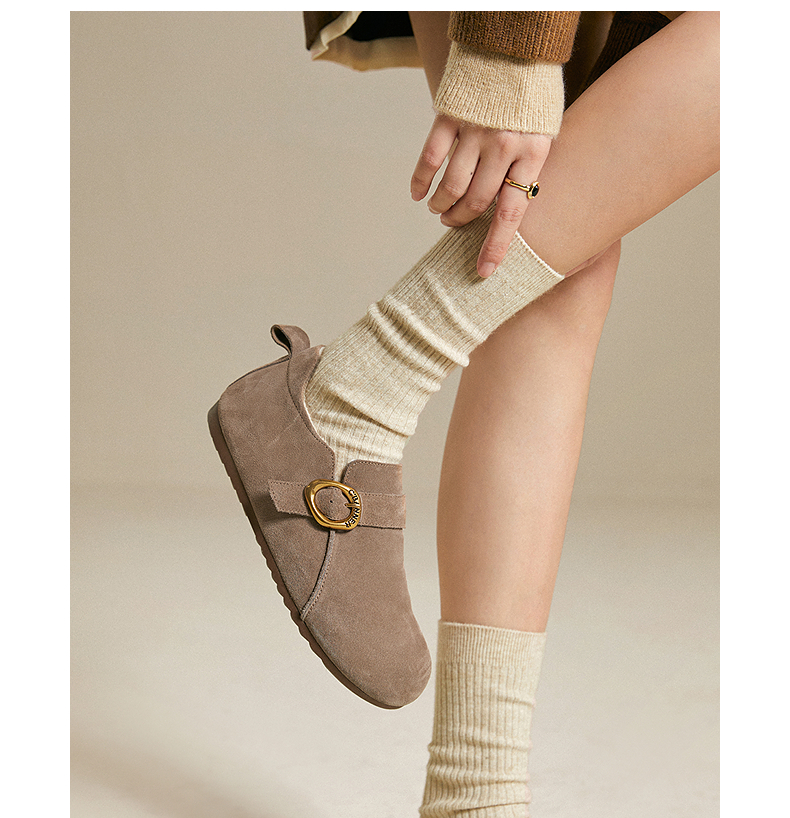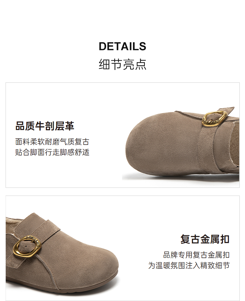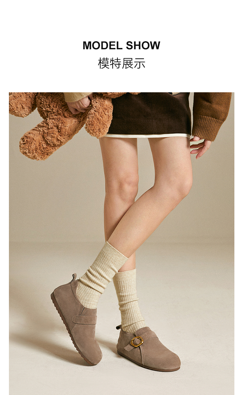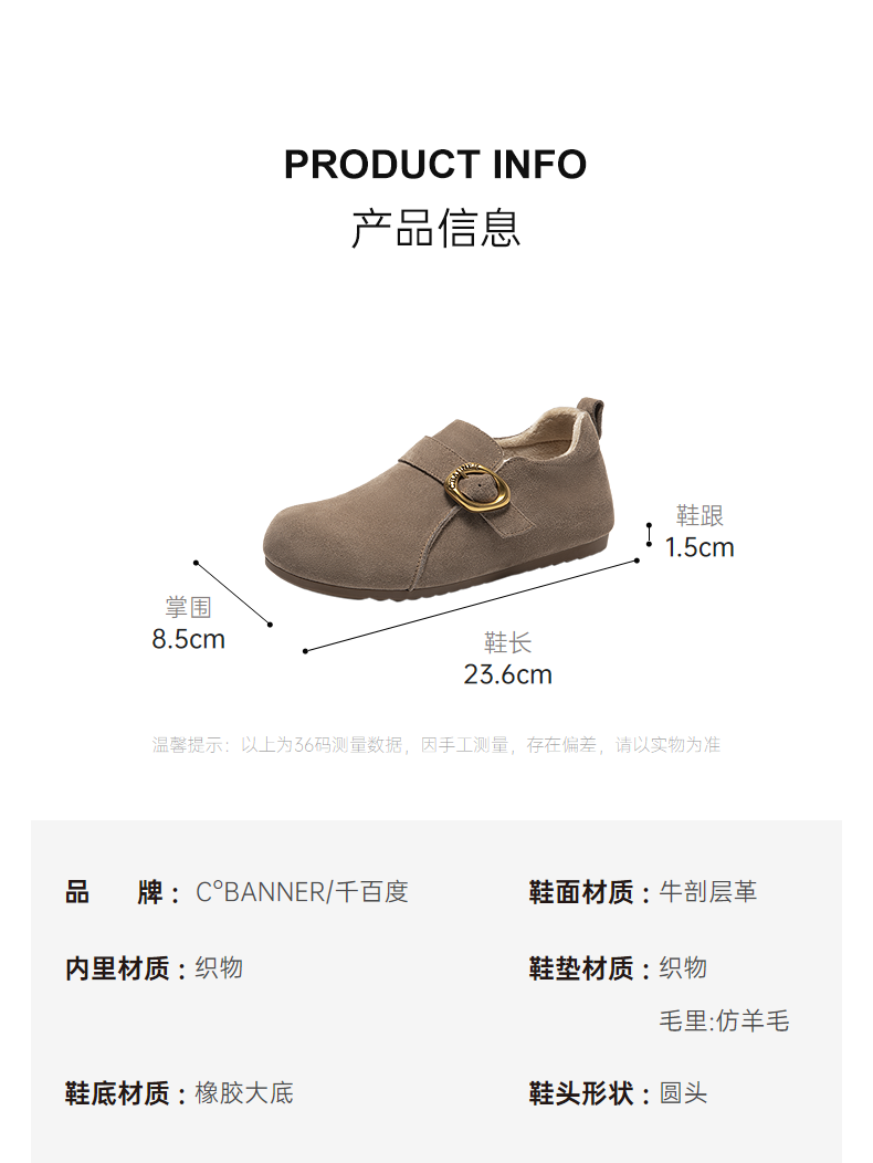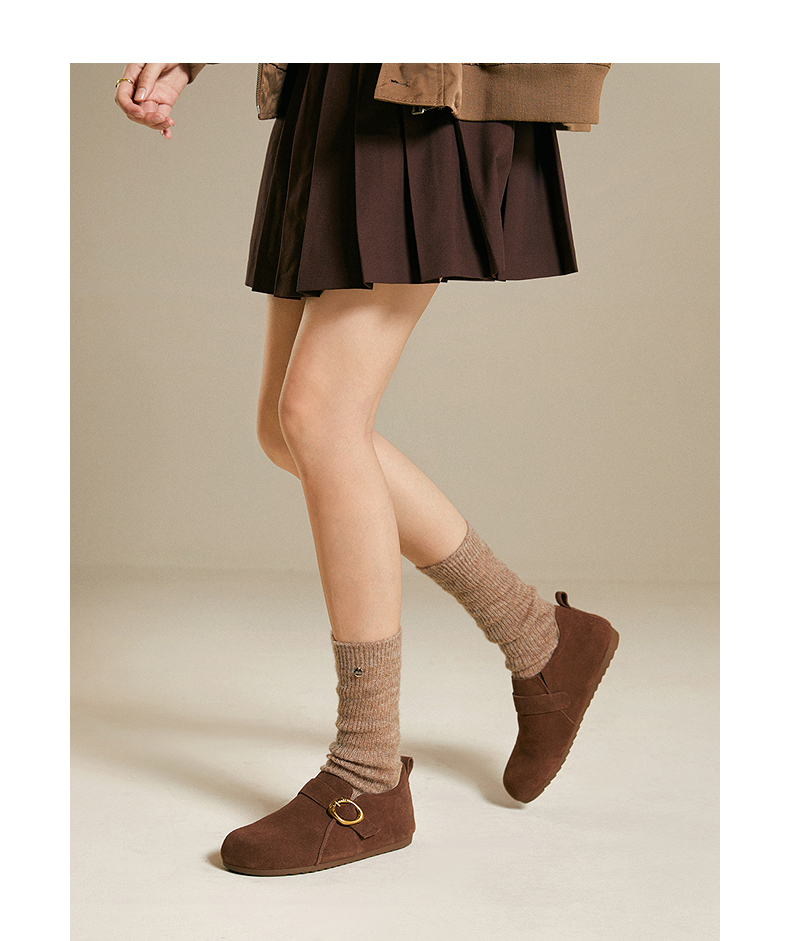 千百度薄底时尚雪地靴女秋冬新款加绒保暖全包勃肯鞋平底单鞋A25602006