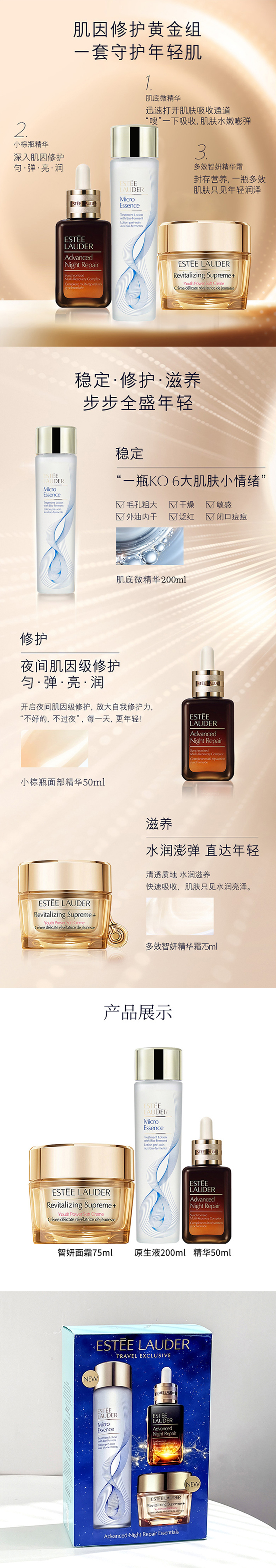 雅诗兰黛抗老三件套(二代原生液200ML+7代小棕瓶50ML+智妍面霜75ML)