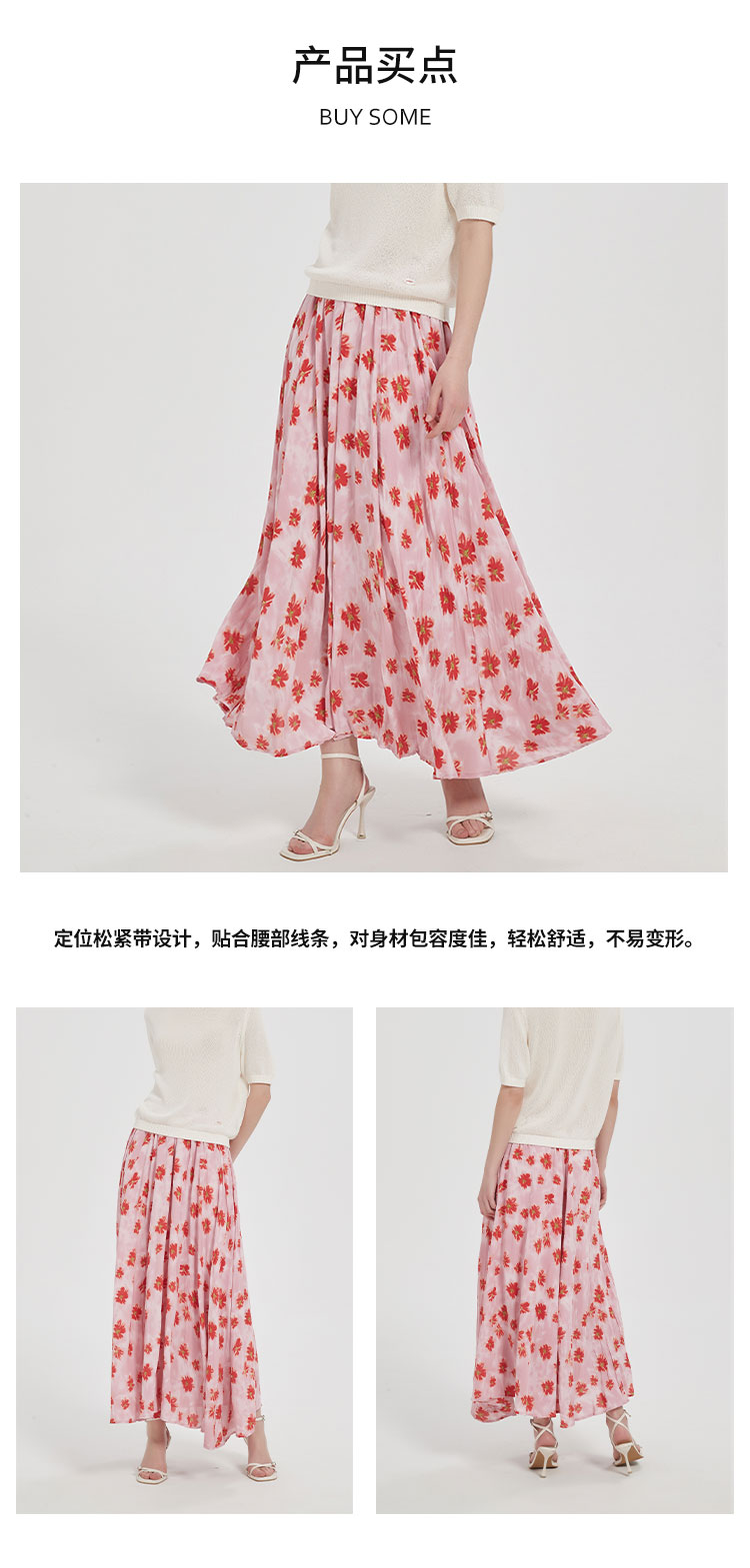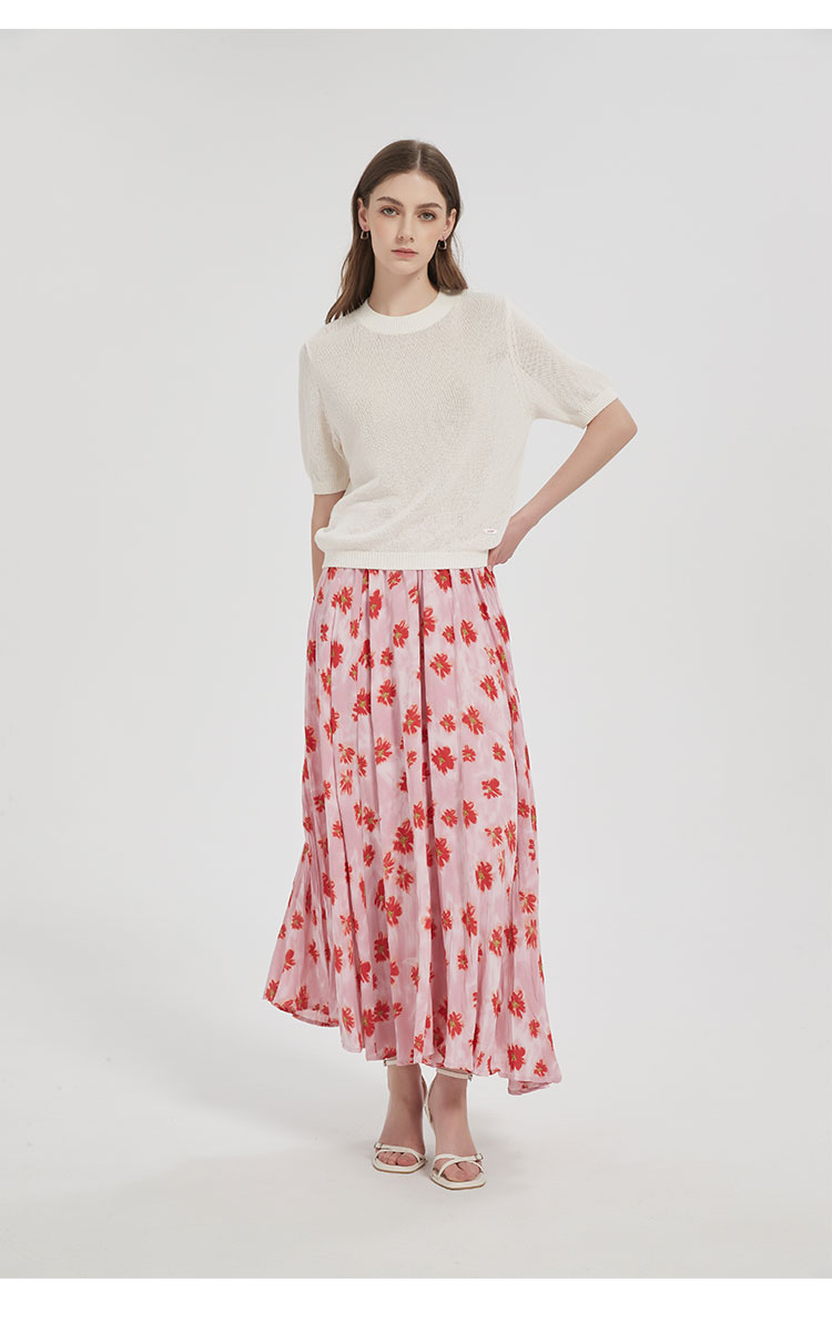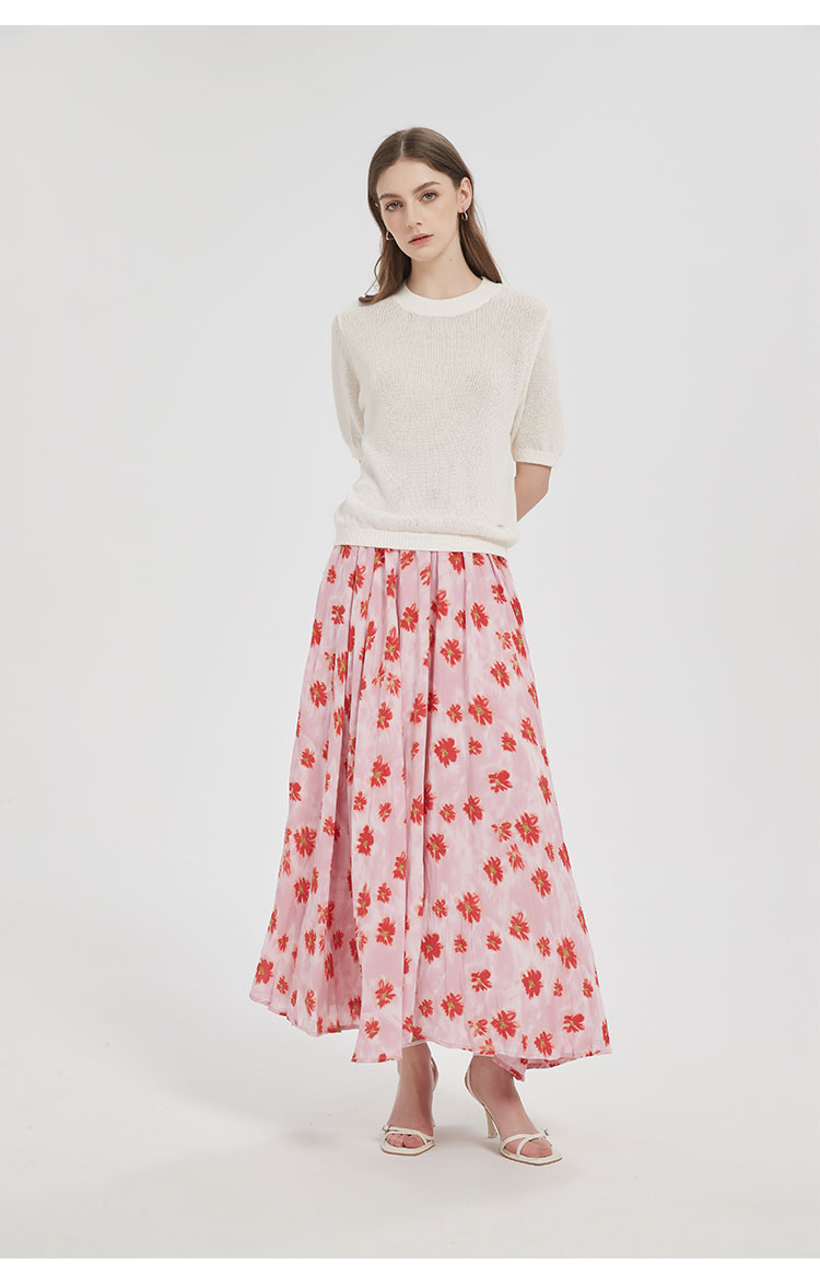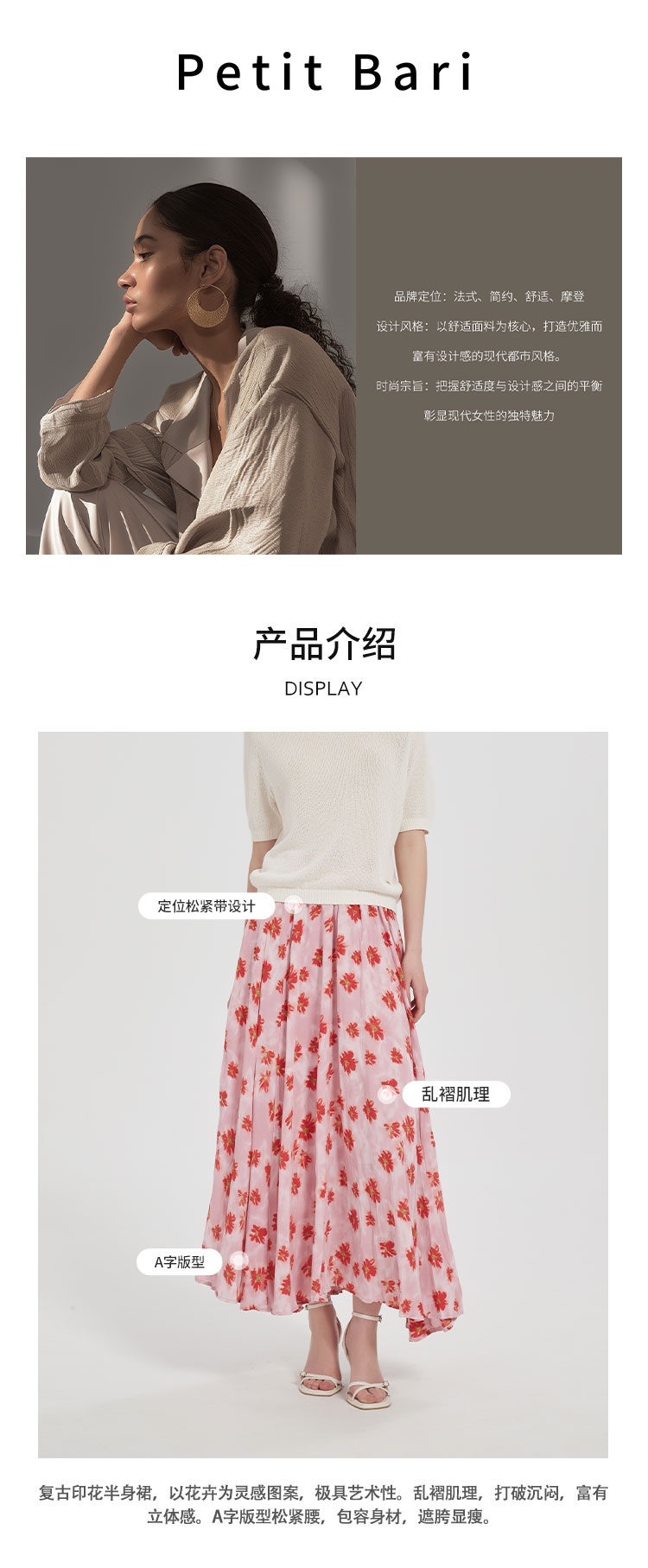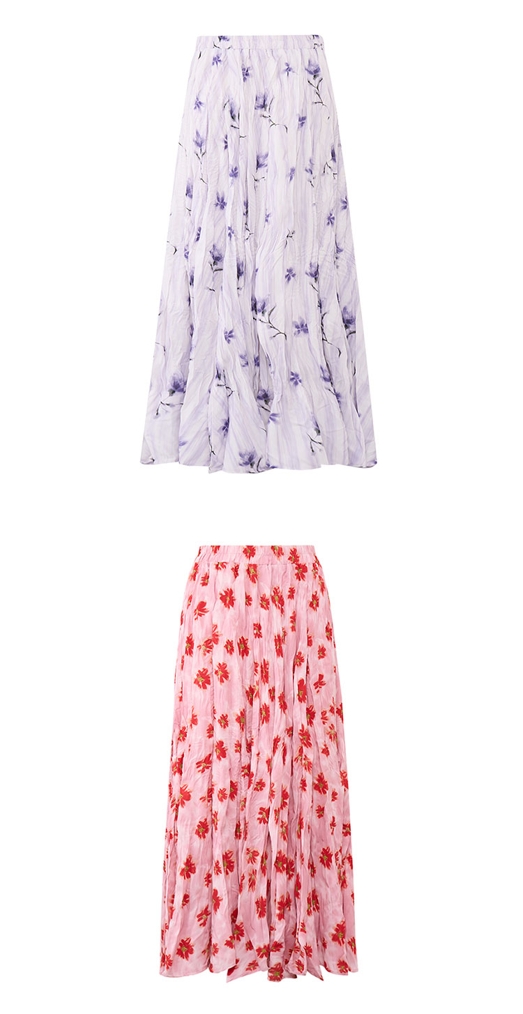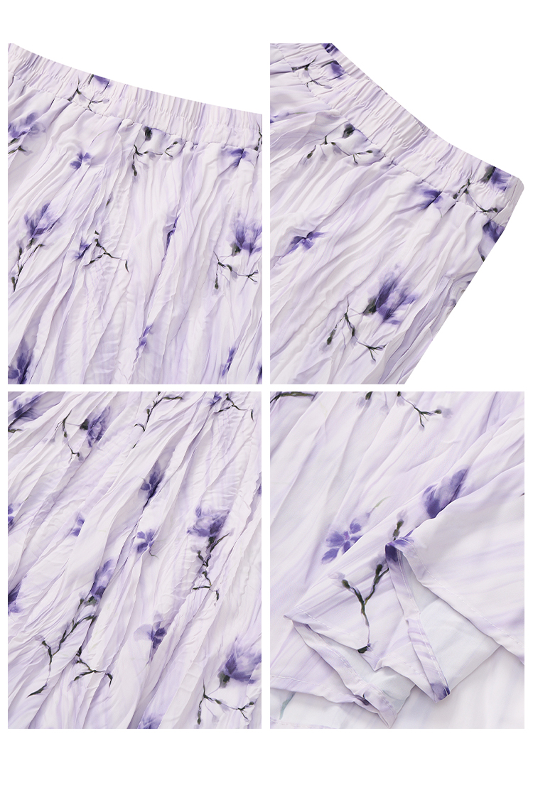 【2件9折】【Petit Bari】(多色)不规则褶皱印花A字半身裙长裙