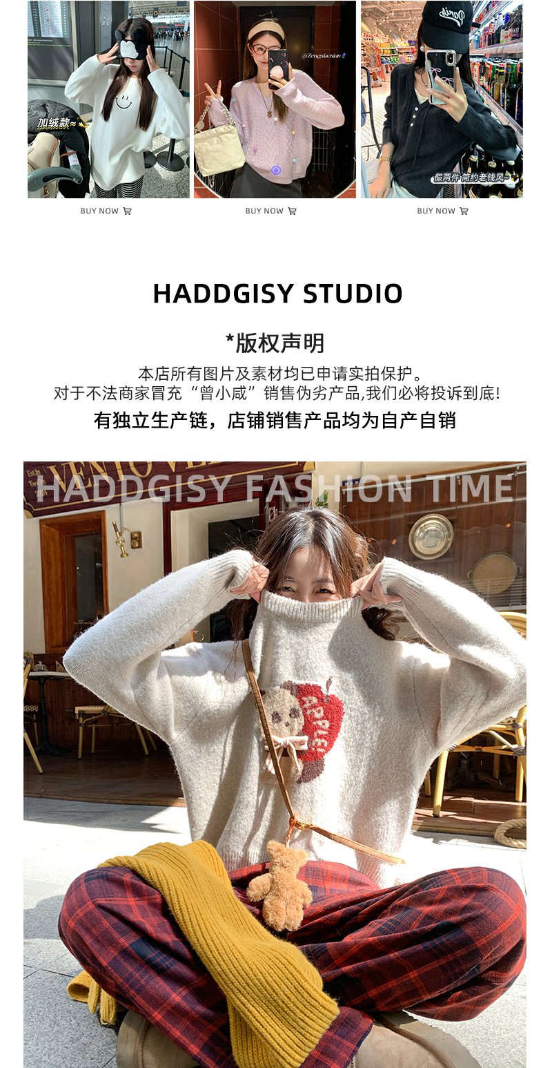 <曾小咸推荐>氛围感宽松提花小熊套头毛衣