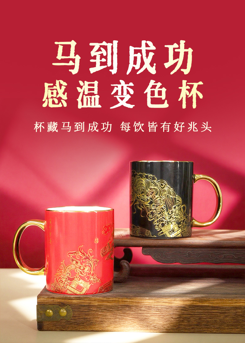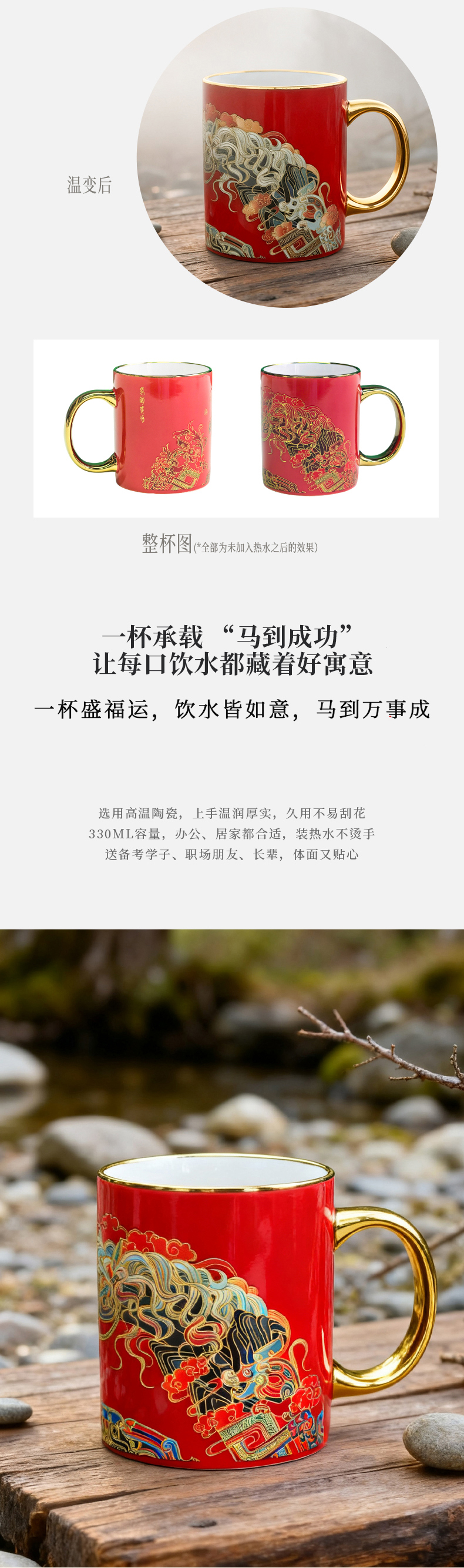 热卖中!! 马到成功温变杯 景德镇匠心瓷 办公居家高颜值饮水杯礼盒