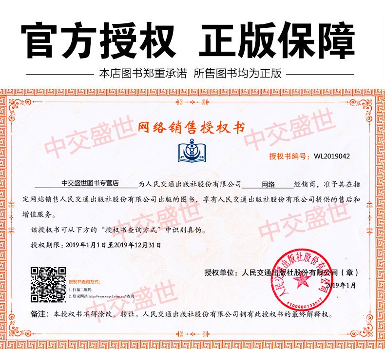 - 北京中交盛世图书专营店是人民交通出版社股份有限公司下属自营店铺,具备图书批发零售综合资质,主要经营本版及外版道路工程、桥梁隧道、铁道工程、水利电力、航运海事类专业图书及相关技术规范,竭诚为广大读者提供一站式图书采购服务。