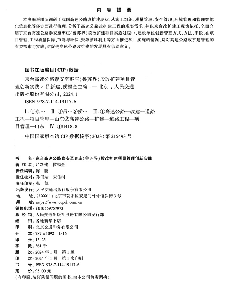 书名:京台高速公路泰安至枣庄(鲁苏界)段改扩建项目管理创新实践