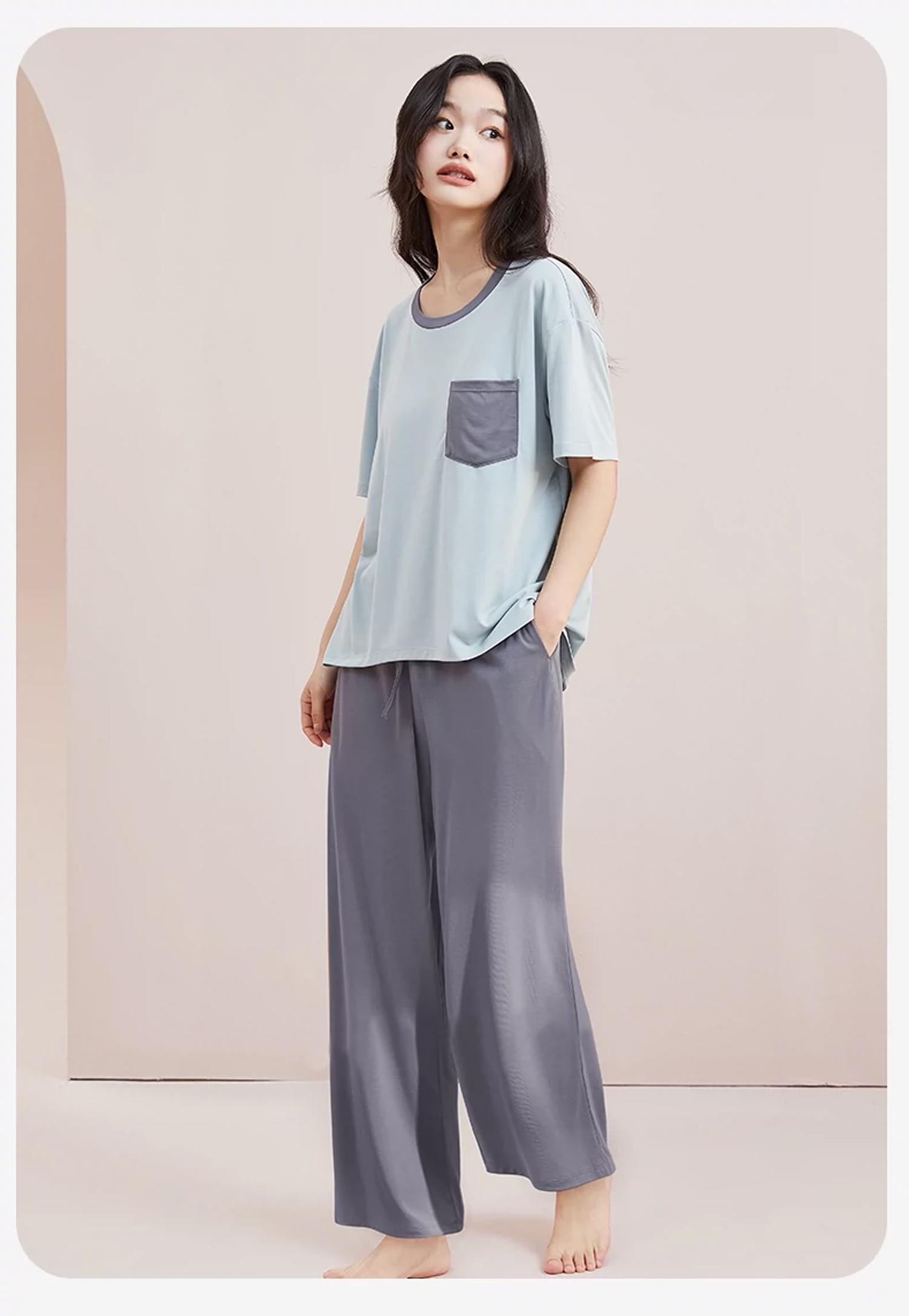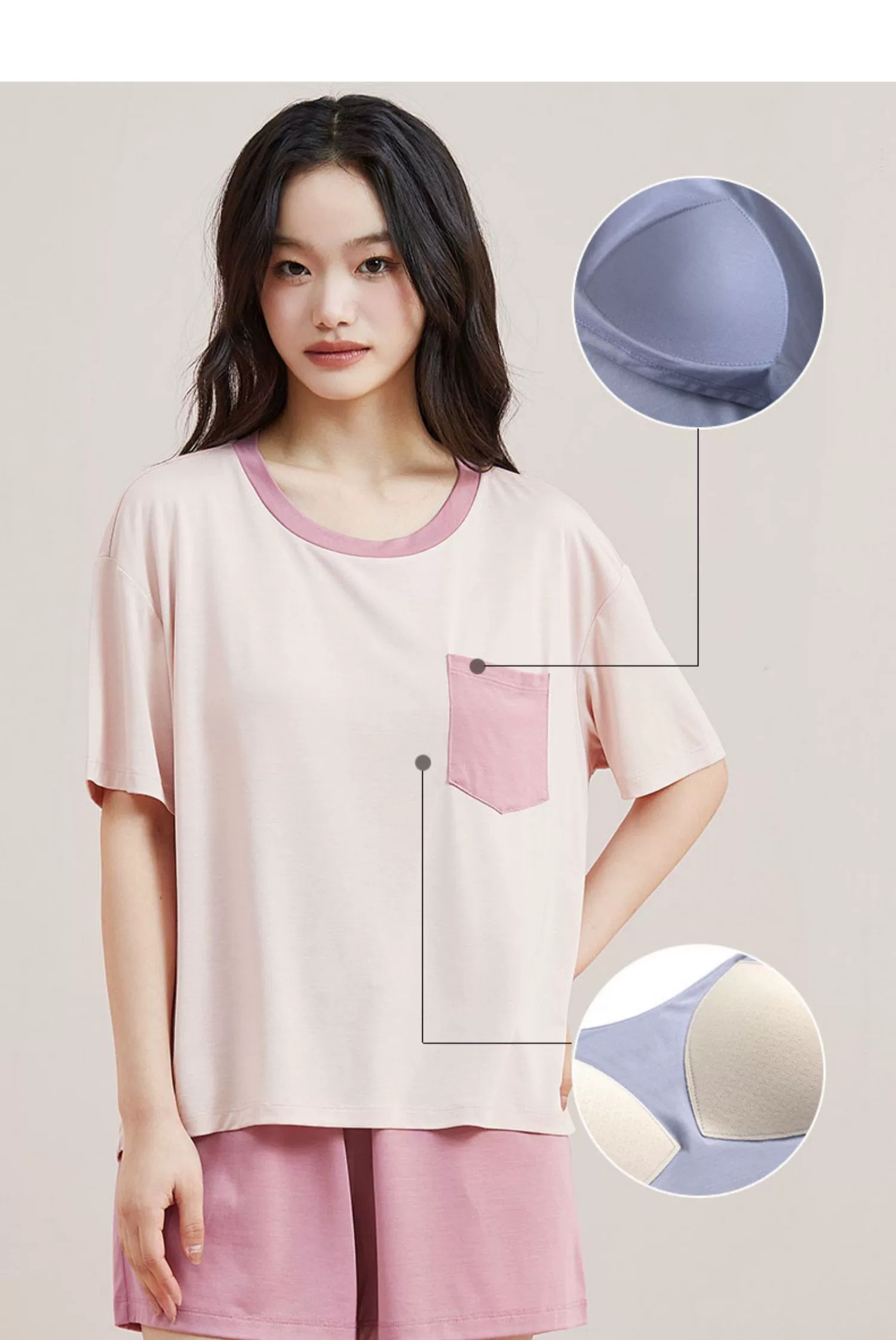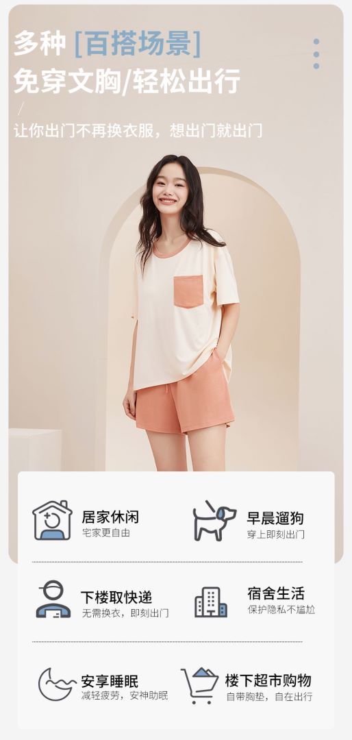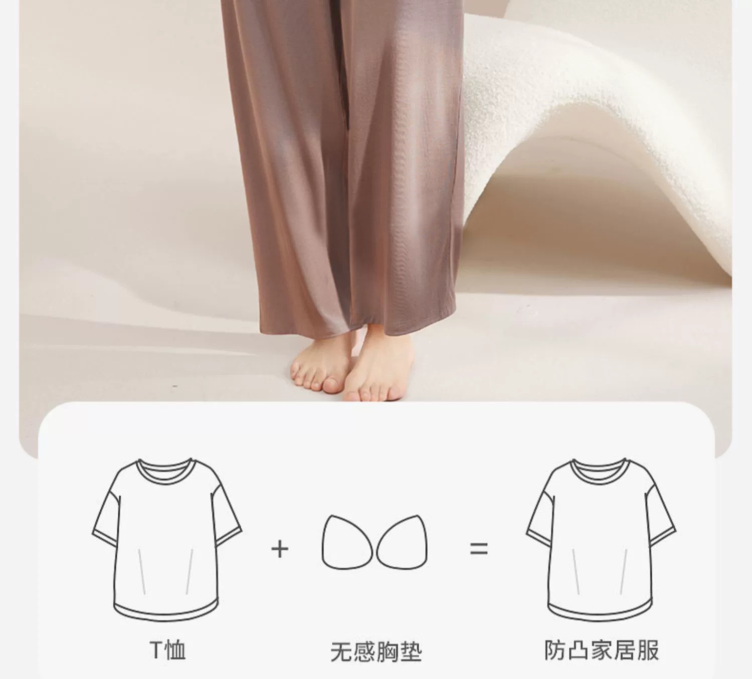 夏款 自带bra睡衣 家居服 一体杯胸垫不凸点舒适无束缚 面料清凉柔软 长裤短裤可选