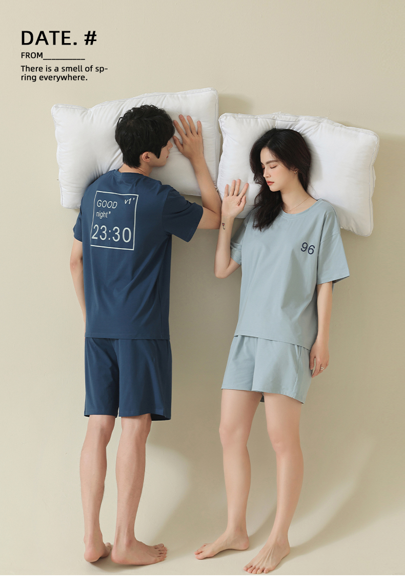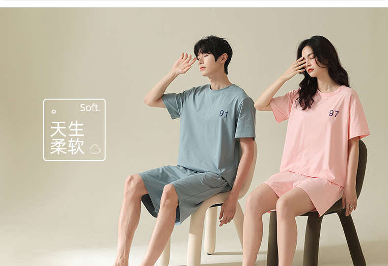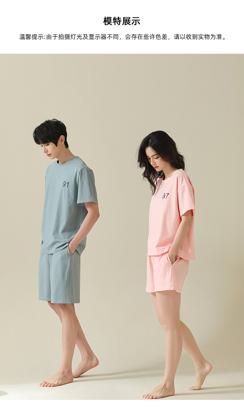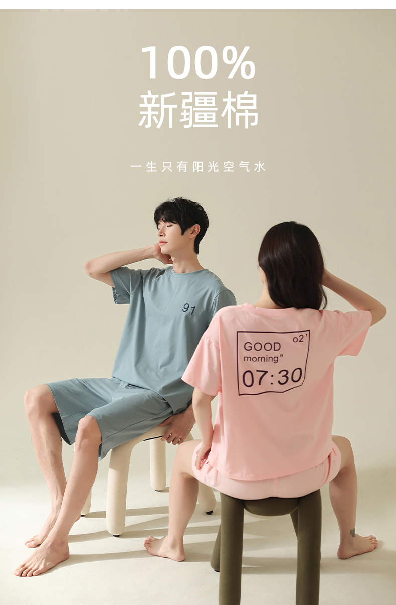 【舒肤棉】自然醒情侣睡衣女夏季新款薄款新疆棉短袖男士家居服可外穿套装JLM