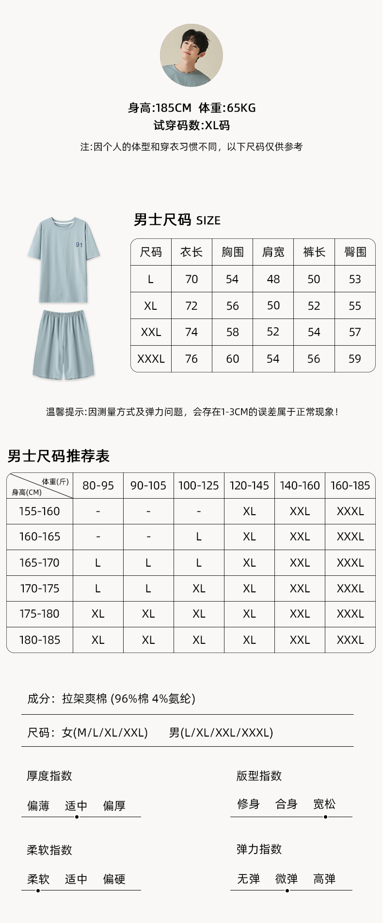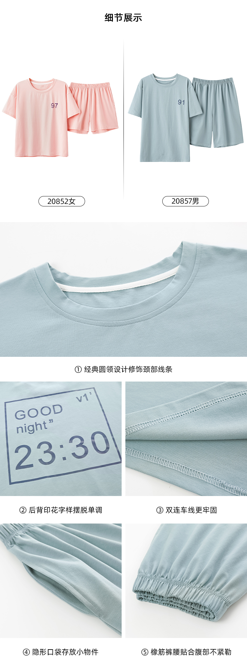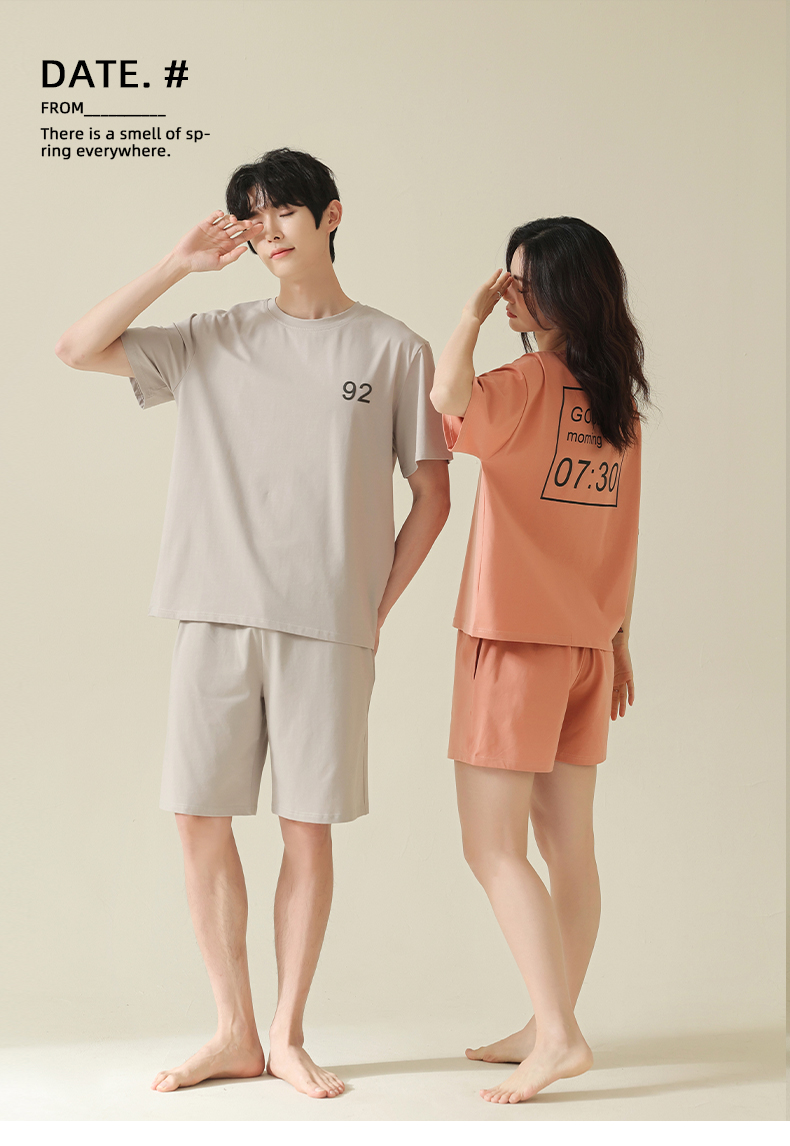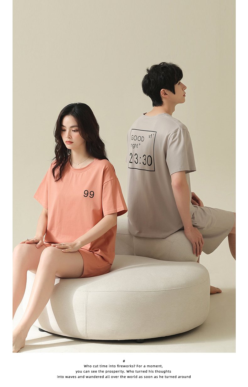 【舒肤棉】自然醒情侣睡衣女夏季新款薄款新疆棉短袖男士家居服可外穿套装JLM