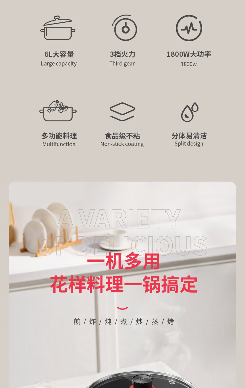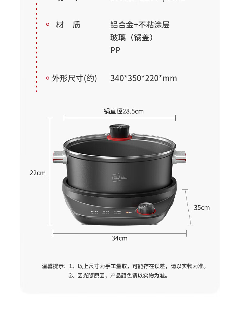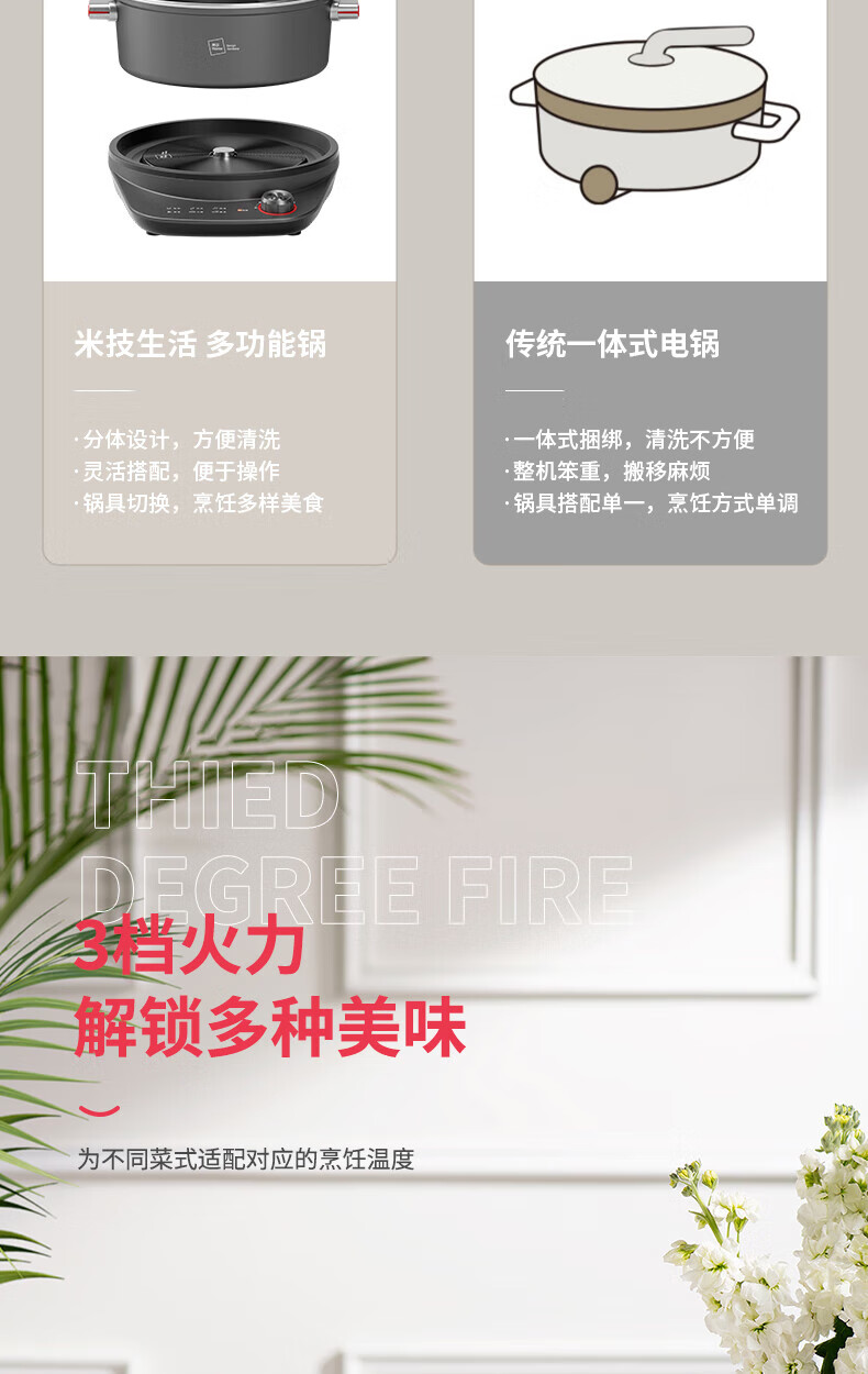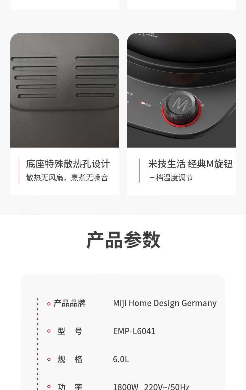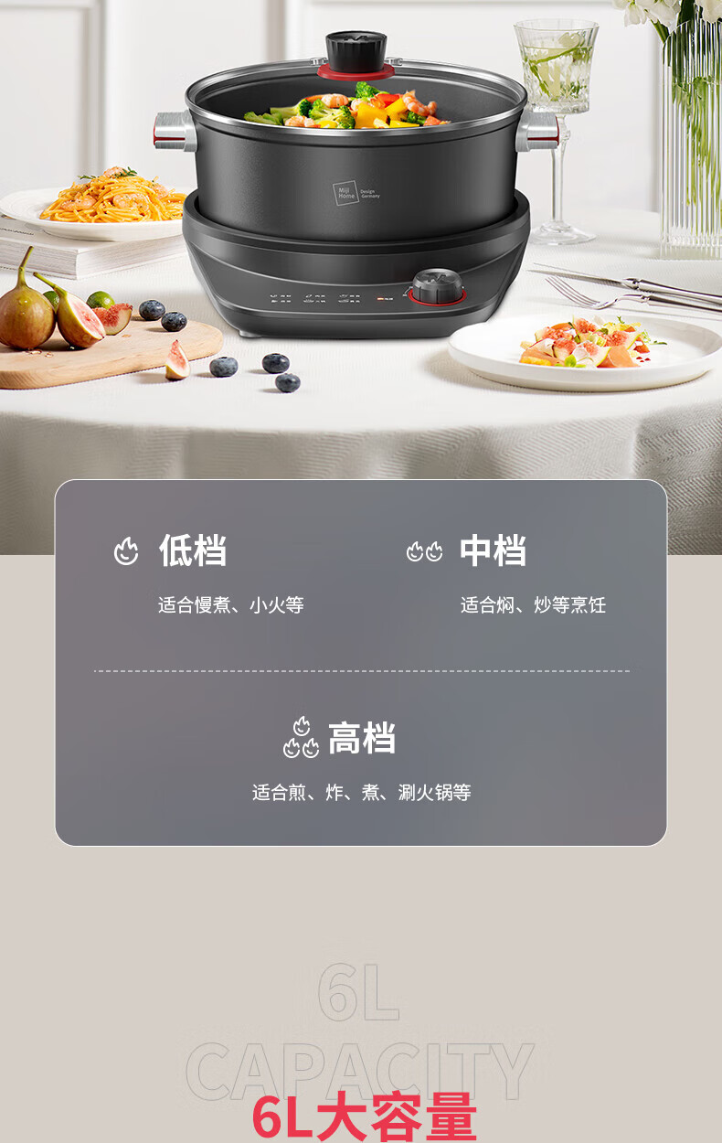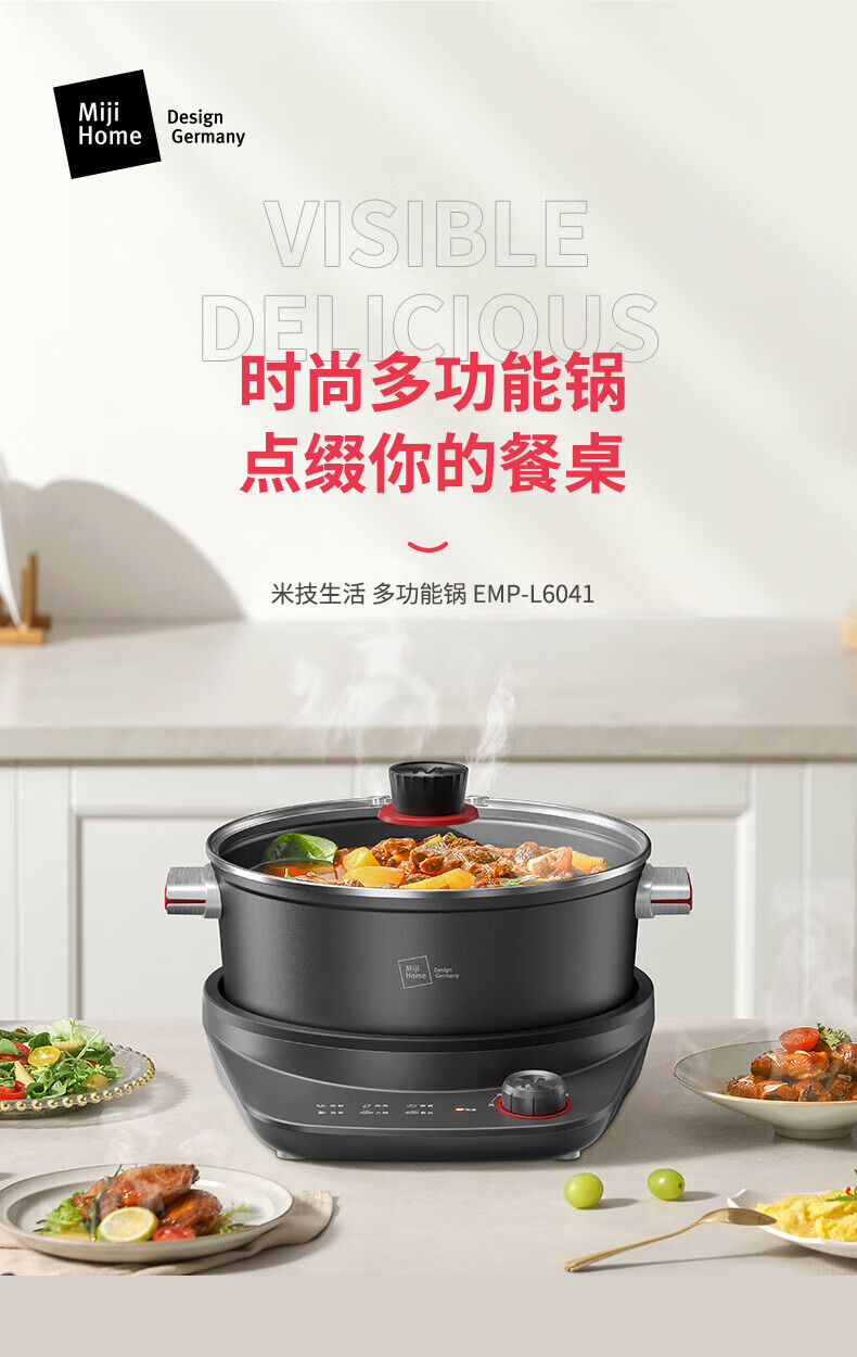 【小家电】米技(MIJI)米技(Miji Home)米技生活多功能锅家用电火锅 EMP-L6041 灰色 HF