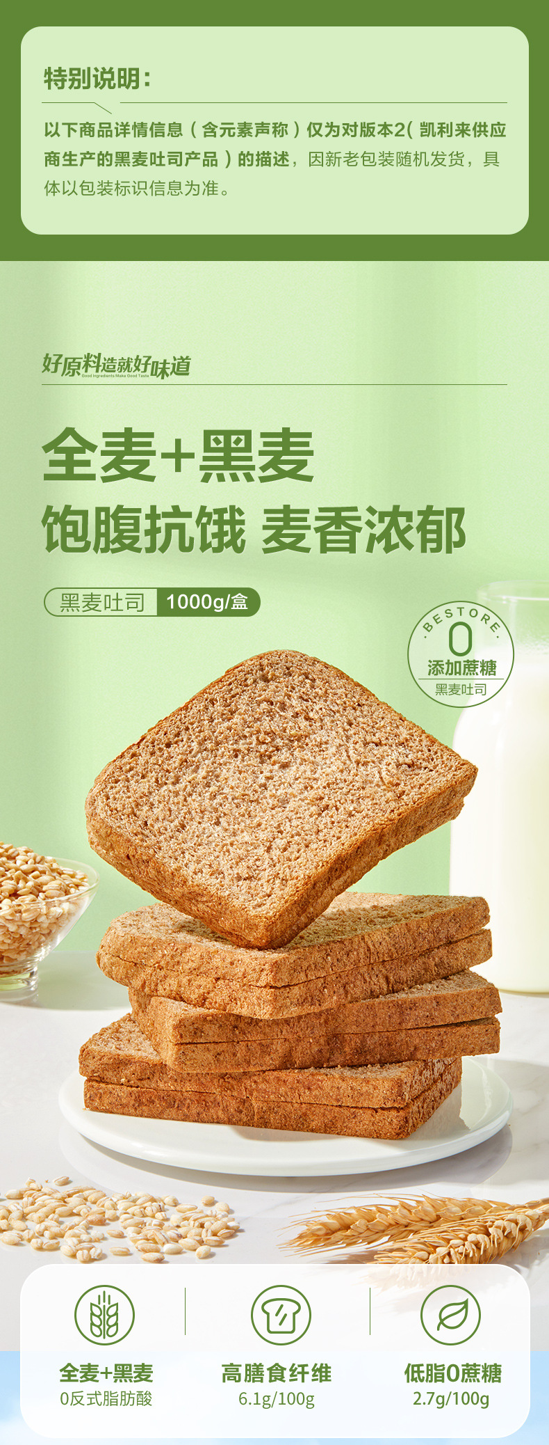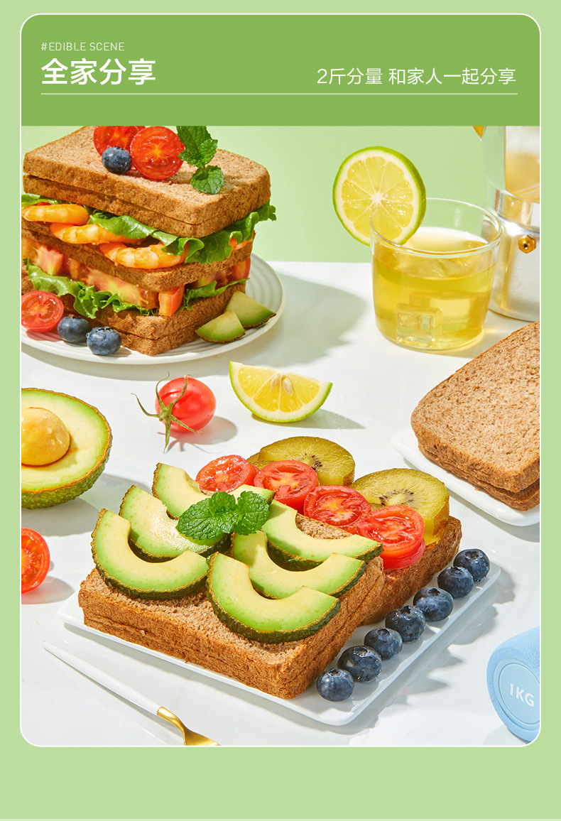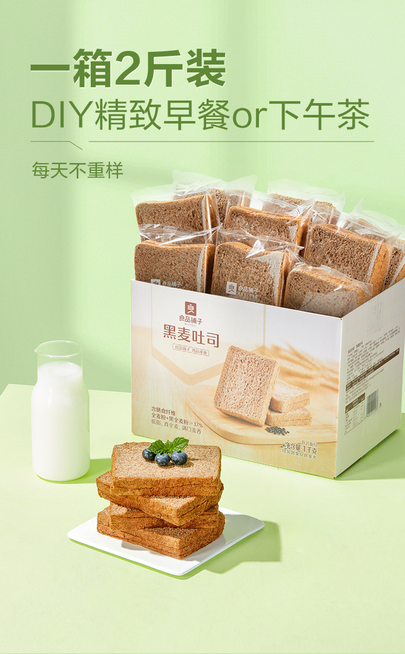 良品铺子黑麦低脂全麦面包1kg饱腹主食早餐代餐糕点心吐司休闲零 商品图2