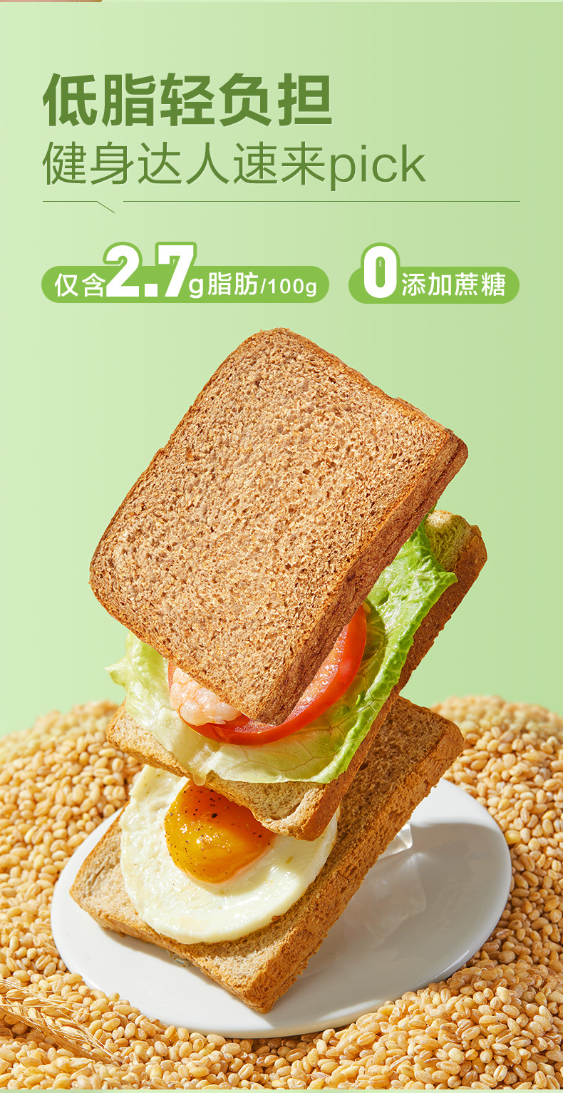 良品铺子黑麦低脂全麦面包1kg饱腹主食早餐代餐糕点心吐司休闲零 商品图6