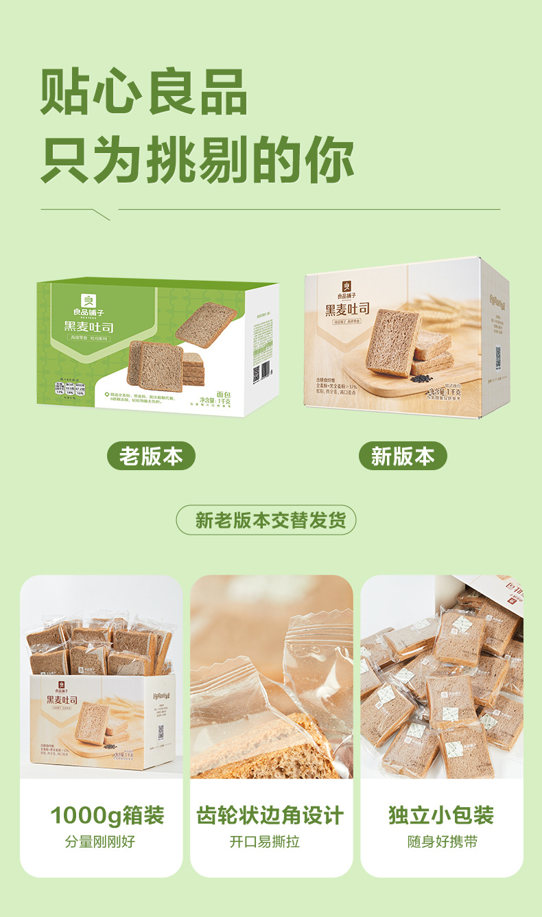 良品铺子黑麦低脂全麦面包1kg饱腹主食早餐代餐糕点心吐司休闲零 商品图3
