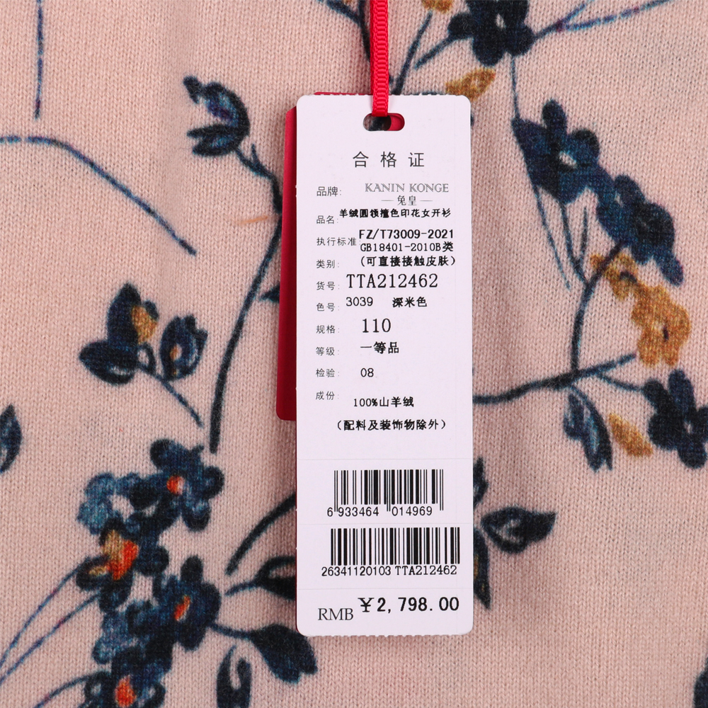 兔皇羊绒圆领撞色印花女开衫TTA212462