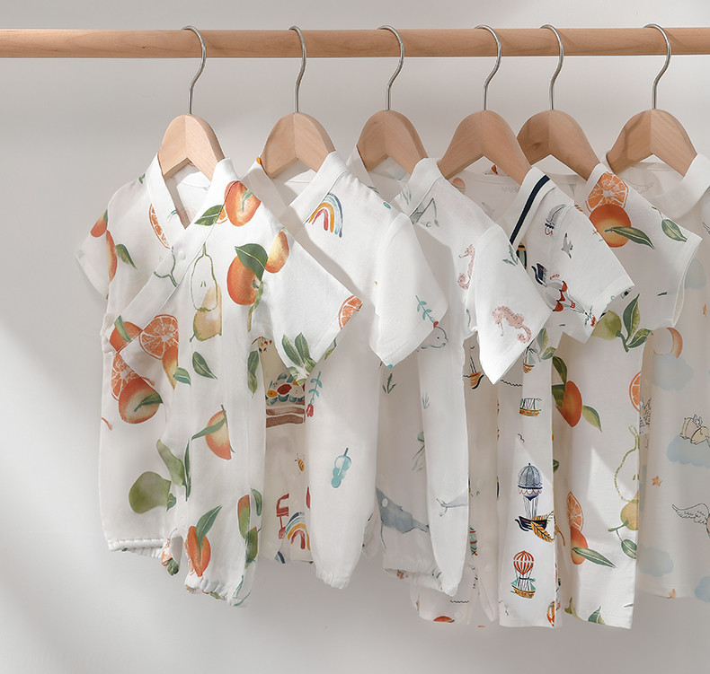 【宝宝服饰】嫚熙宝宝衣服春夏季薄款短袖和尚服纱布新生婴儿儿连体衣哈衣爬服